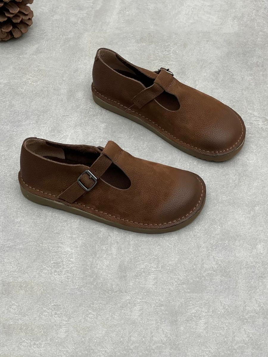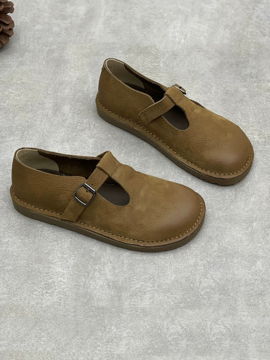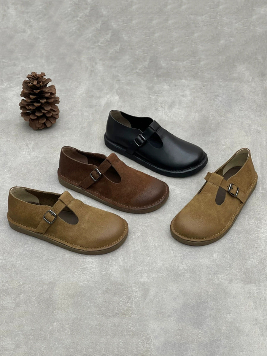 Sapatos femininos vintage de primavera em couro genuíno, sapatos baixos.