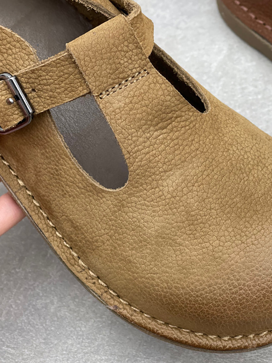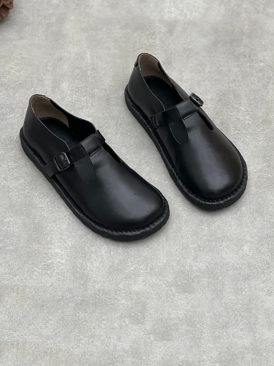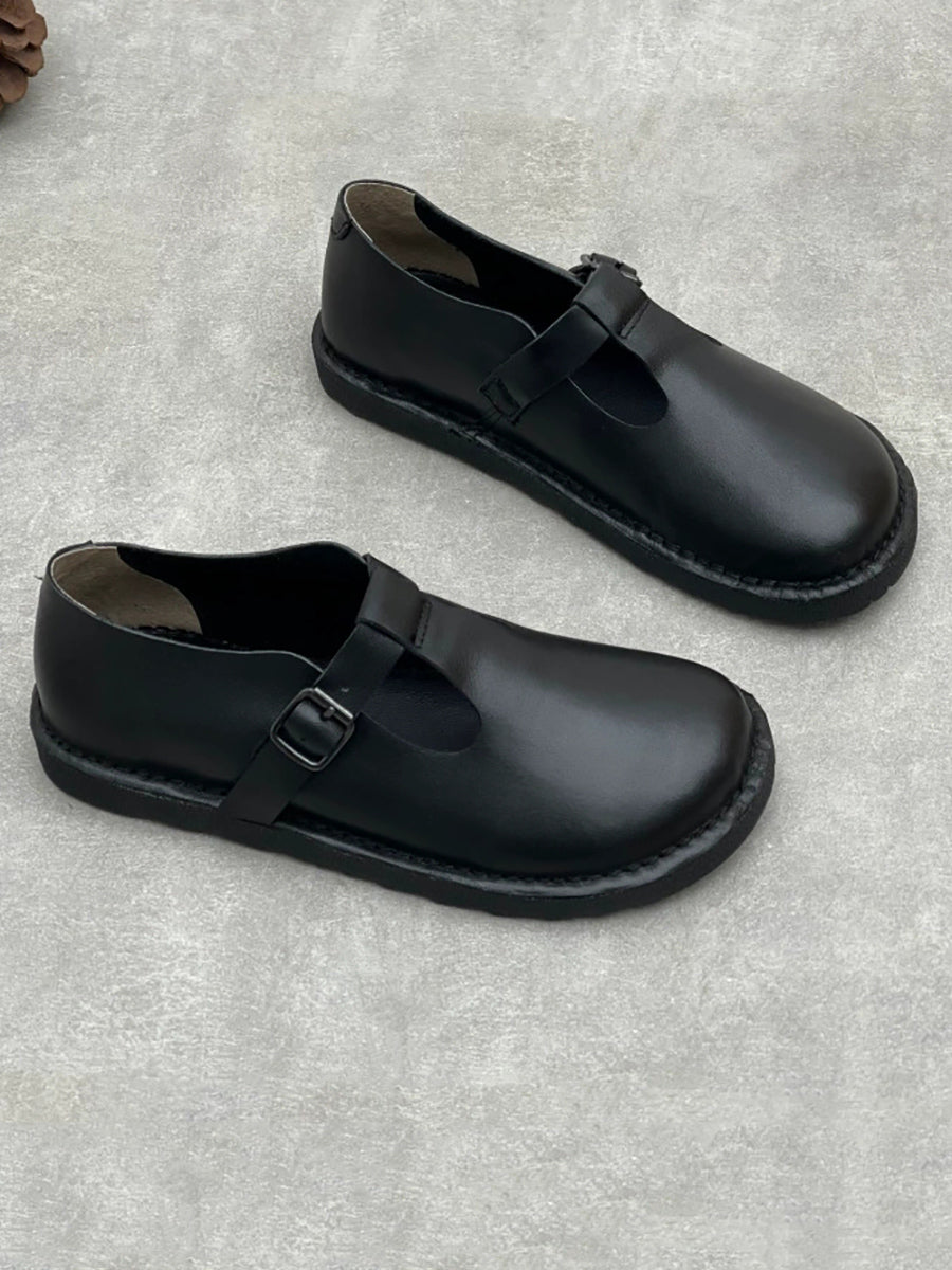 Sapatos femininos vintage de primavera em couro genuíno, sapatos baixos.