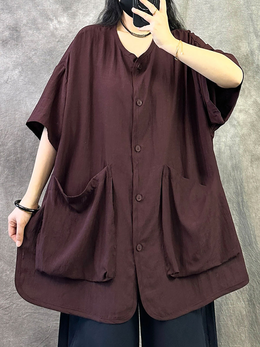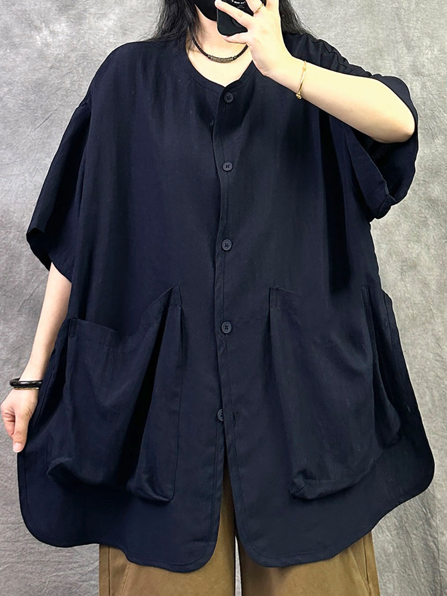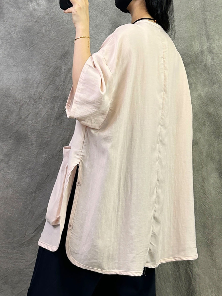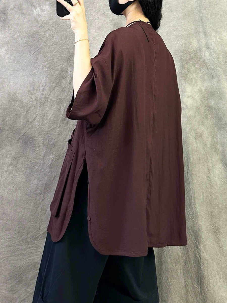 Blusa feminina casual de verão, cor lisa, gola redonda.