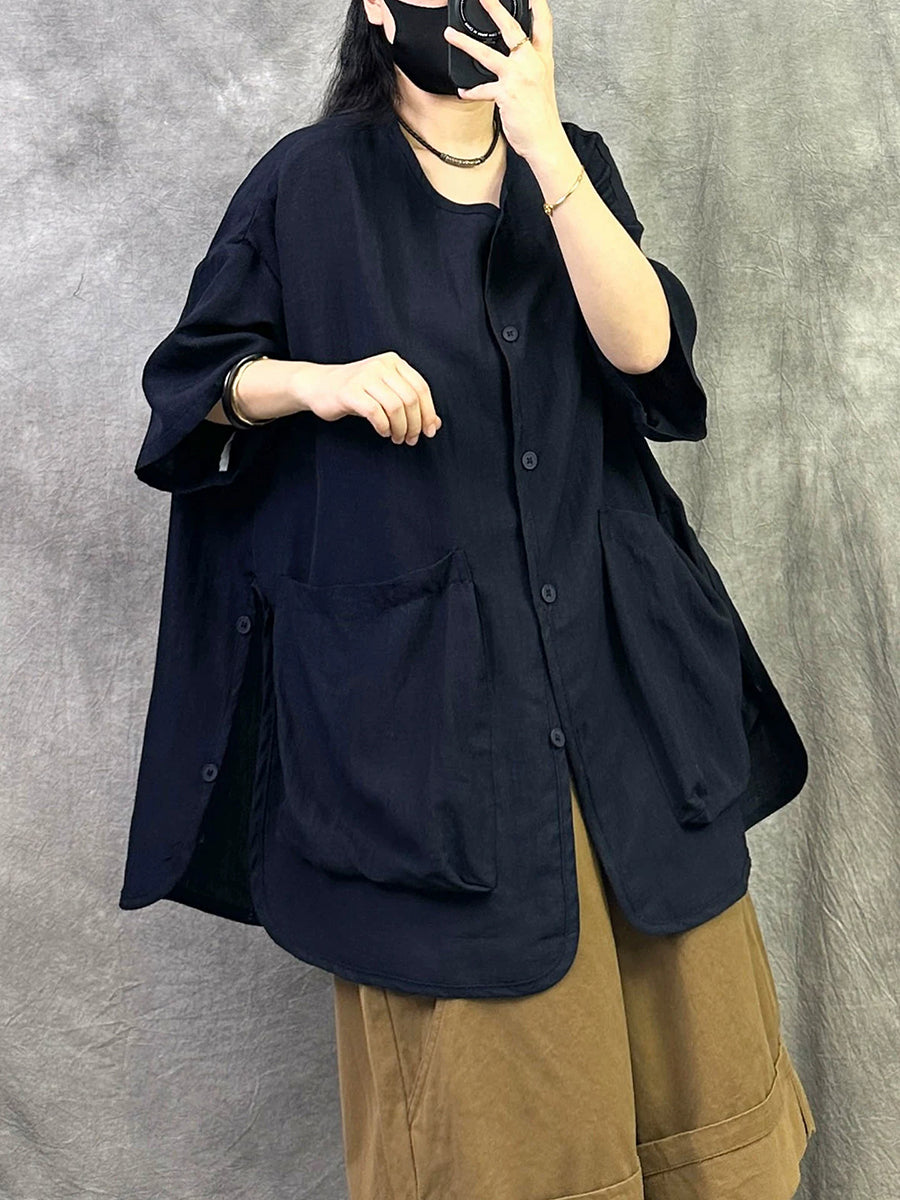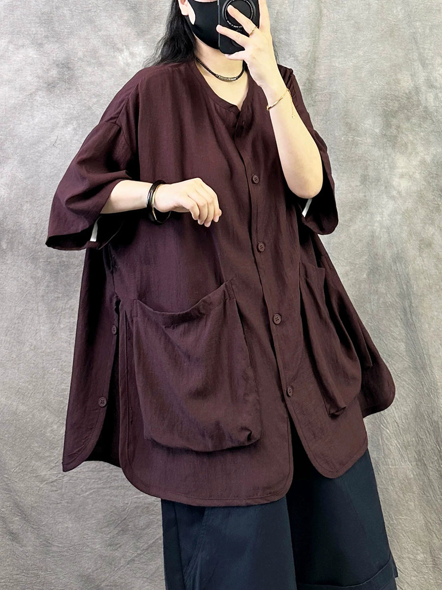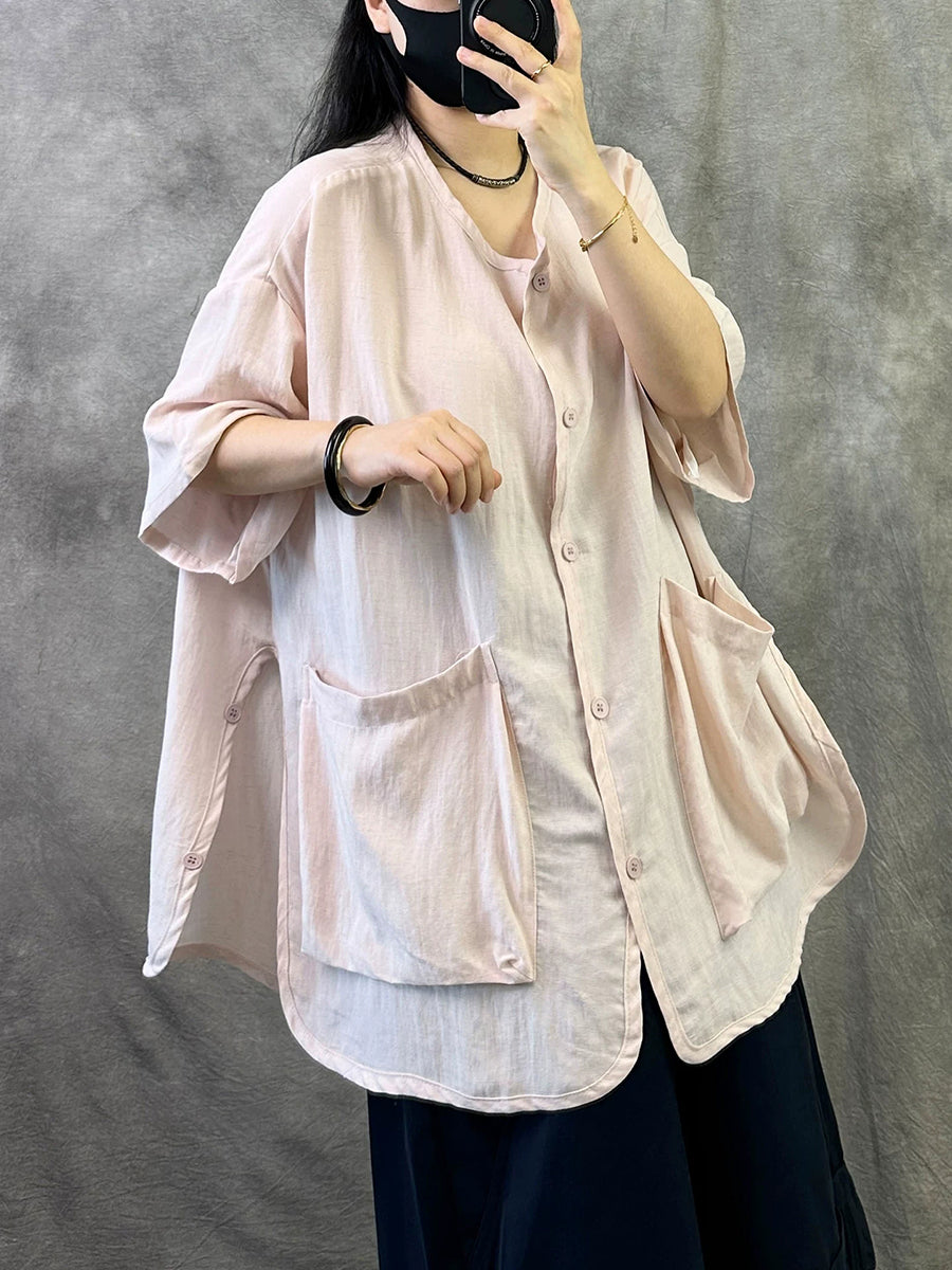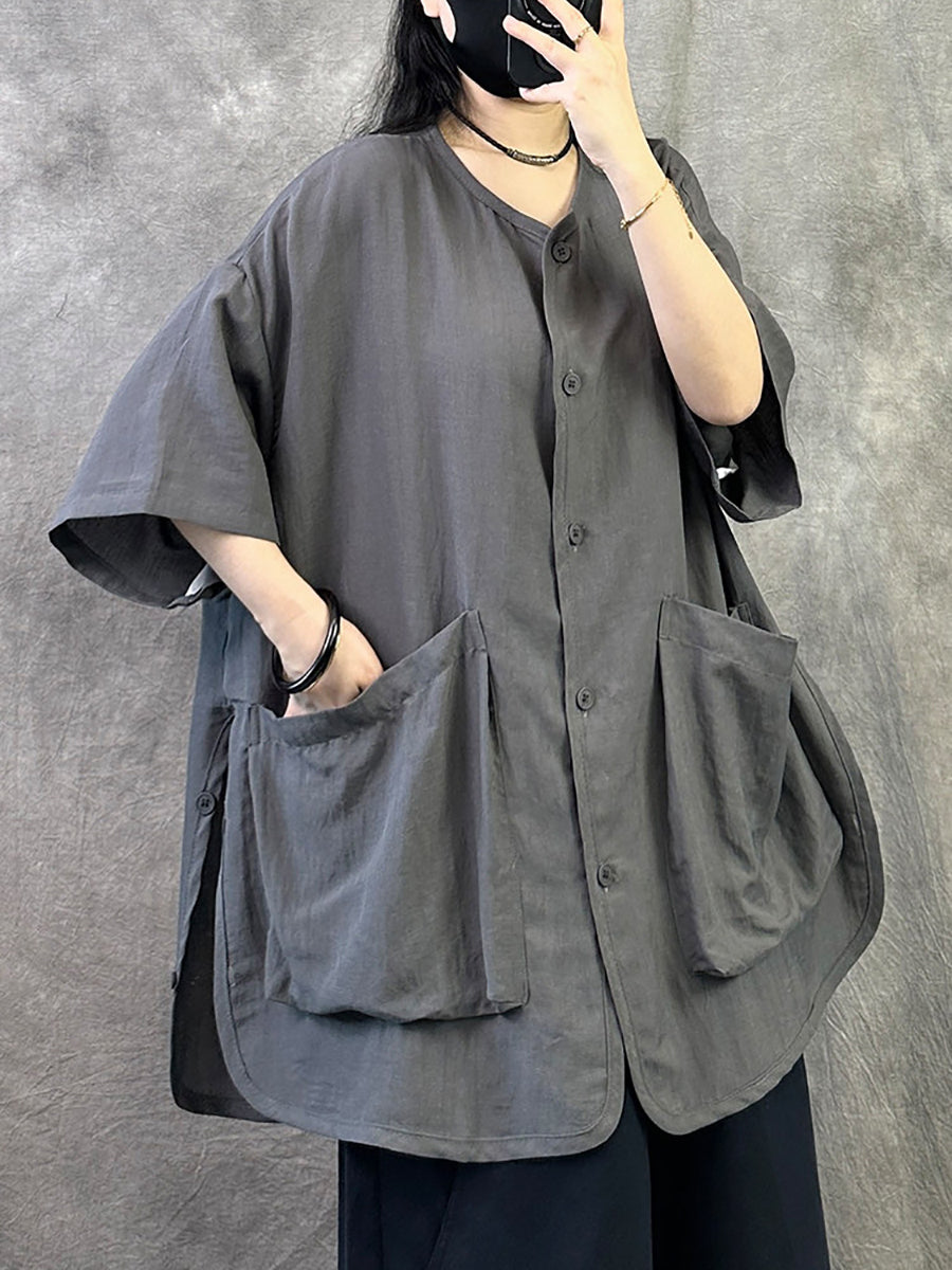 Blusa feminina casual de verão, cor lisa, gola redonda.