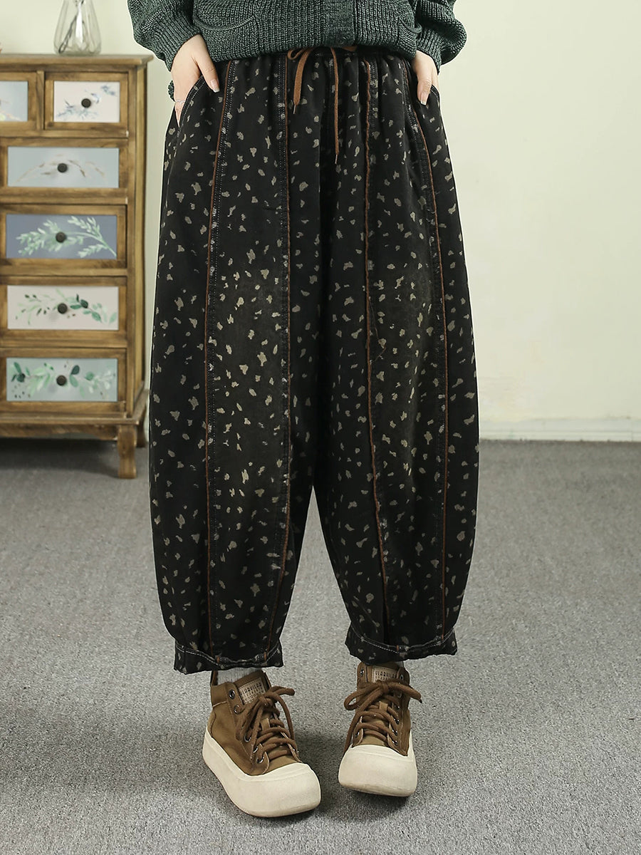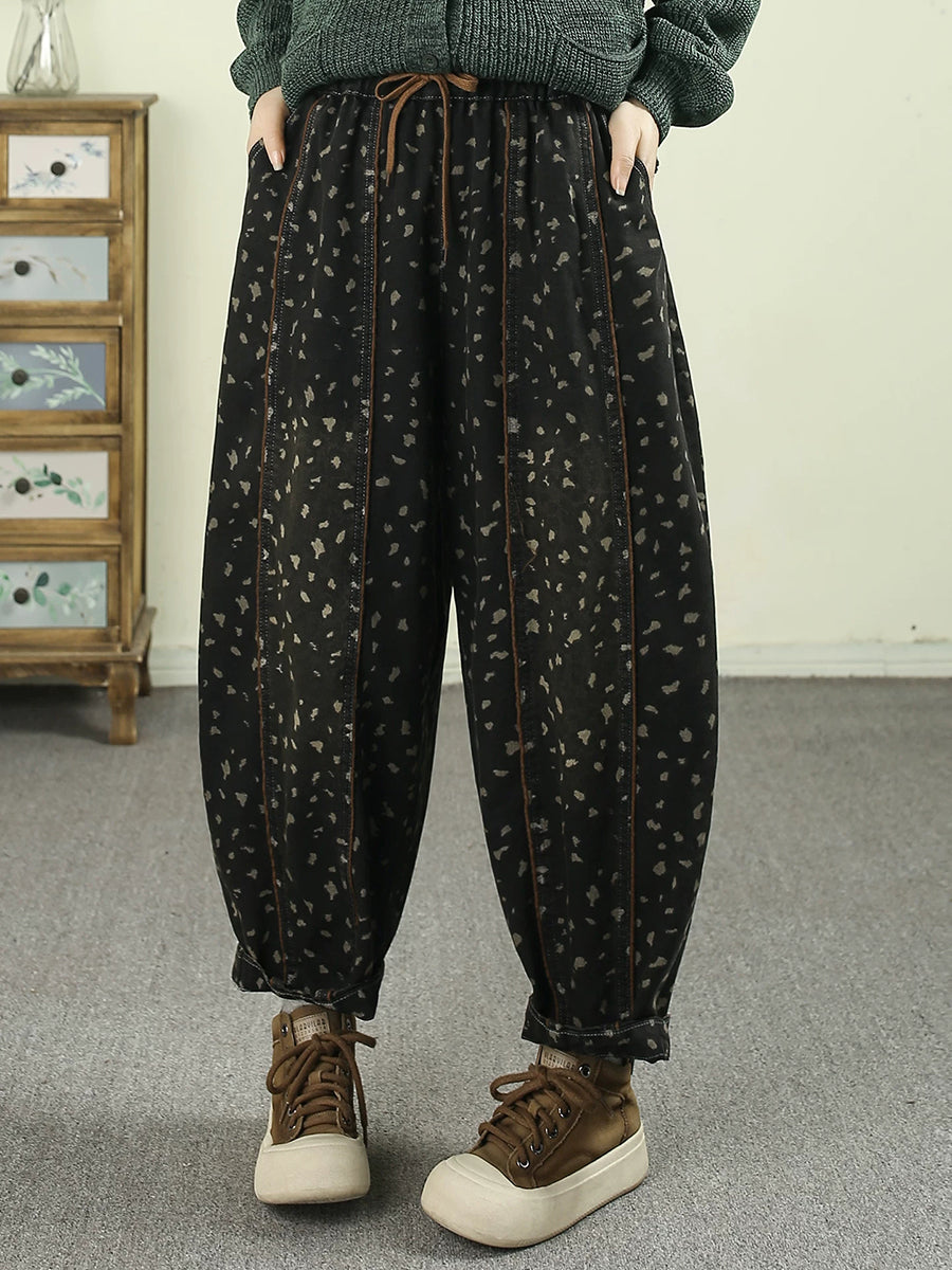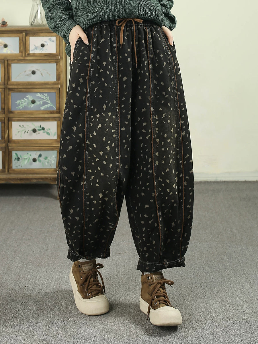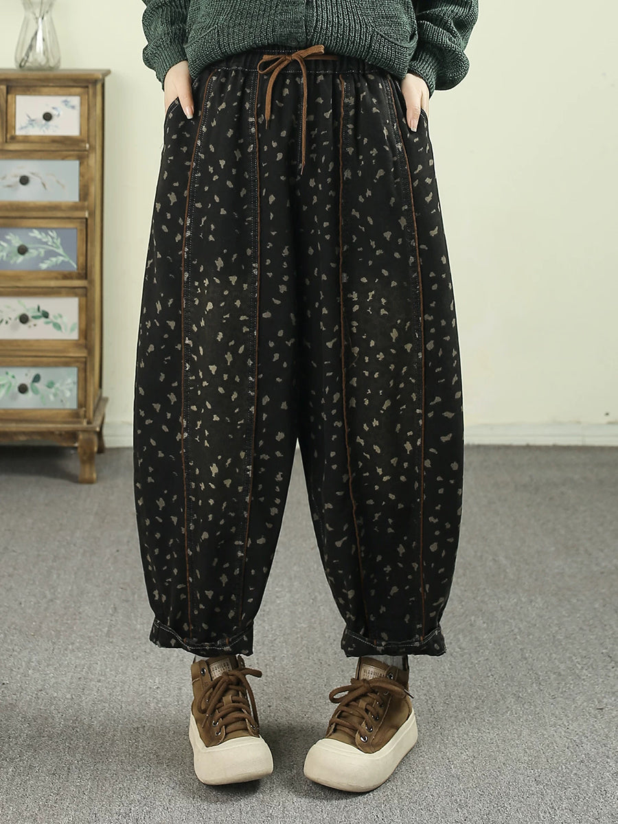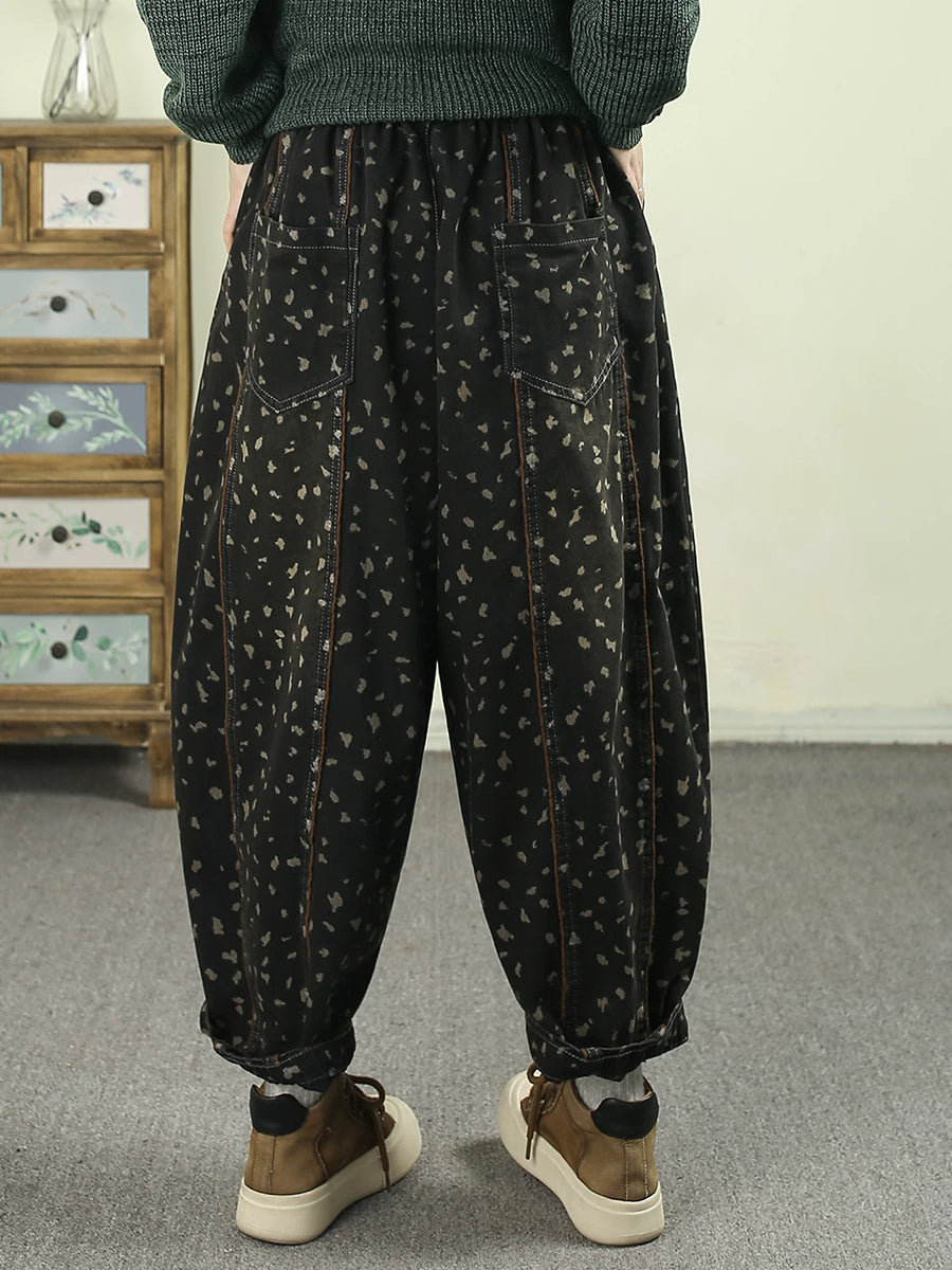 Calça Harem Jeans Vintage Feminina com Estampa de Leopardo para a Primavera