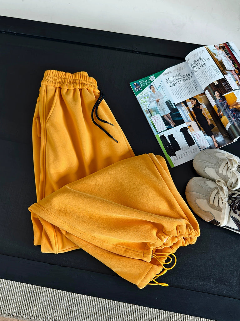 Calças retas femininas casuais de outono, cor pura, forradas com lã