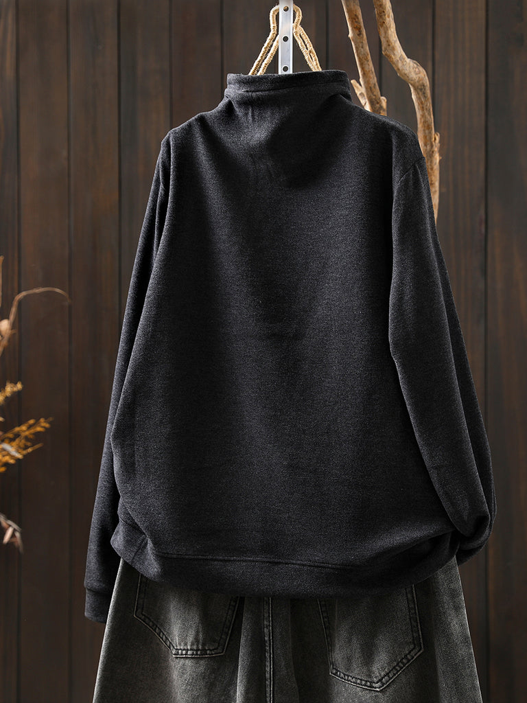 Blusa feminina de algodão puro com gola alta e manga comprida