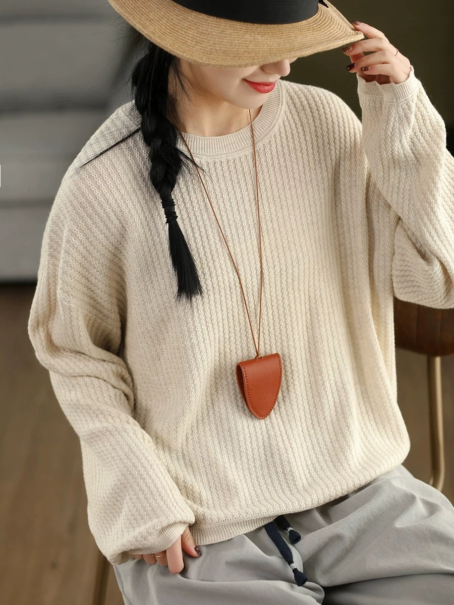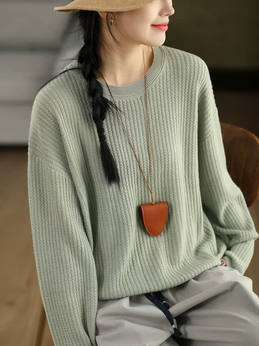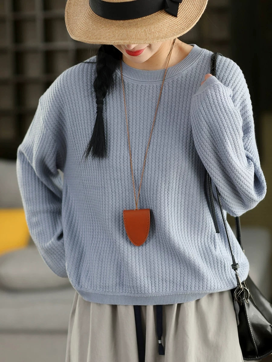 Suéter feminino casual de gola redonda com blocos de cores para a primavera