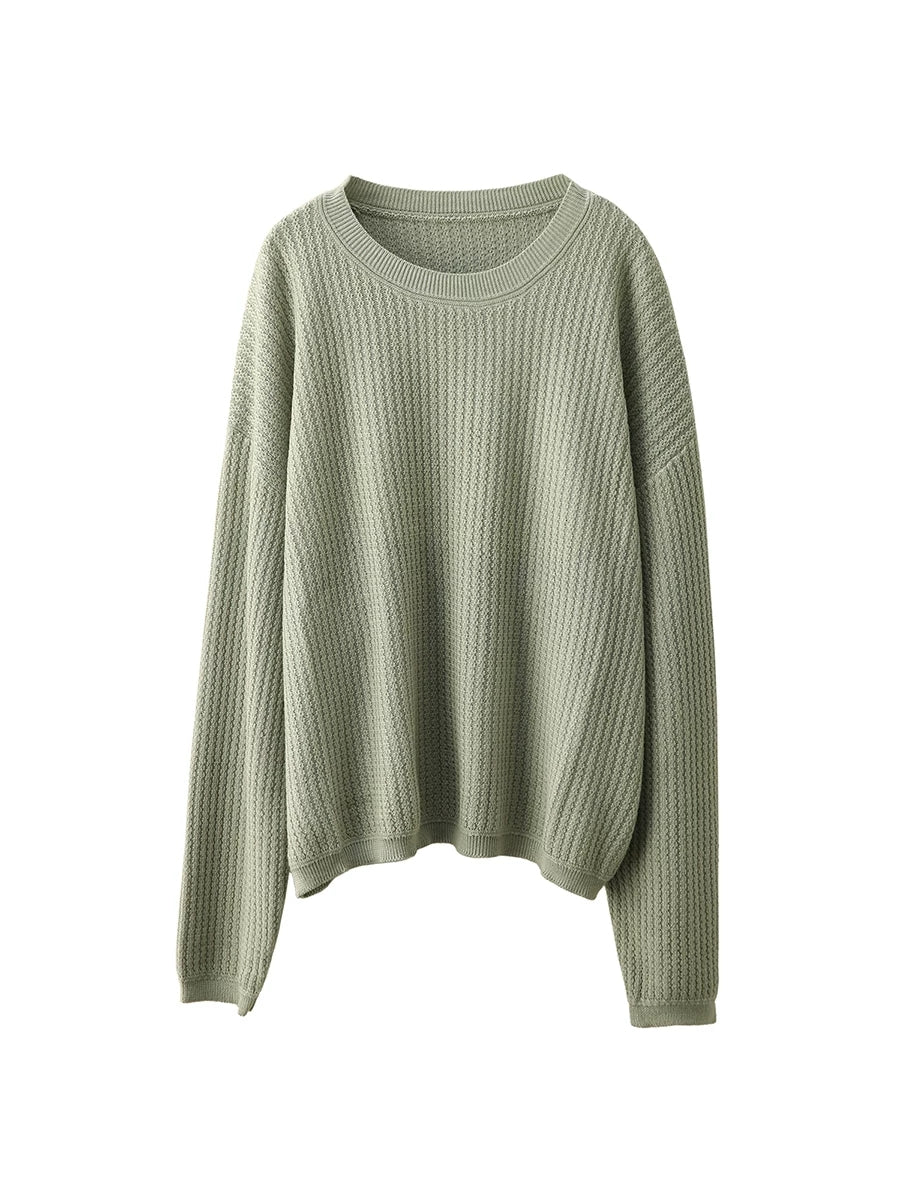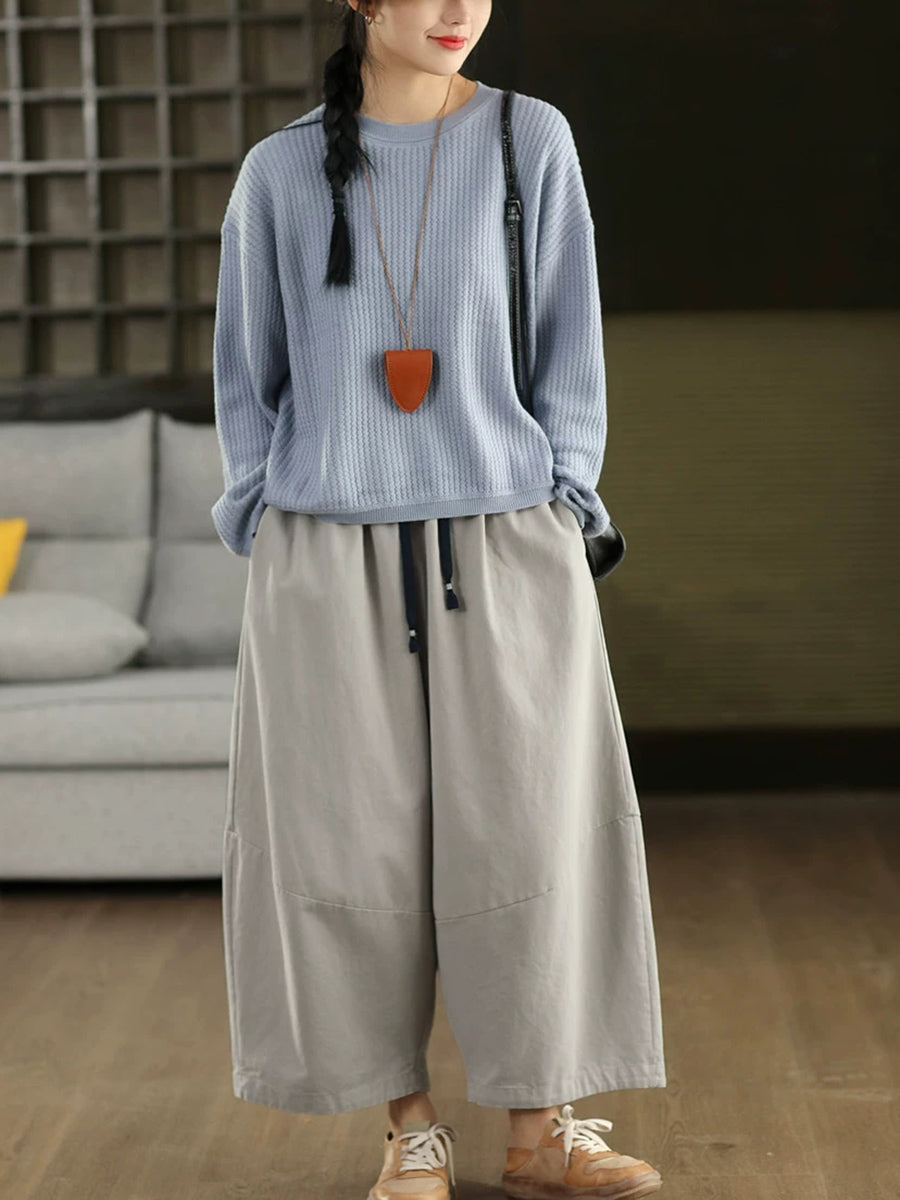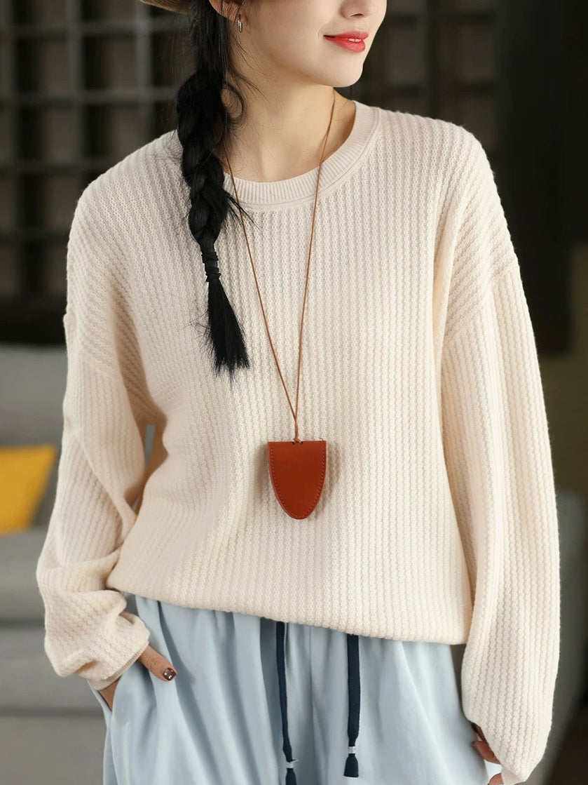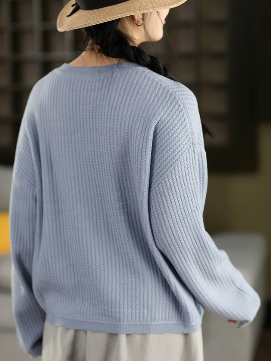 Suéter feminino casual de gola redonda com blocos de cores para a primavera