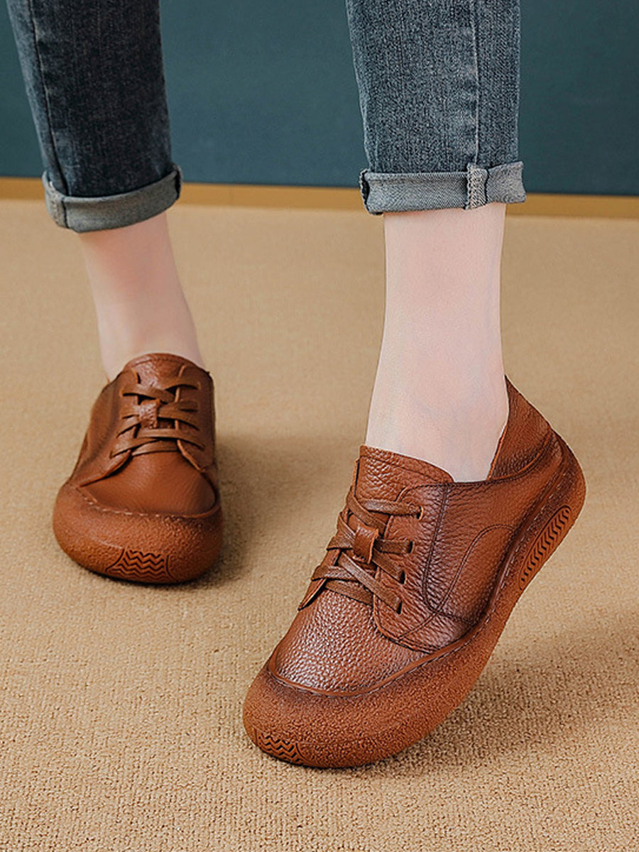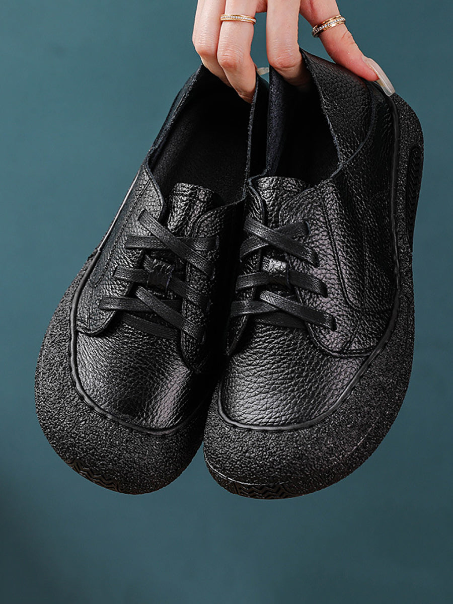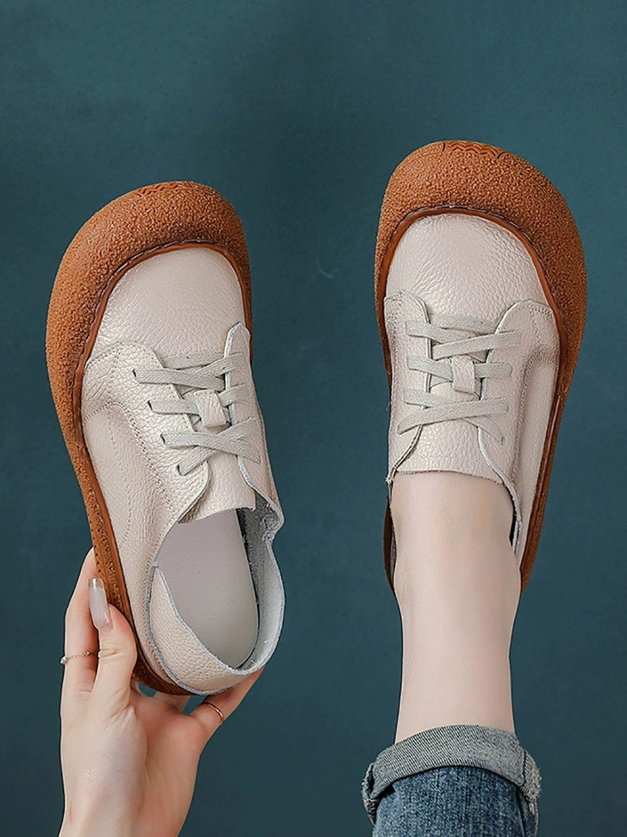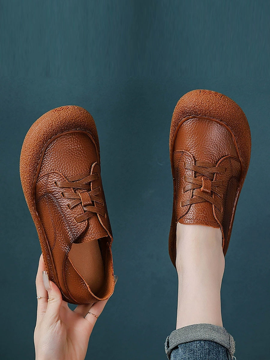 Sapatos femininos de primavera em couro legítimo, sapatos baixos.