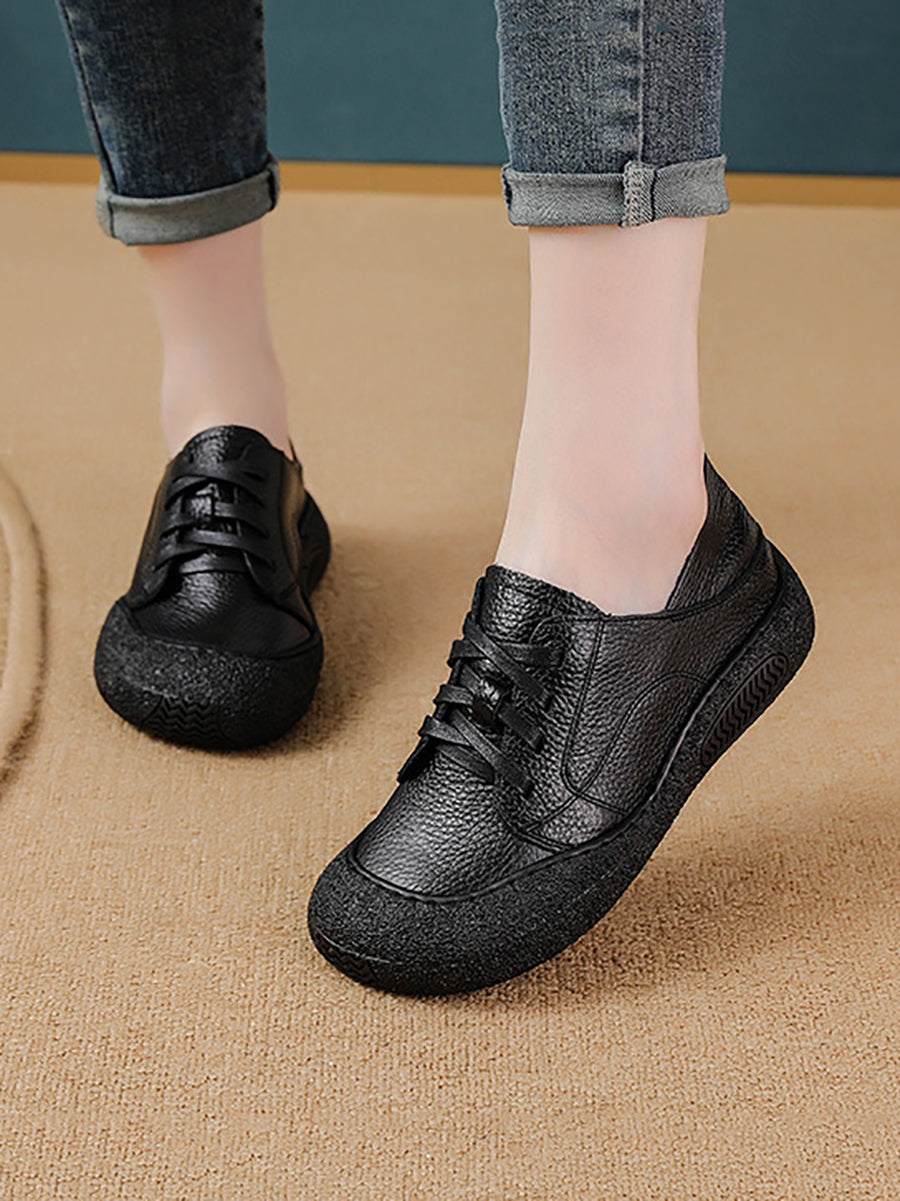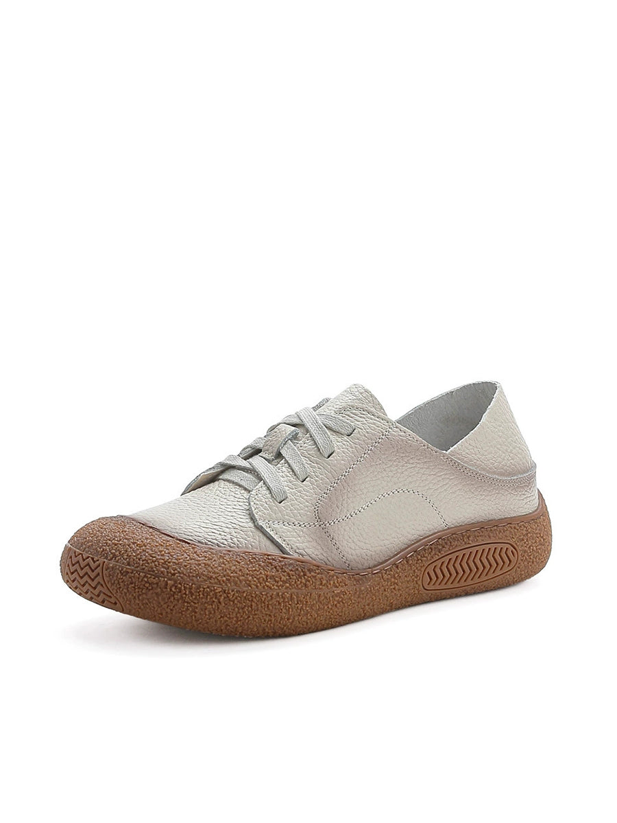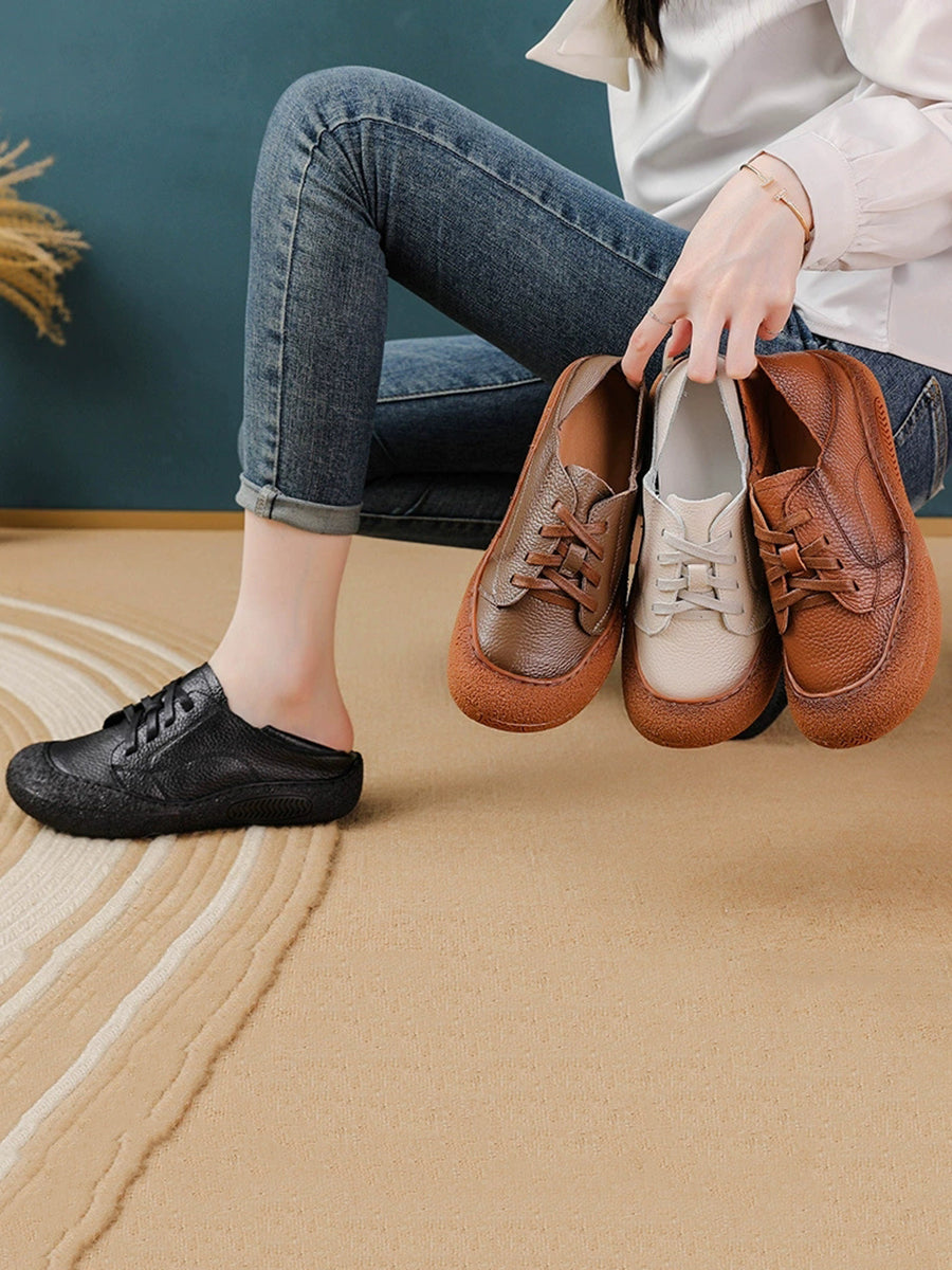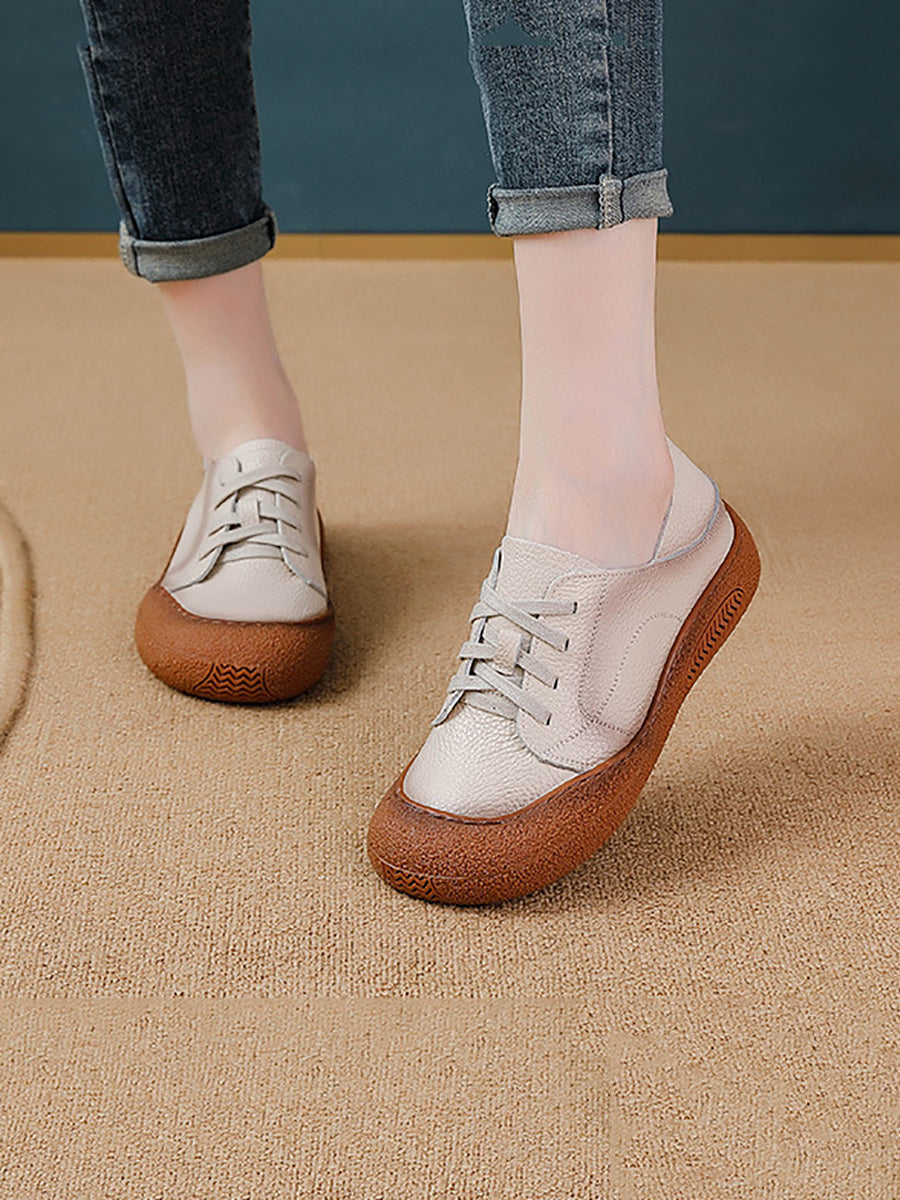 Sapatos femininos de primavera em couro legítimo, sapatos baixos.
