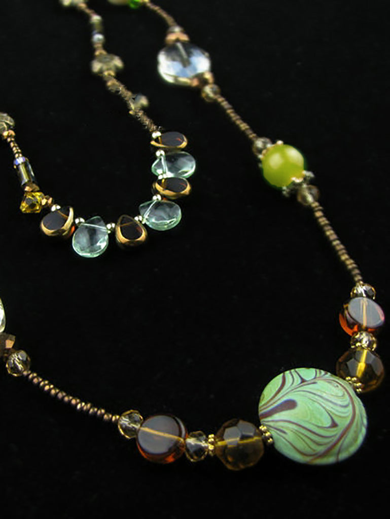 Colar feminino vintage com contas de cristal e acrílico Pandent