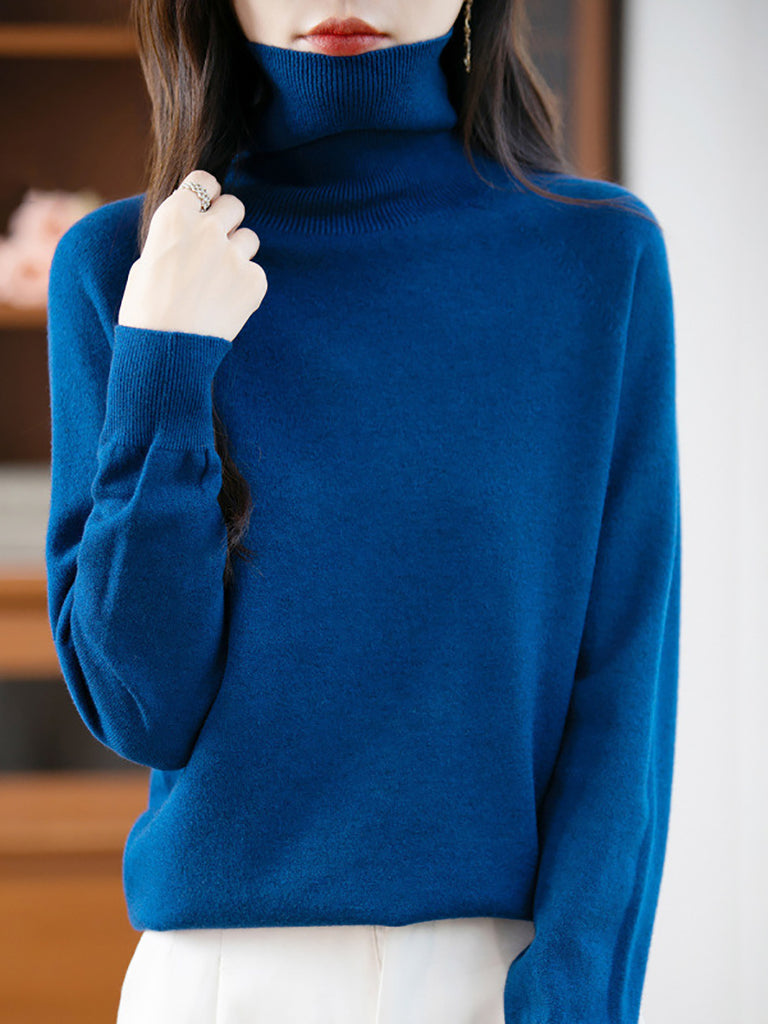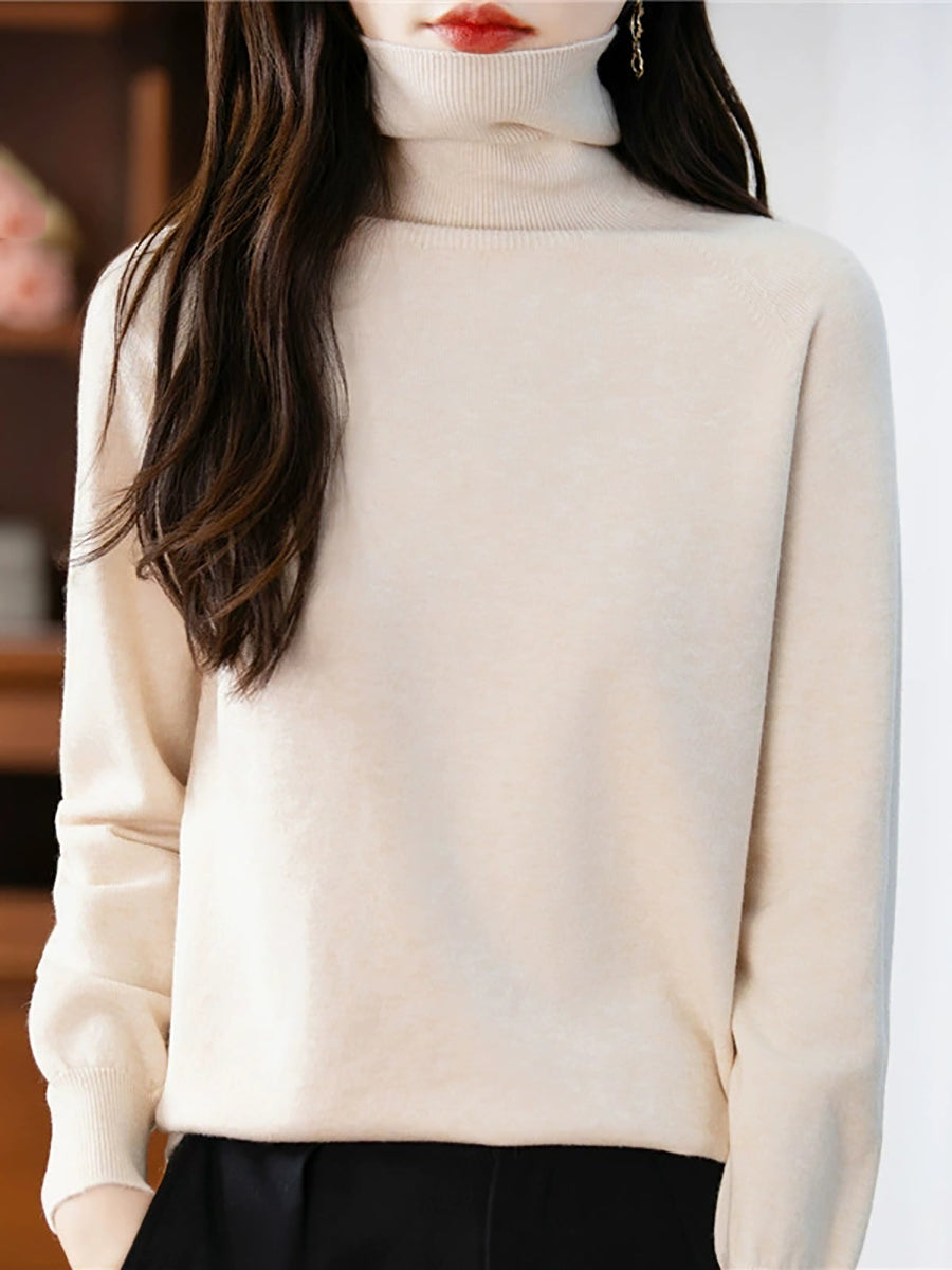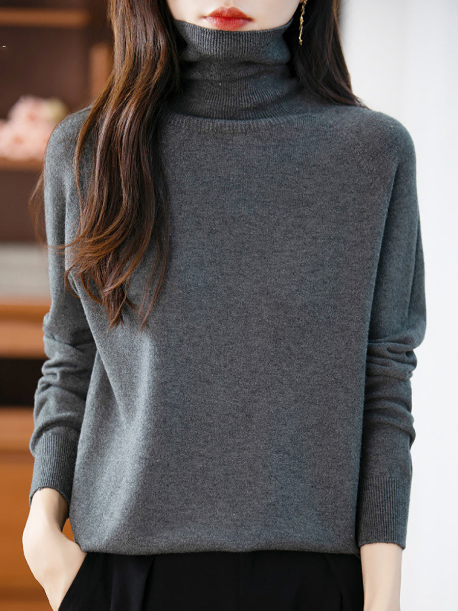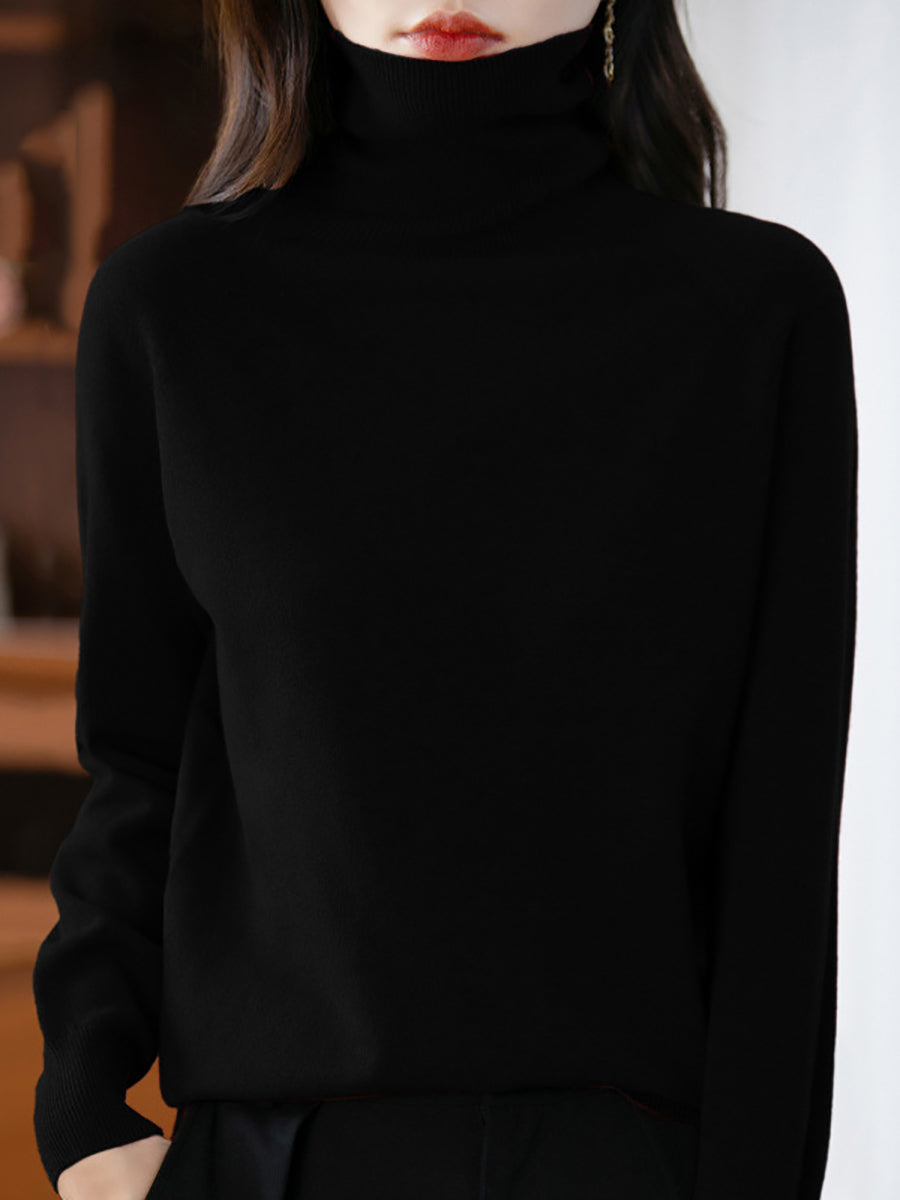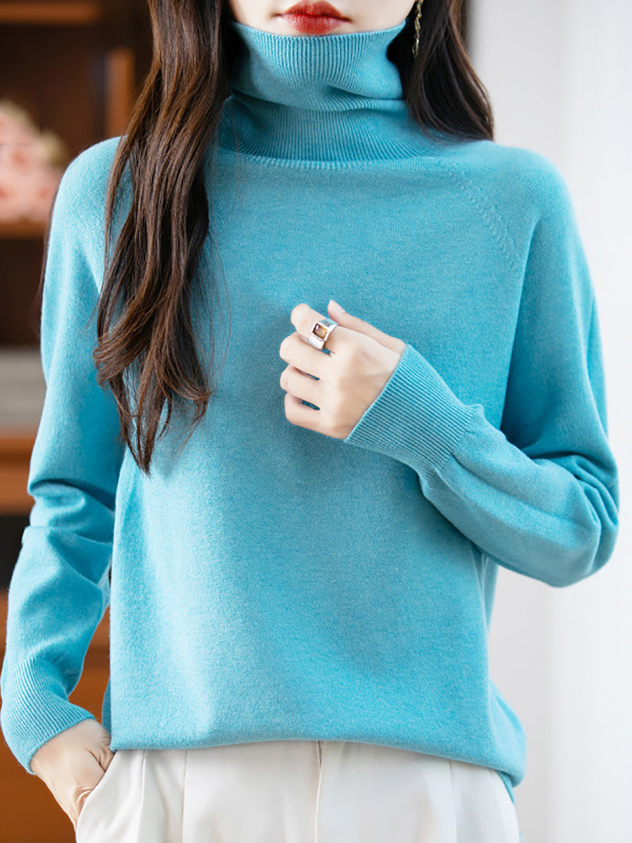 Suéter feminino de gola alta em cores lisas e estilo artístico para o outono.