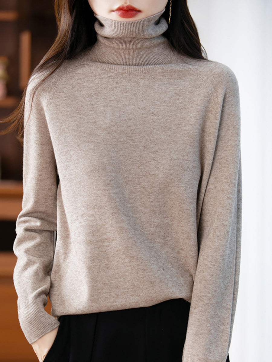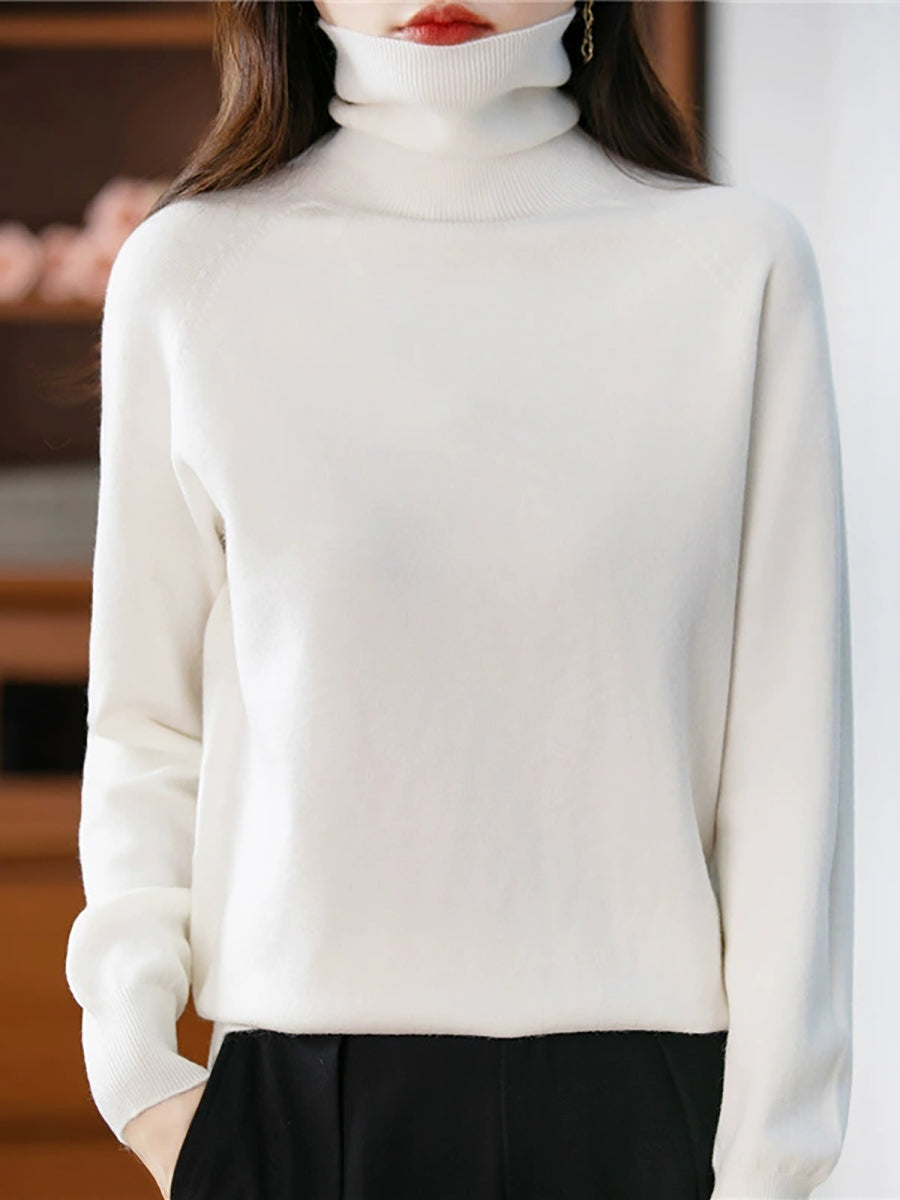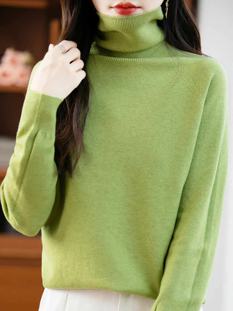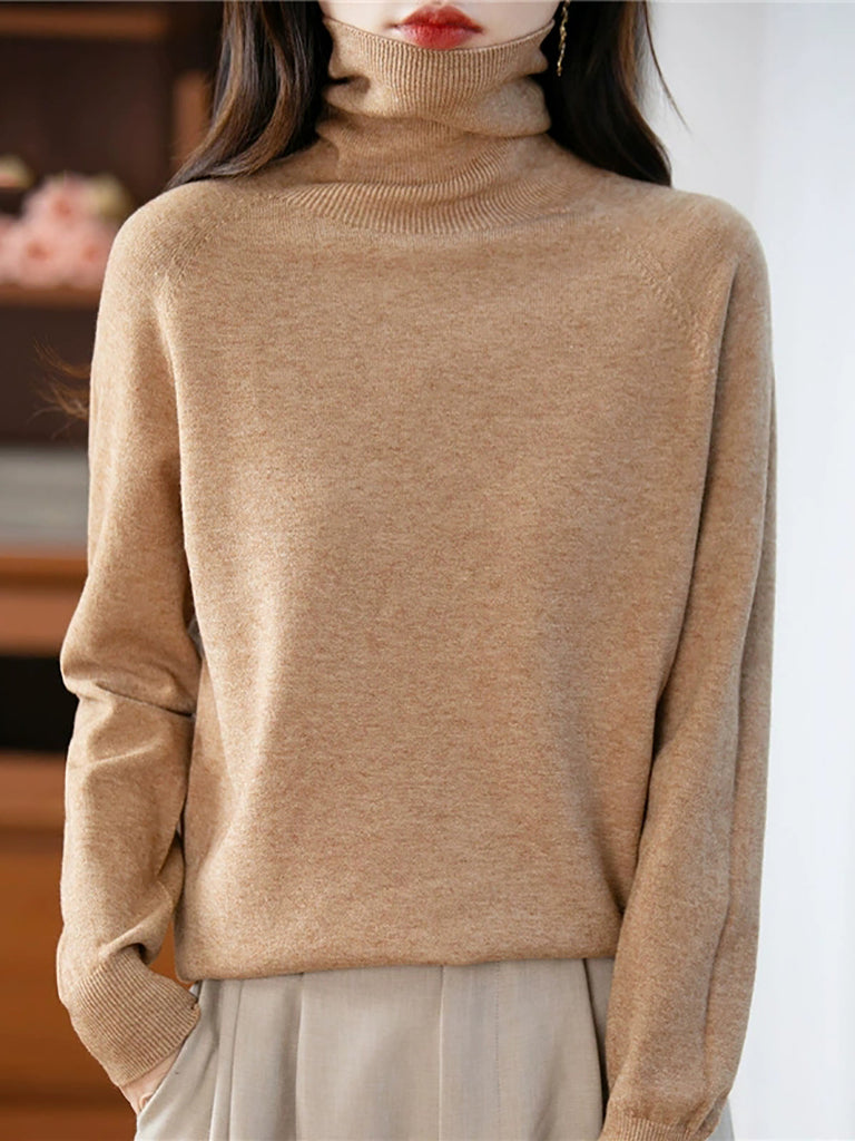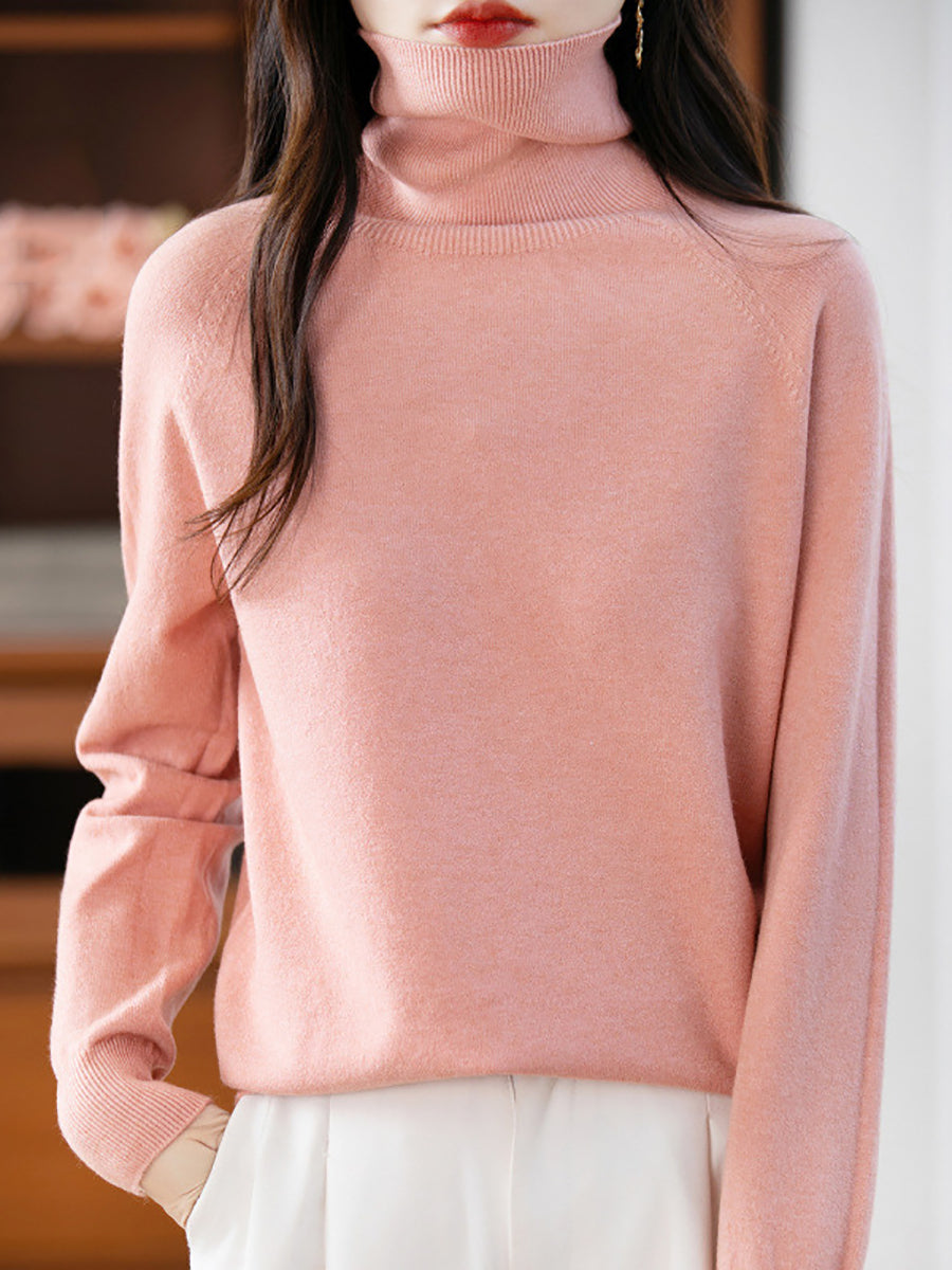 Suéter feminino de gola alta em cores lisas e estilo artístico para o outono.