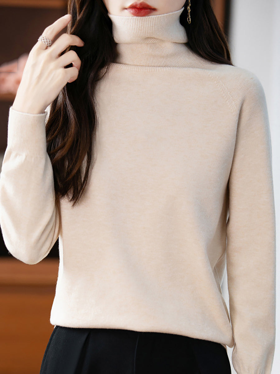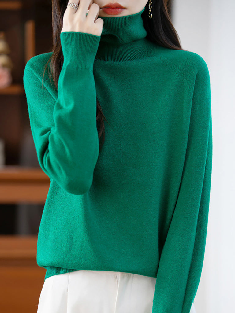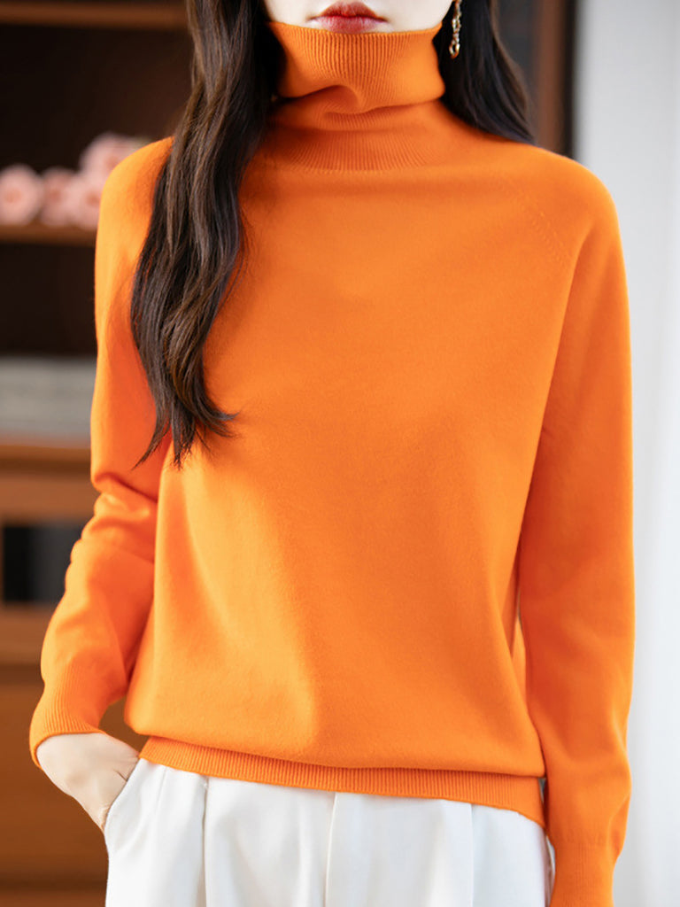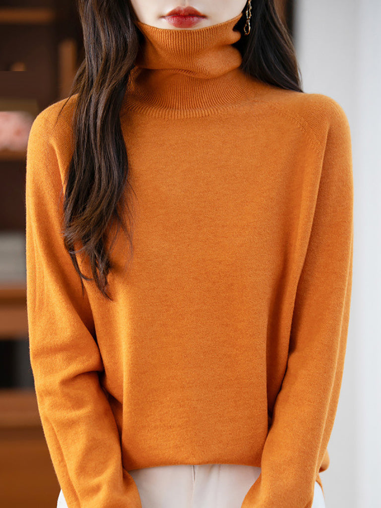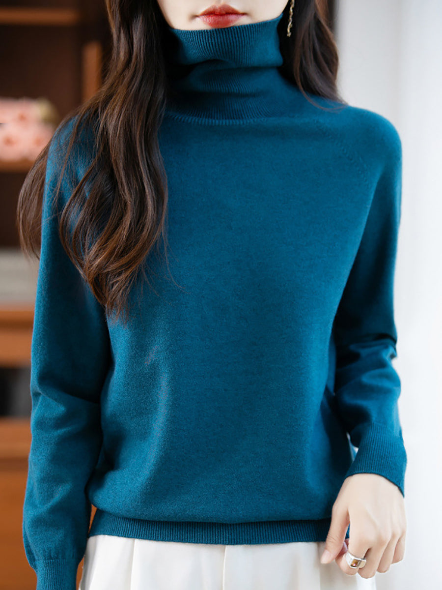 Suéter feminino de gola alta em cores lisas e estilo artístico para o outono.