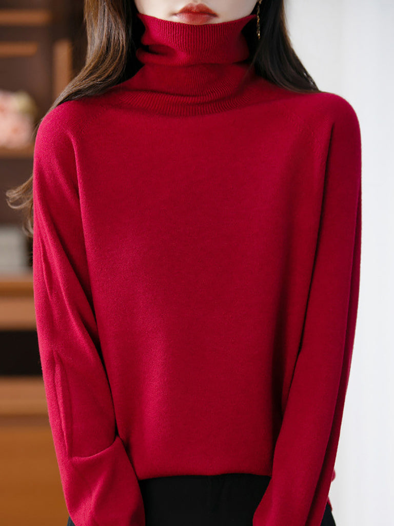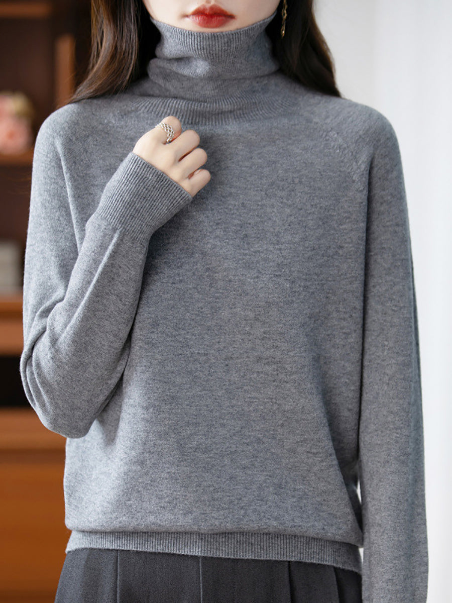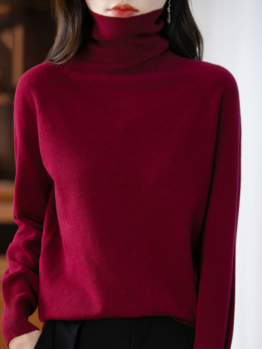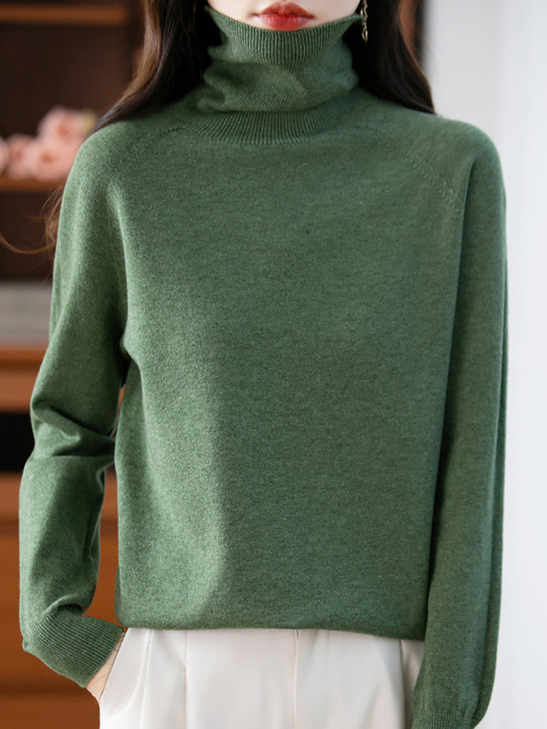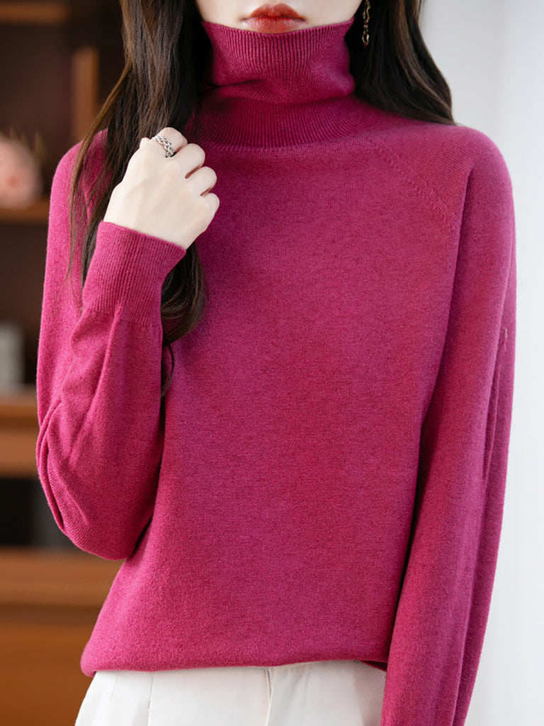 Suéter feminino de gola alta em cores lisas e estilo artístico para o outono.
