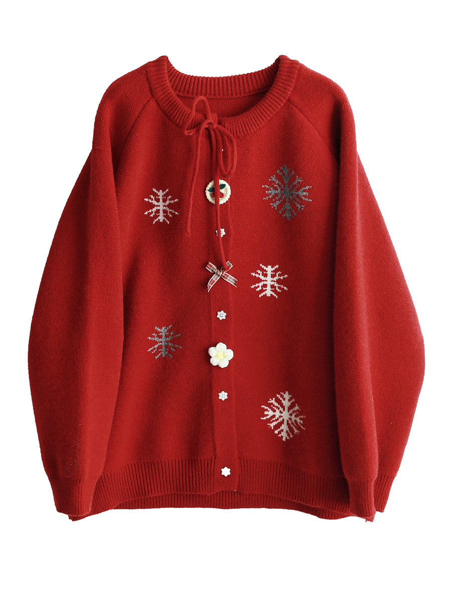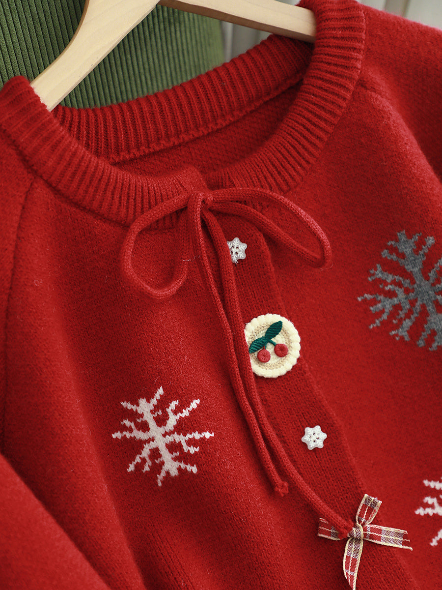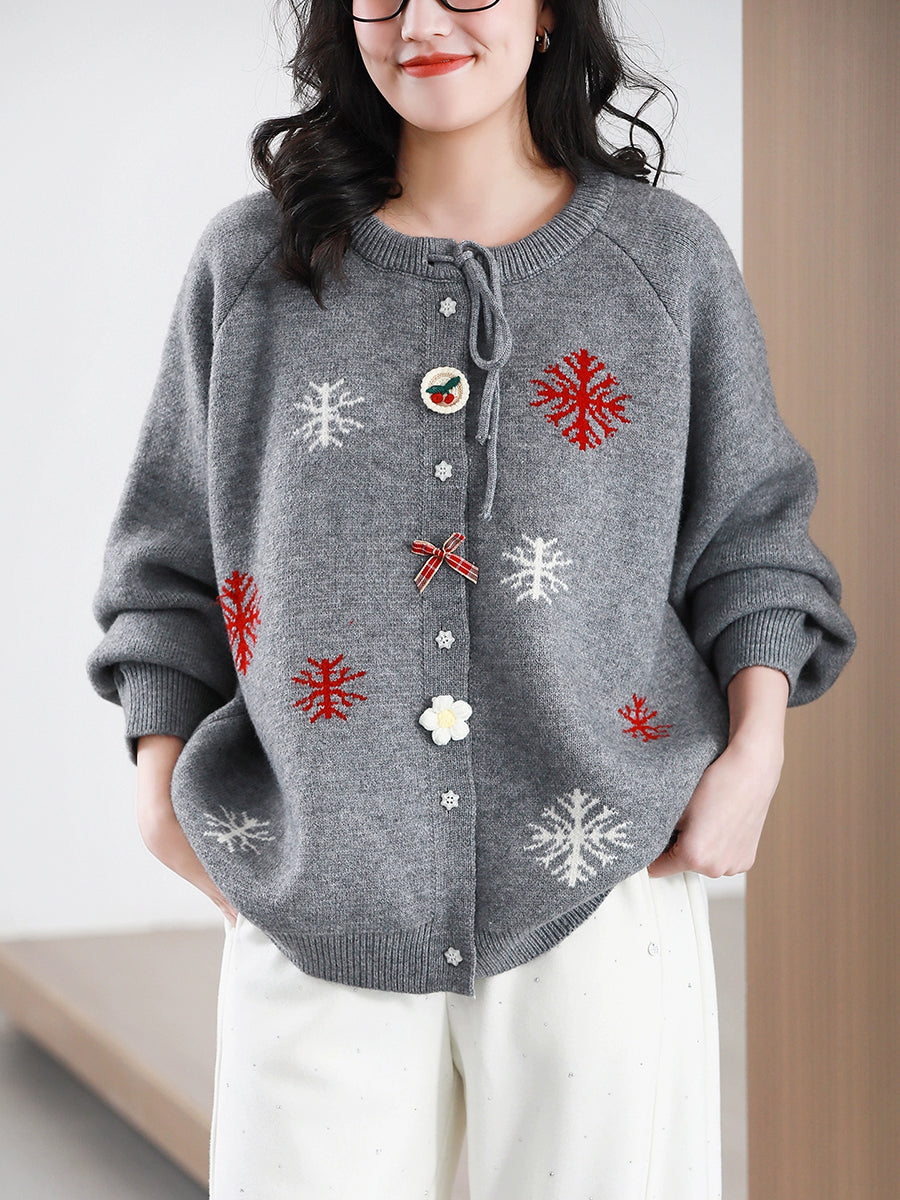 Suéter feminino de gola redonda com estampa de floco de neve para o outono e Natal