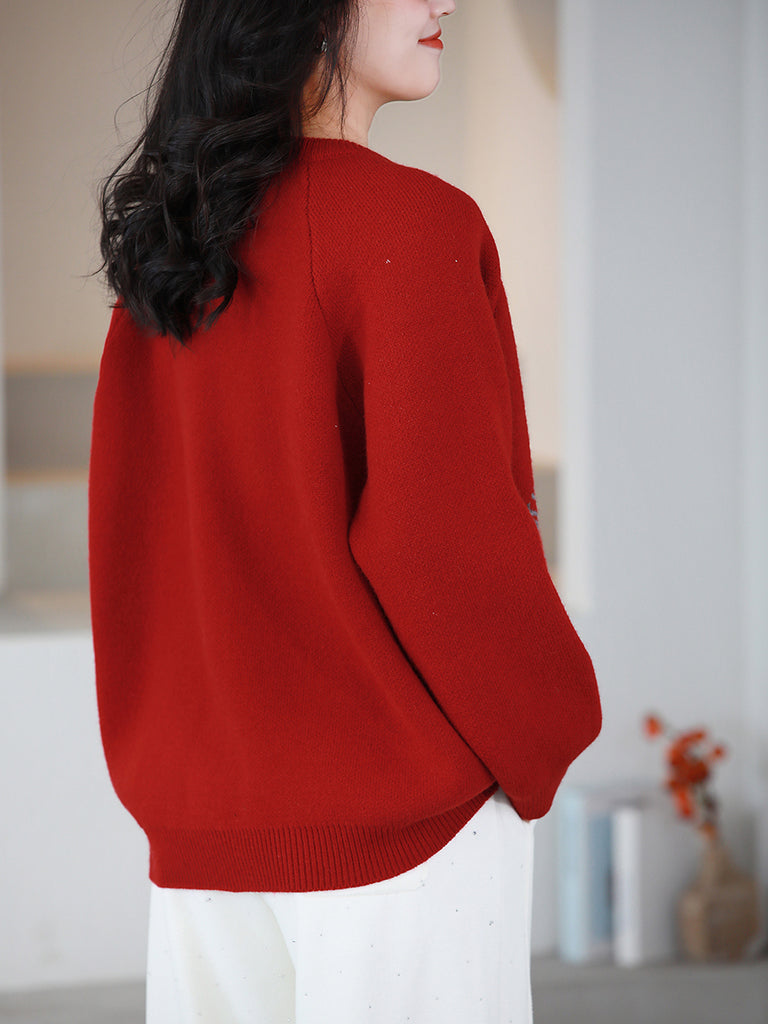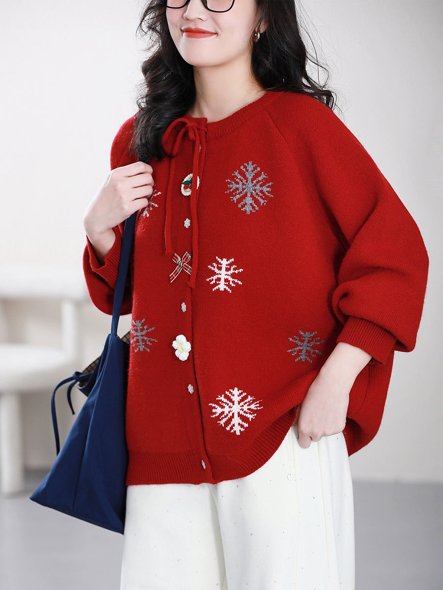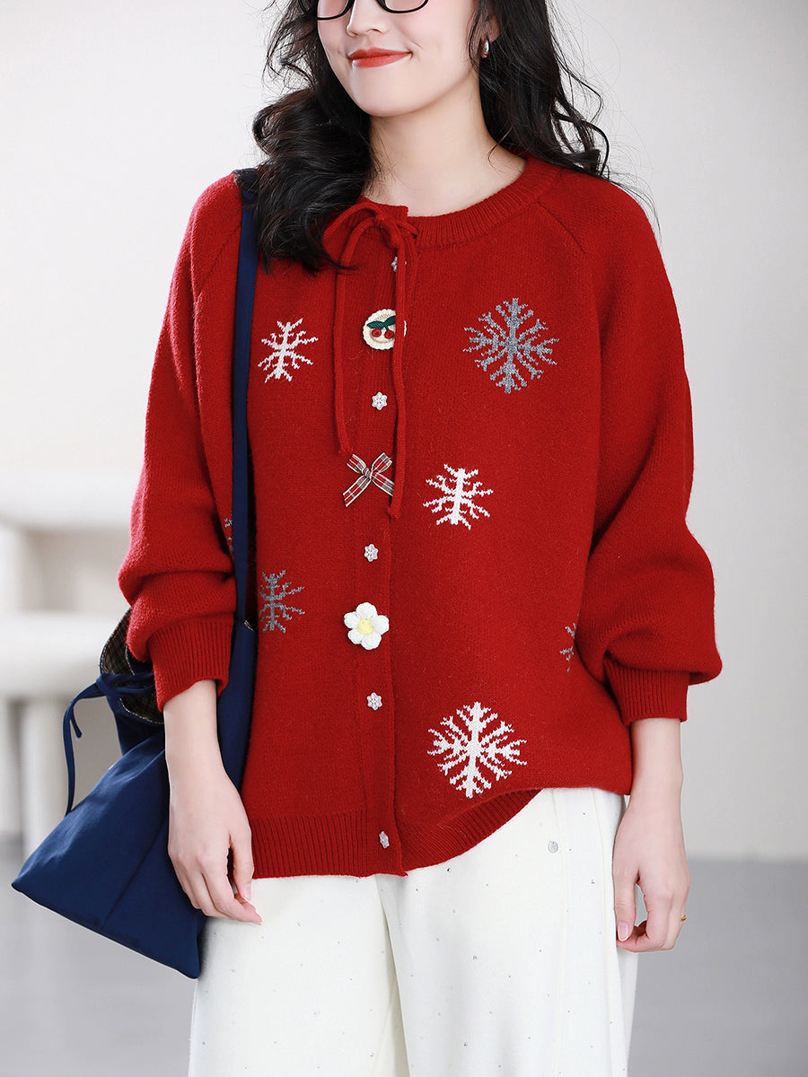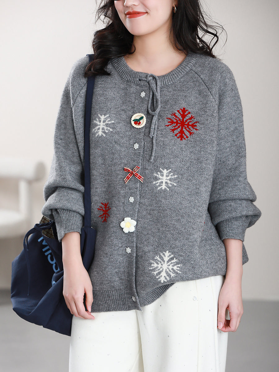 Suéter feminino de gola redonda com estampa de floco de neve para o outono e Natal