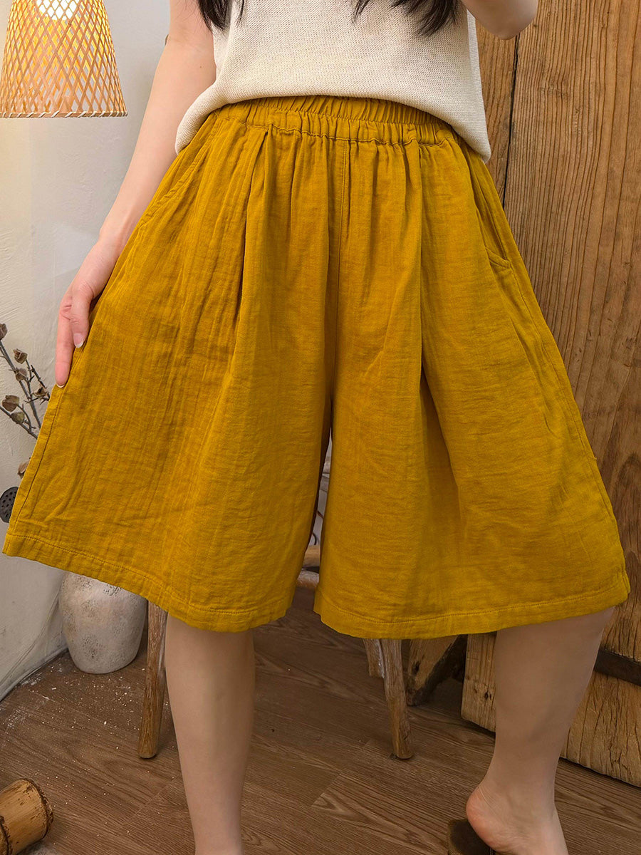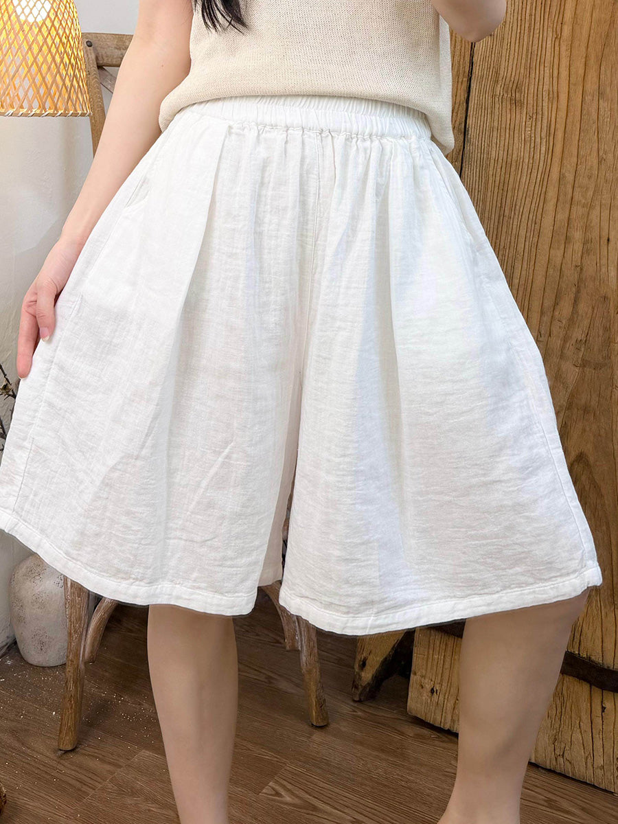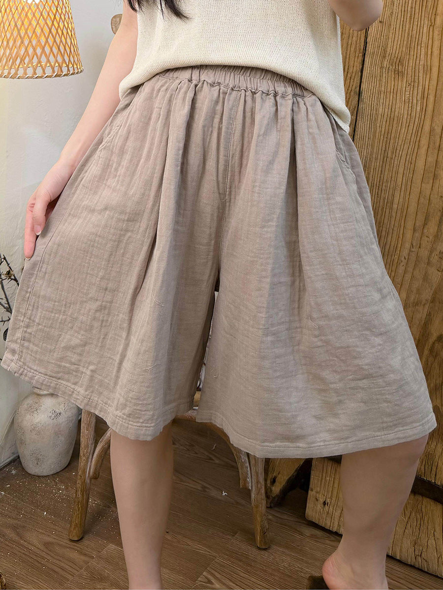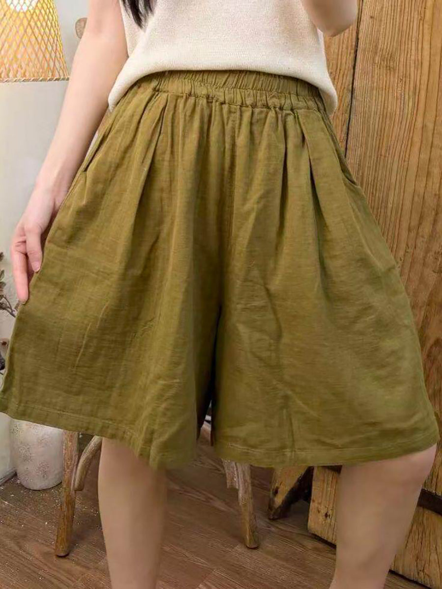 Calça feminina casual de verão em algodão de cor lisa, modelo 5.