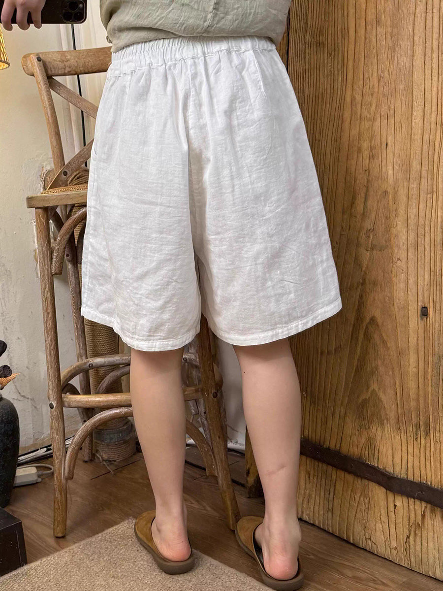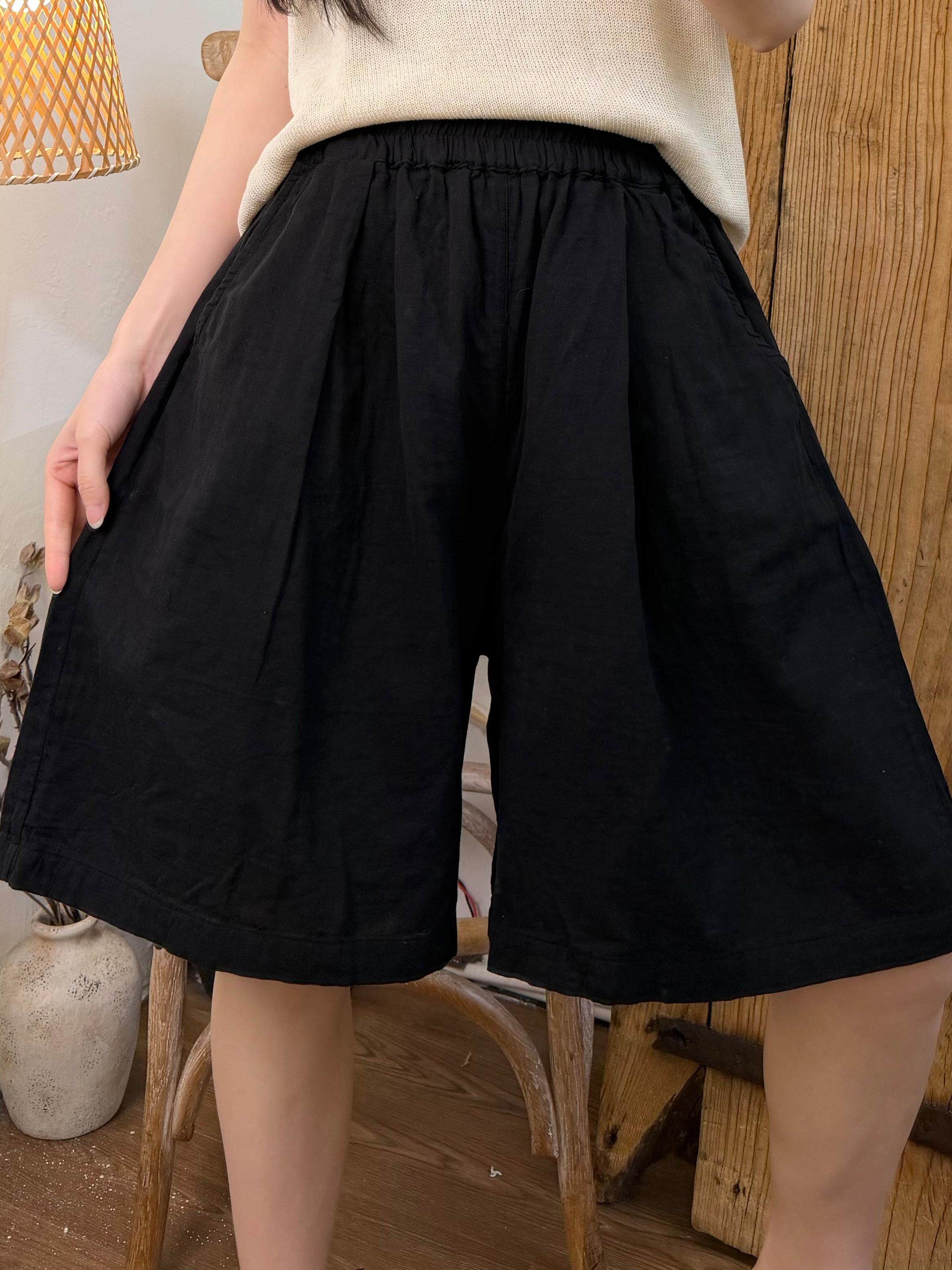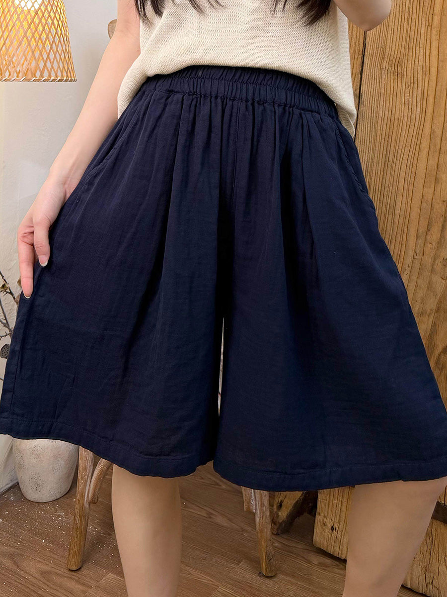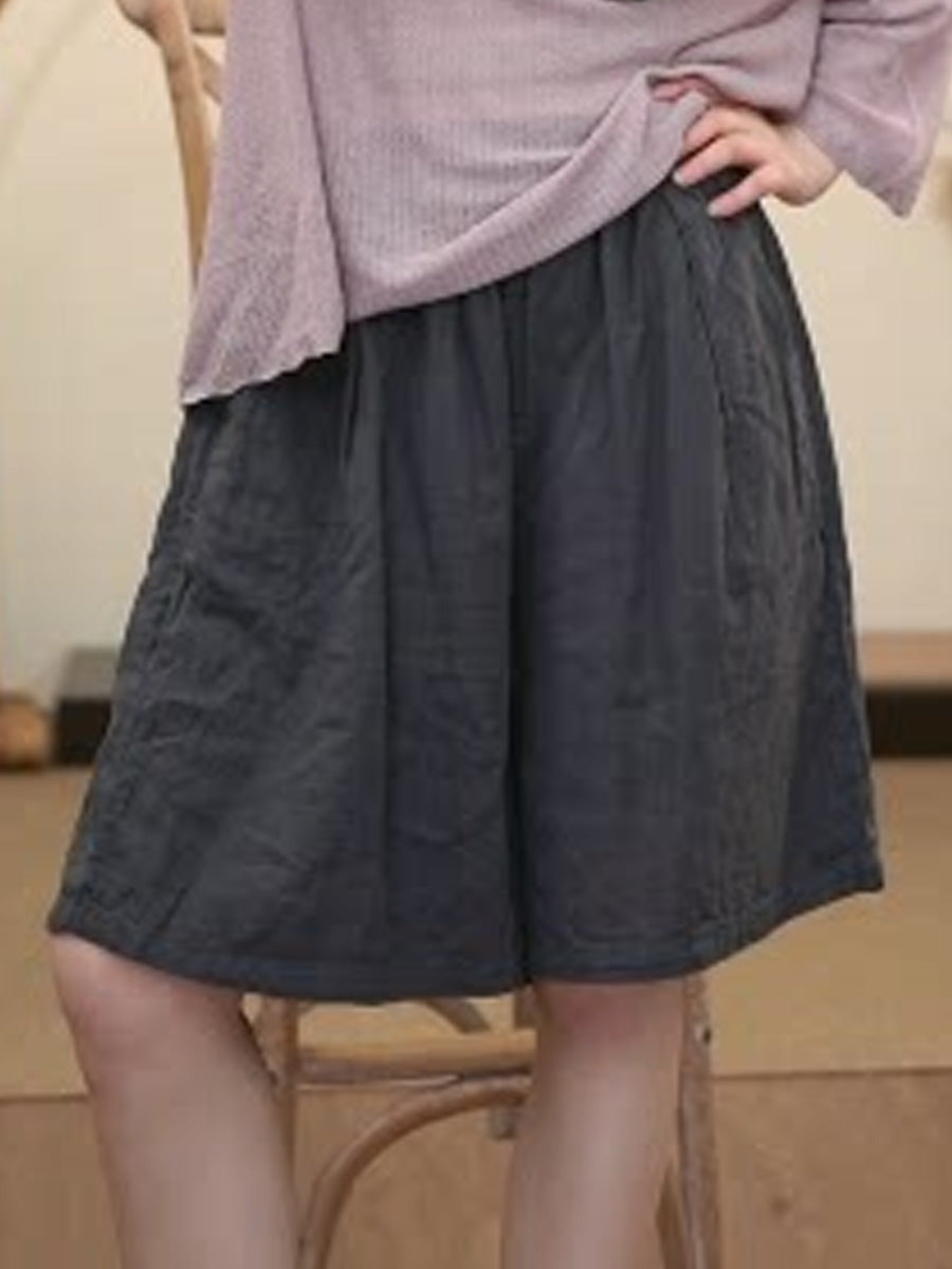 Calça feminina casual de verão em algodão de cor lisa, modelo 5.
