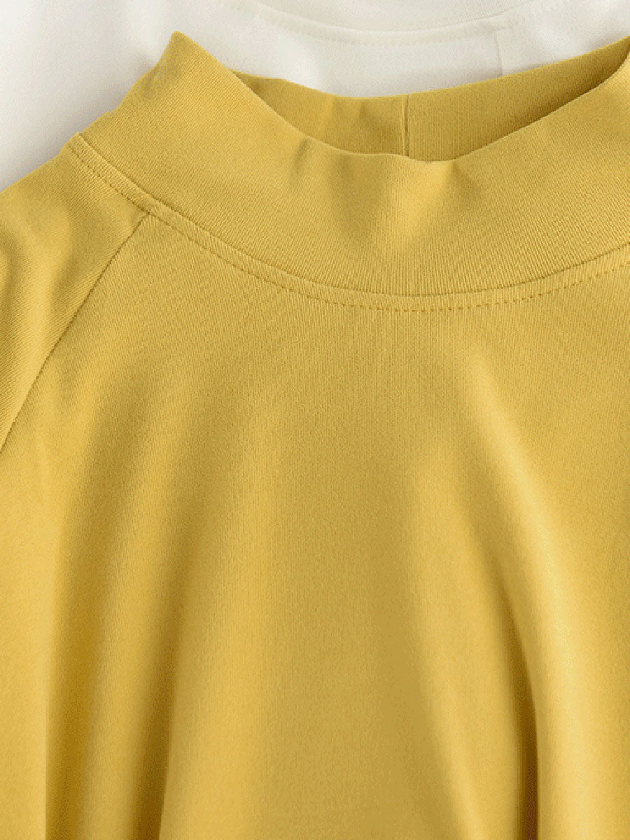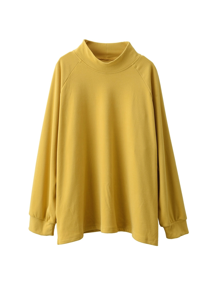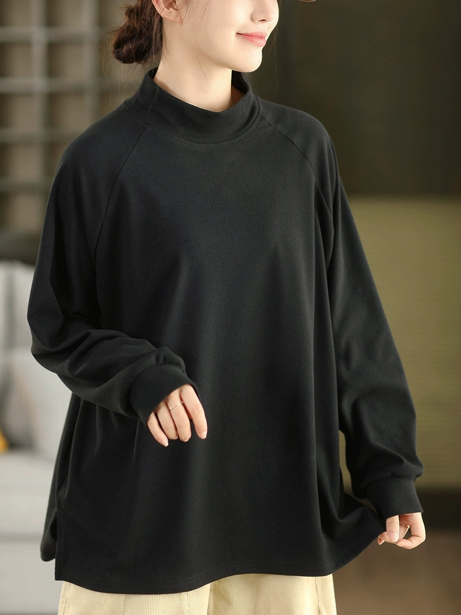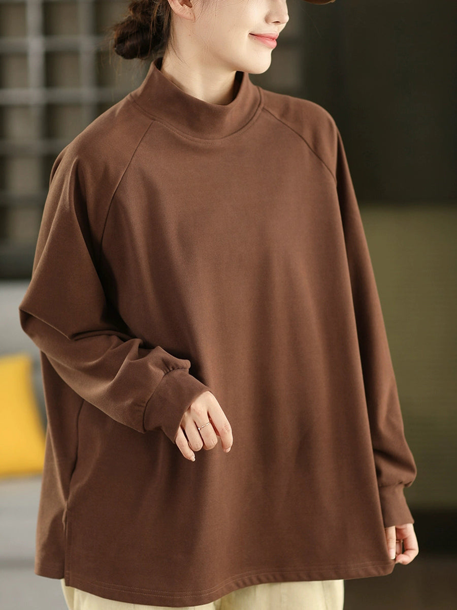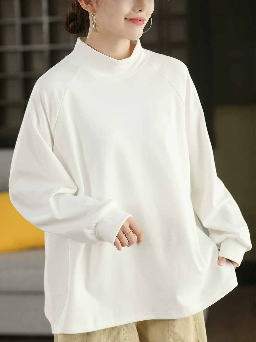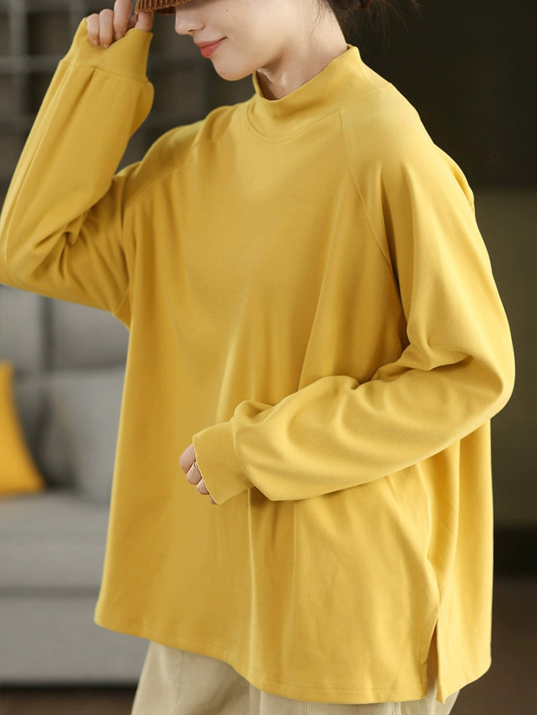Blusa feminina de inverno com gola alta curta, cor lisa, 100% algodão.