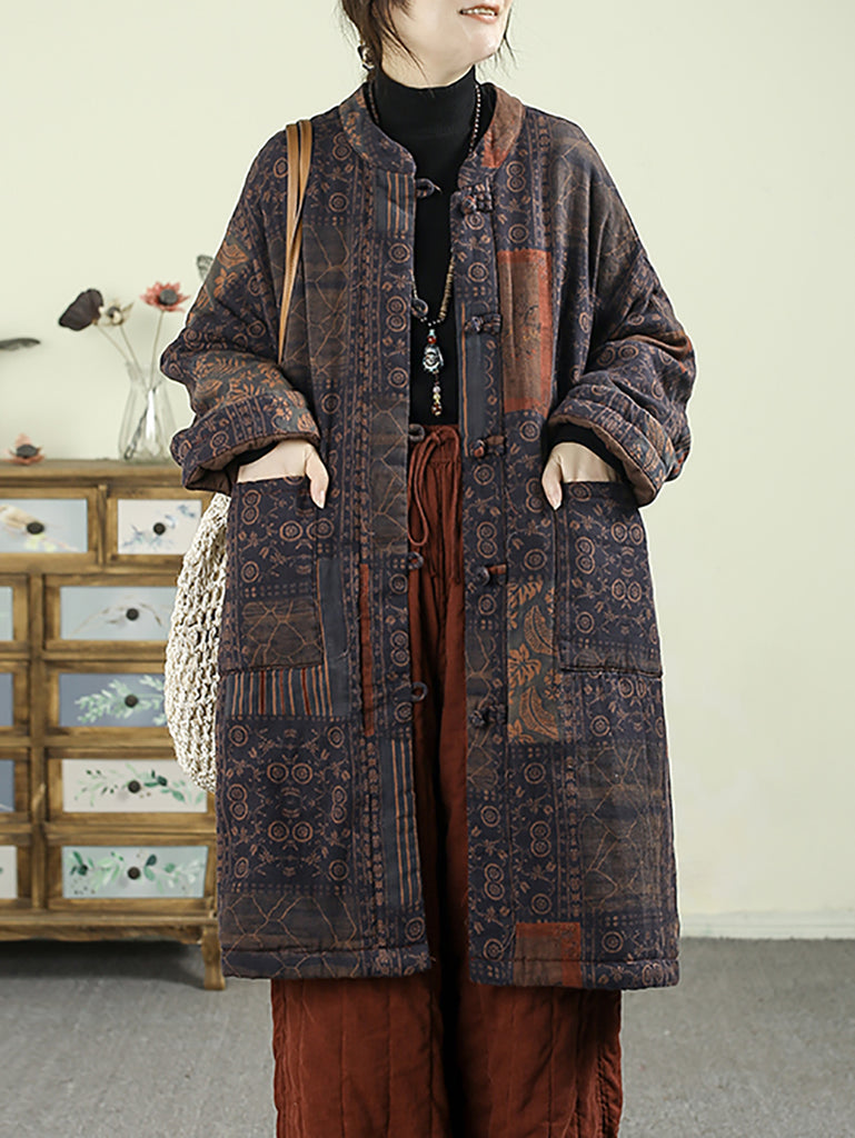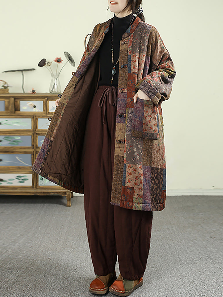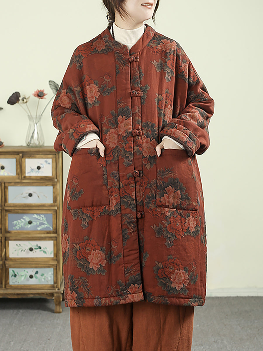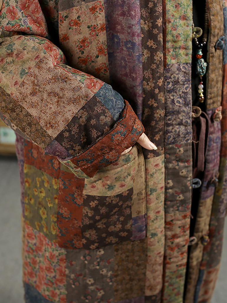 Casaco acolchoado feminino étnico com flores de outono 100% algodão