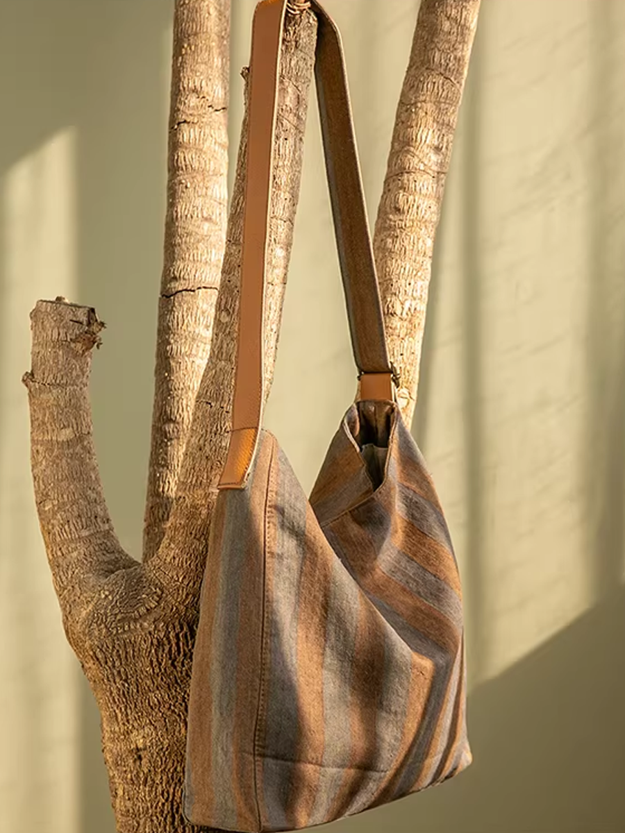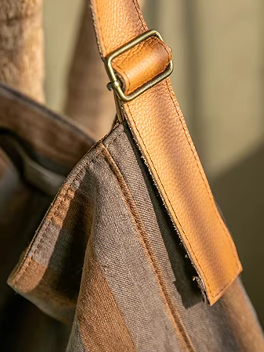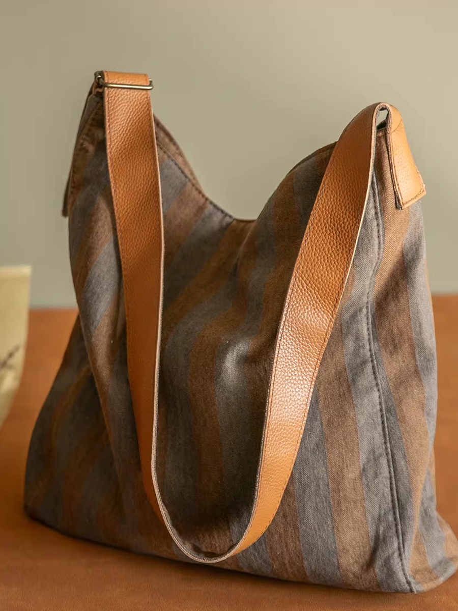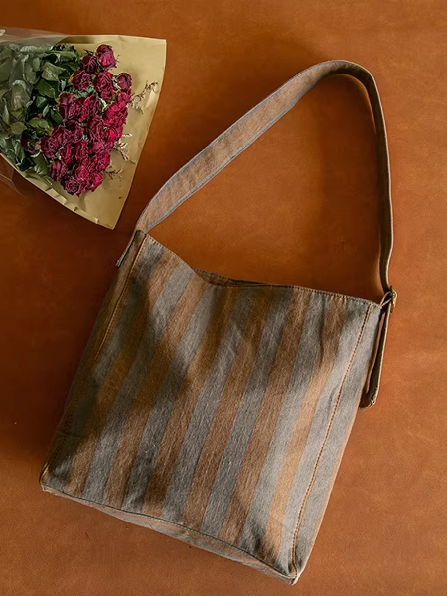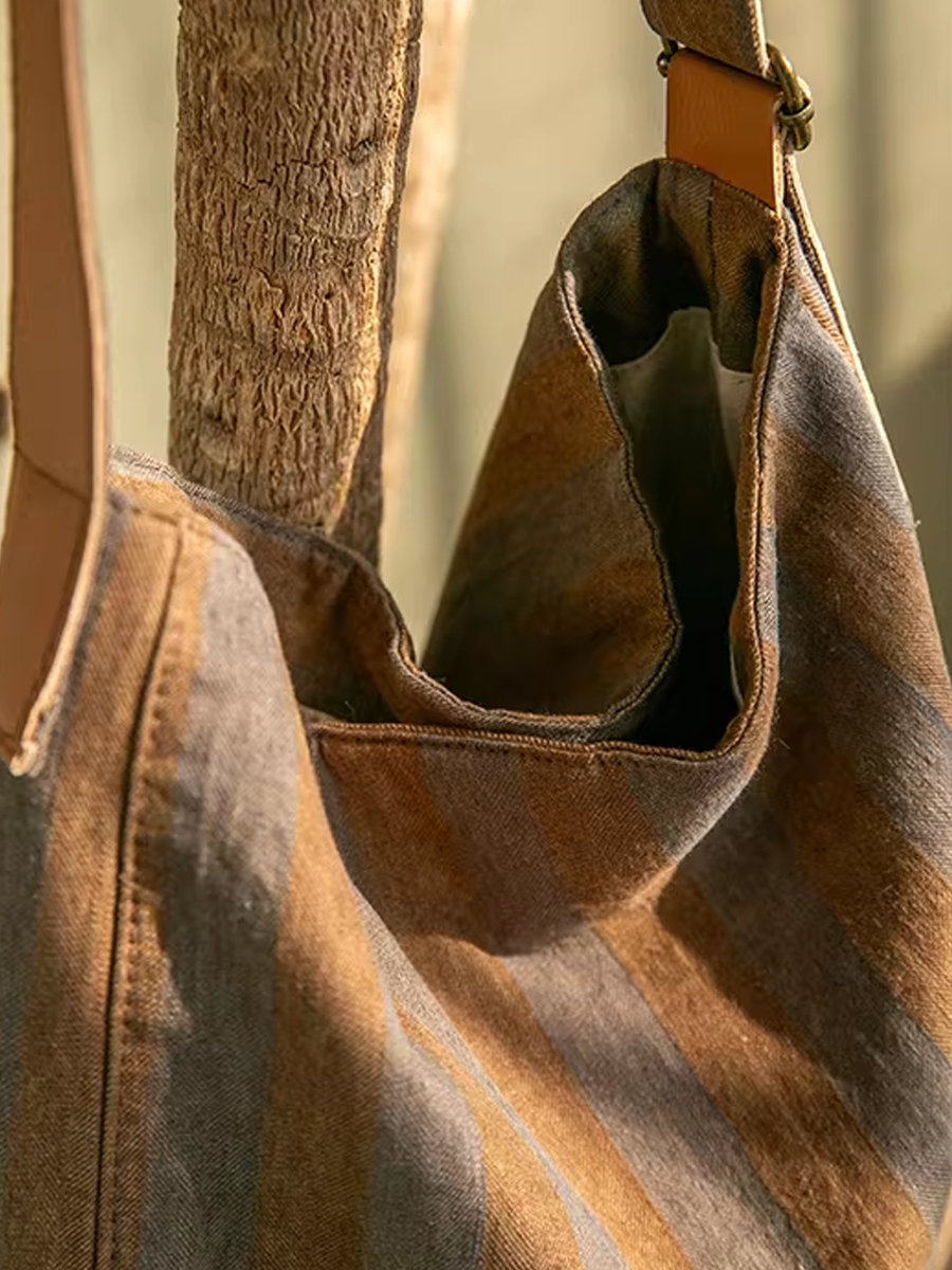 04014 Bolsa de lona listrada com lavagem vintage casual em blocos de cores