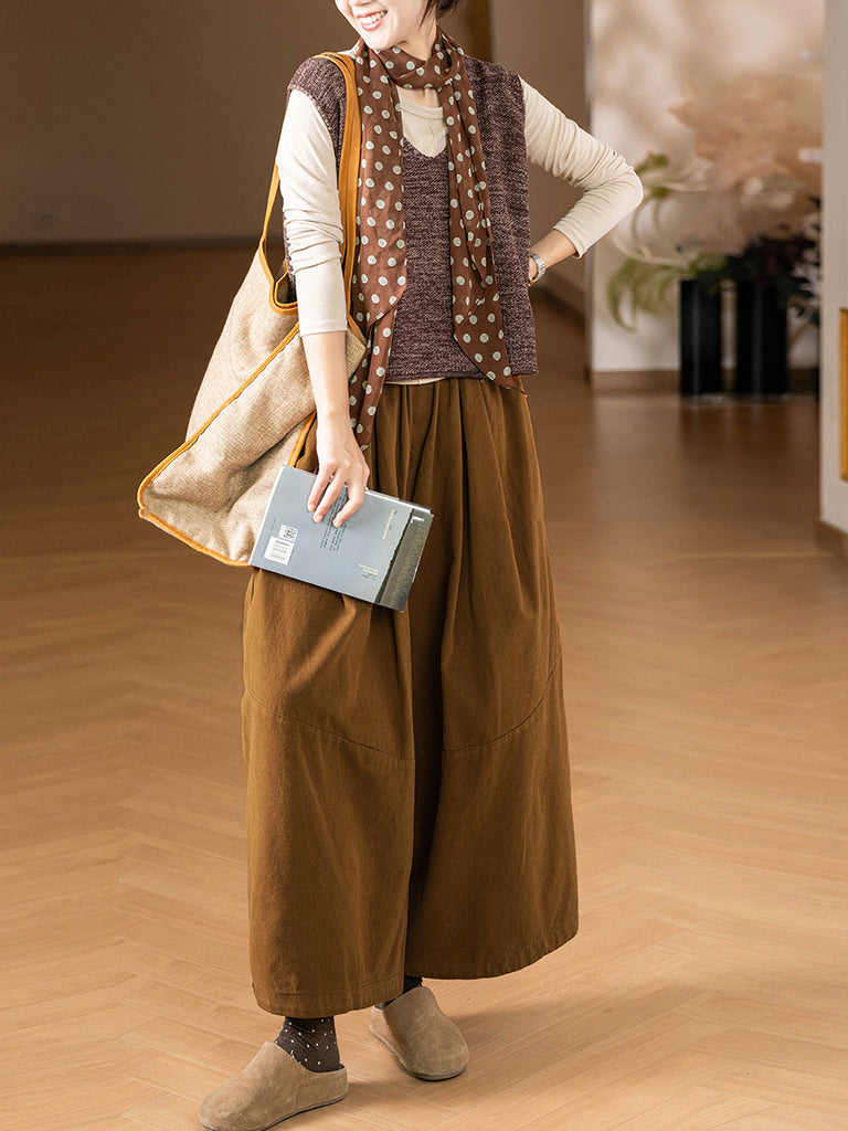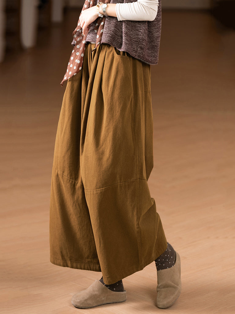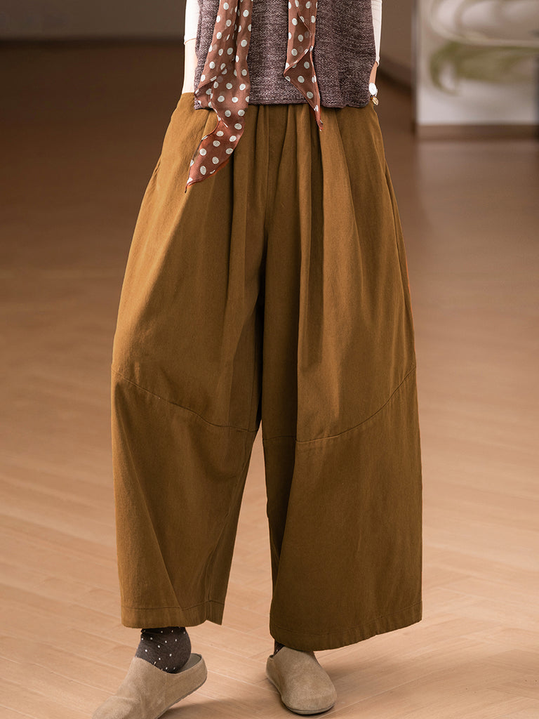 Calças femininas casuais de outono, cor pura, 100% algodão, pernas largas