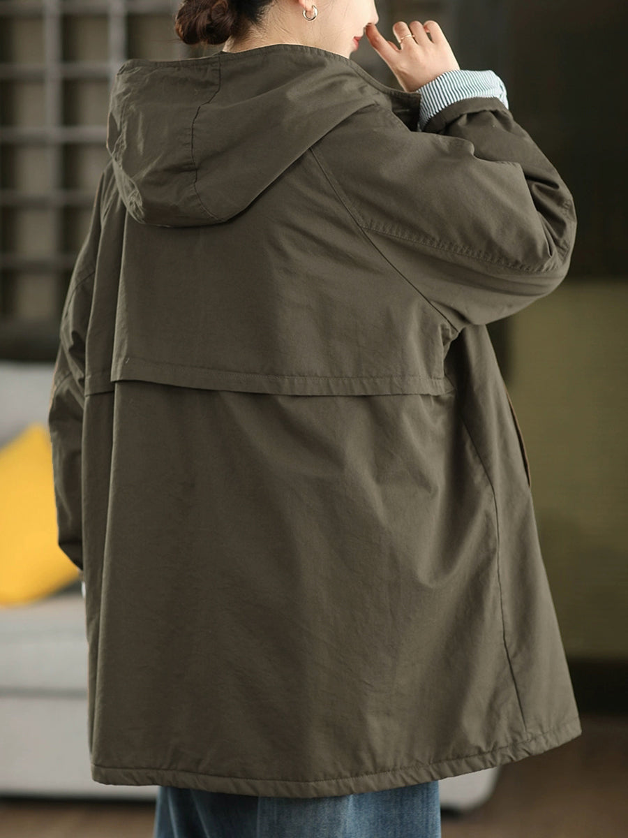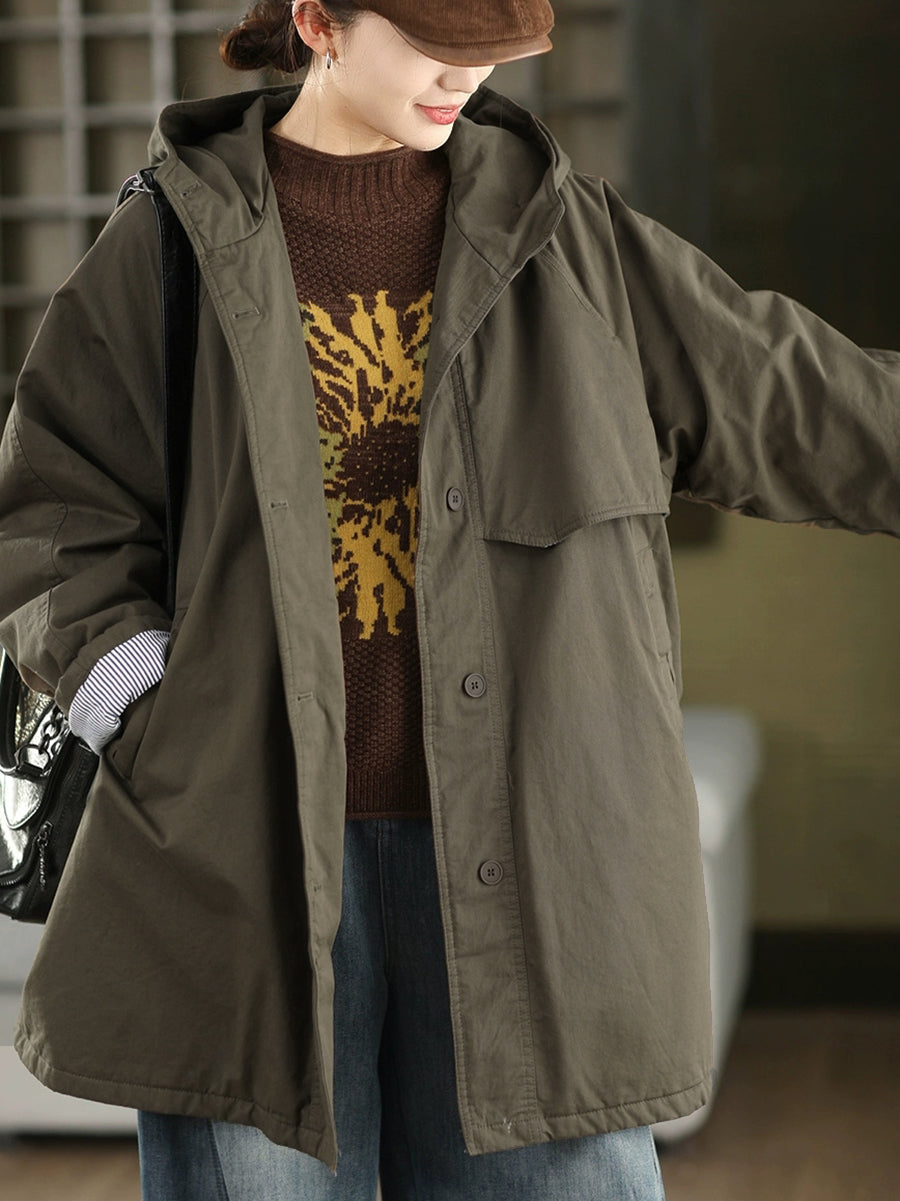 Casaco feminino de inverno com capuz acolchoado, cor lisa, 100% algodão.