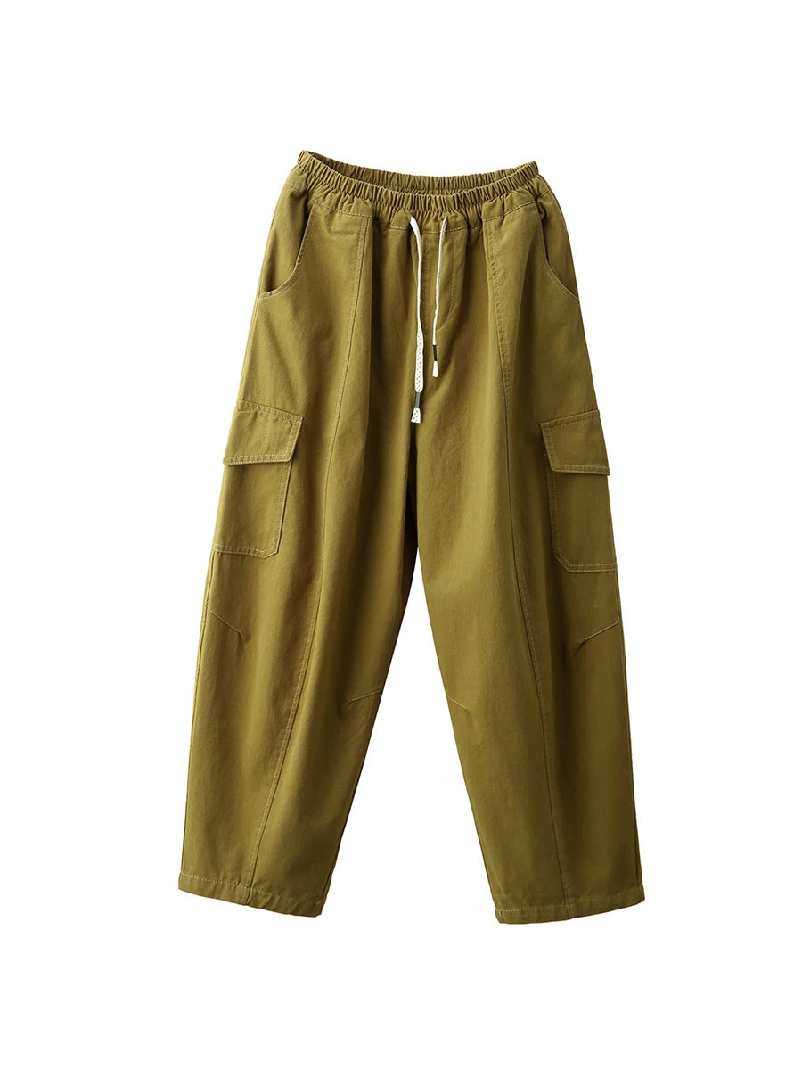 Calça Harem Feminina Casual de Primavera em Algodão Liso