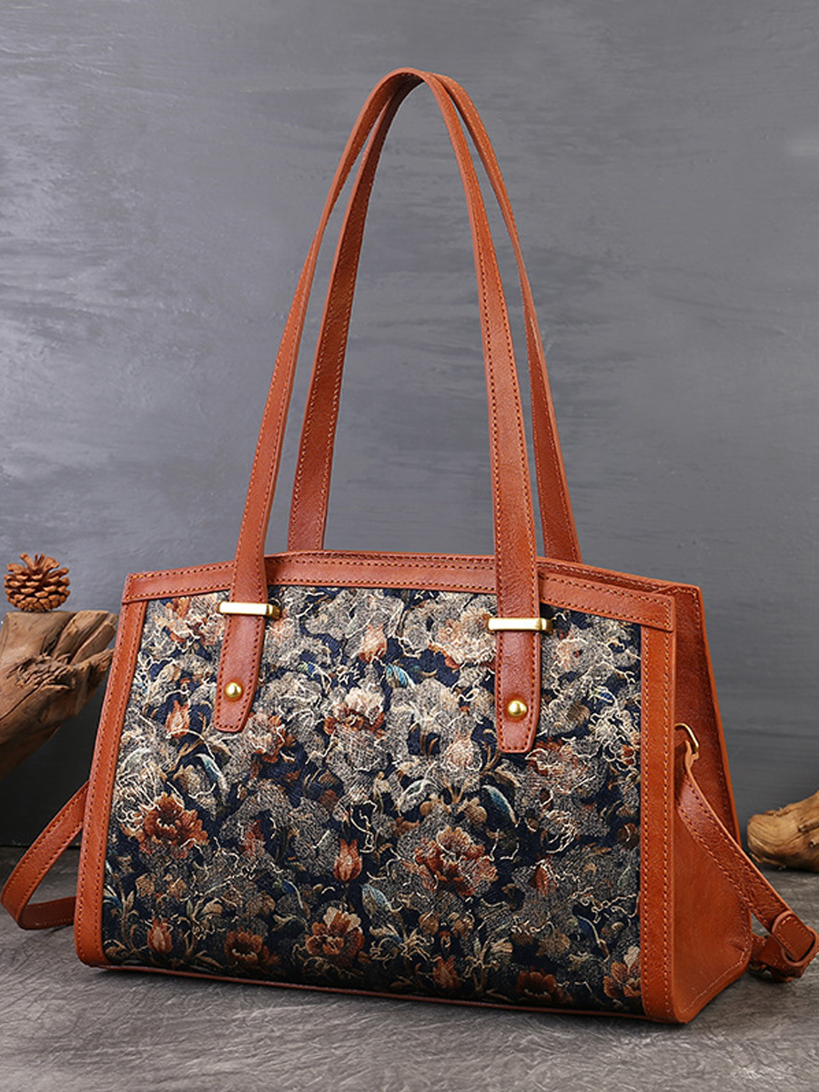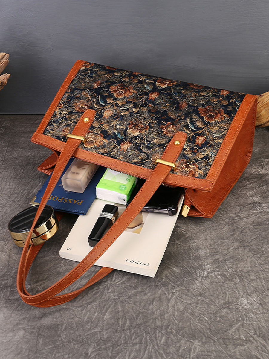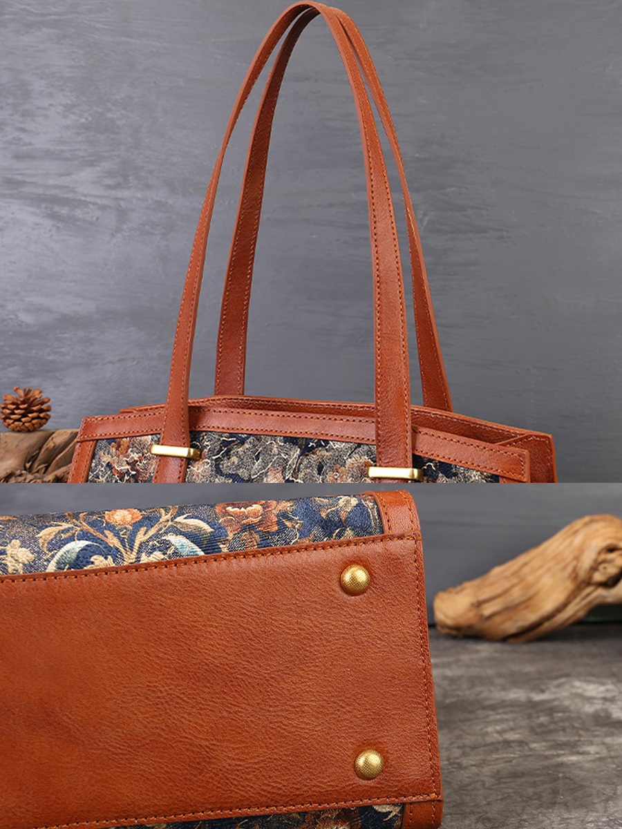 • Destaques: Costura; Bordado floral; Couro emendado; Estilo vintage; Feito à mão;