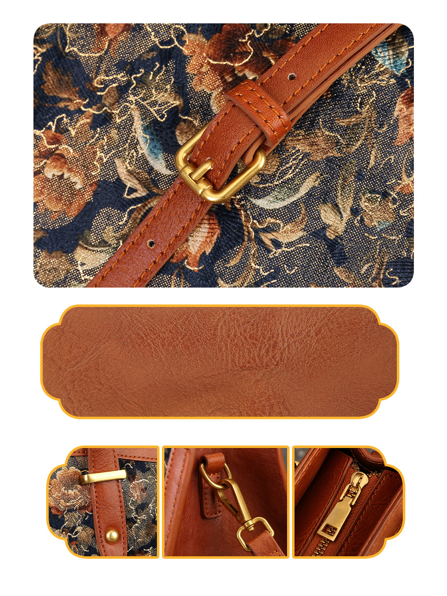 Esta bolsa transversal vintage com bordado étnico é feita de couro bovino de alta qualidade e resistente. Seu bordado exclusivo adiciona um toque retrô e elegante, combinando o artesanato tradicional com a moda moderna. Perfeita para qualquer ocasião, oferece estilo e versatilidade.