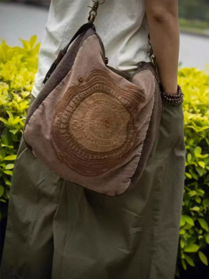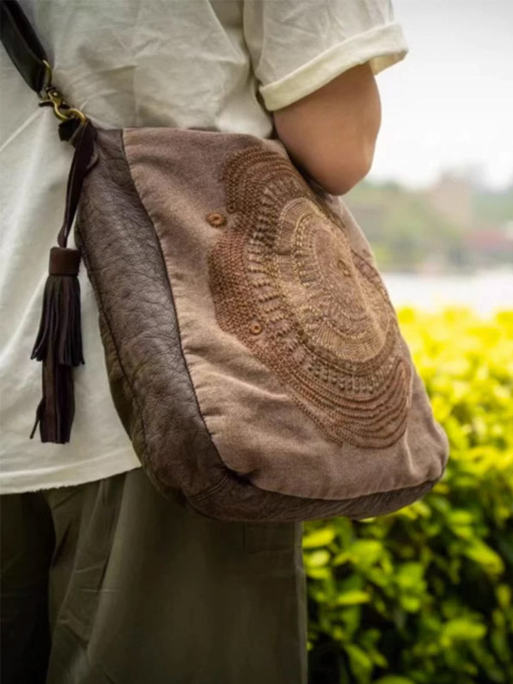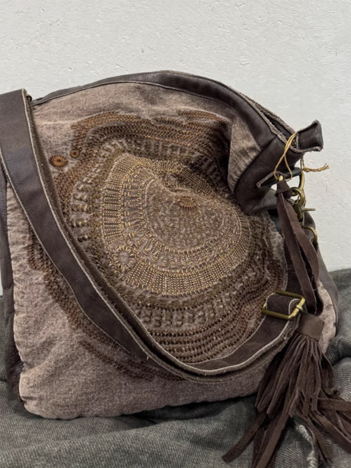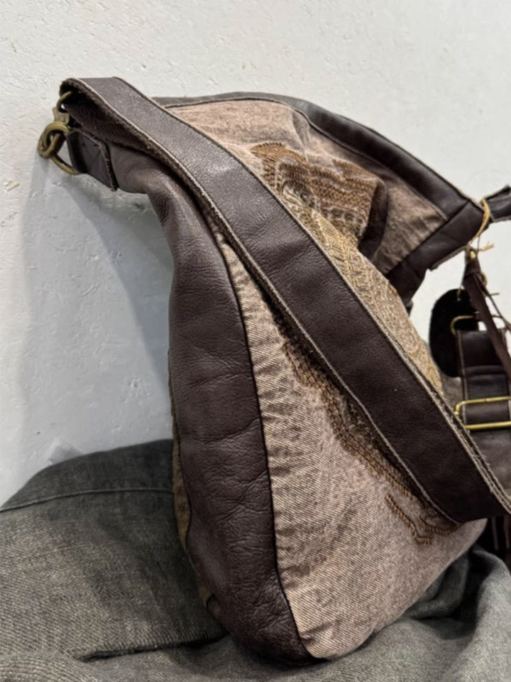 Bolsa transversal vintage 1105 em couro com bordados aparentes