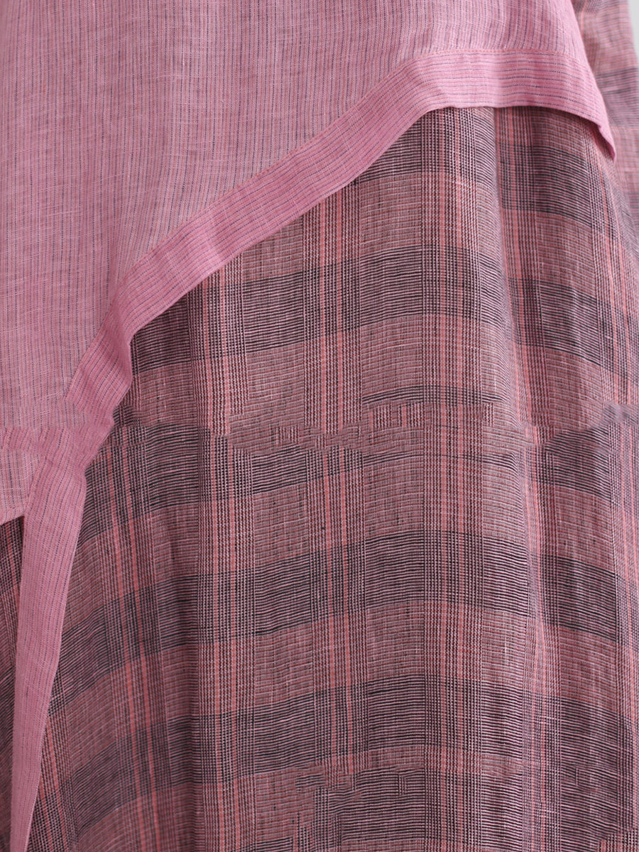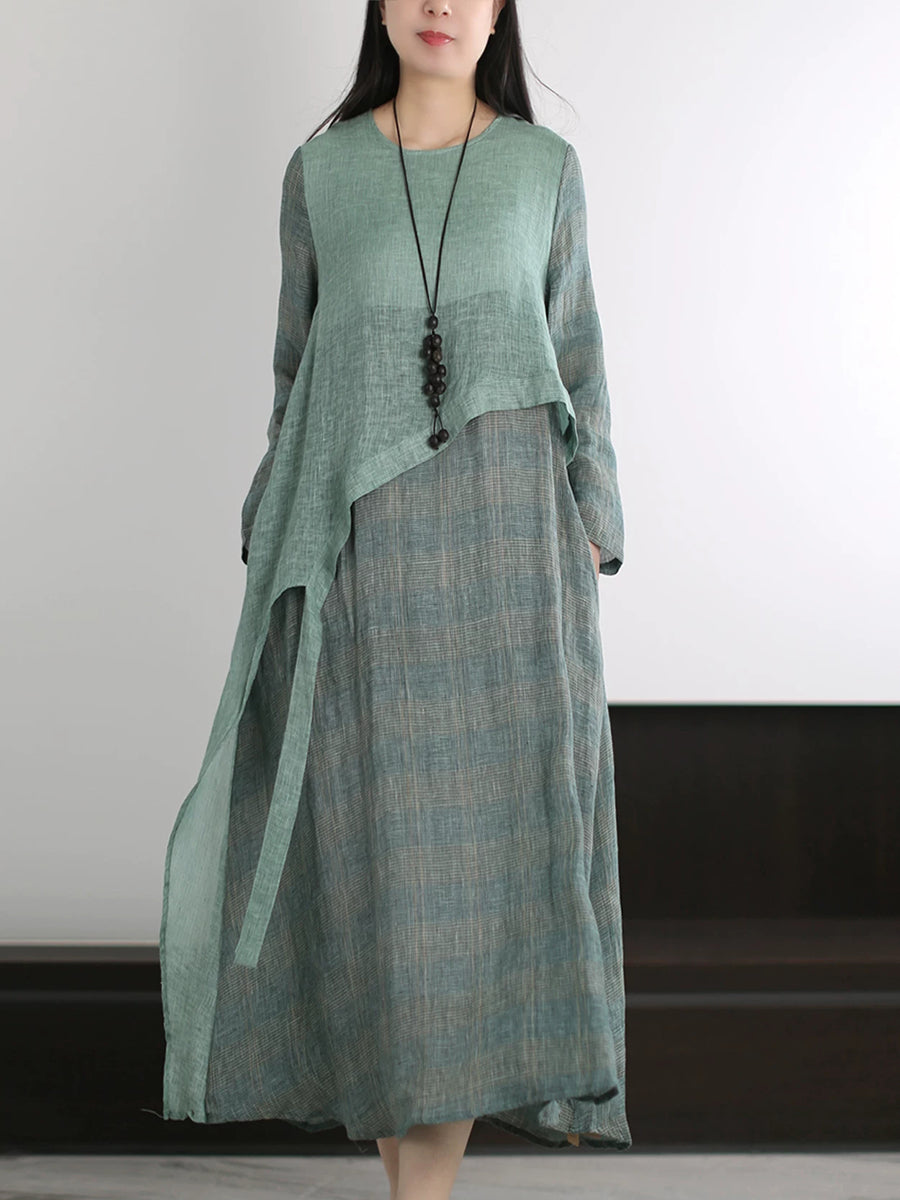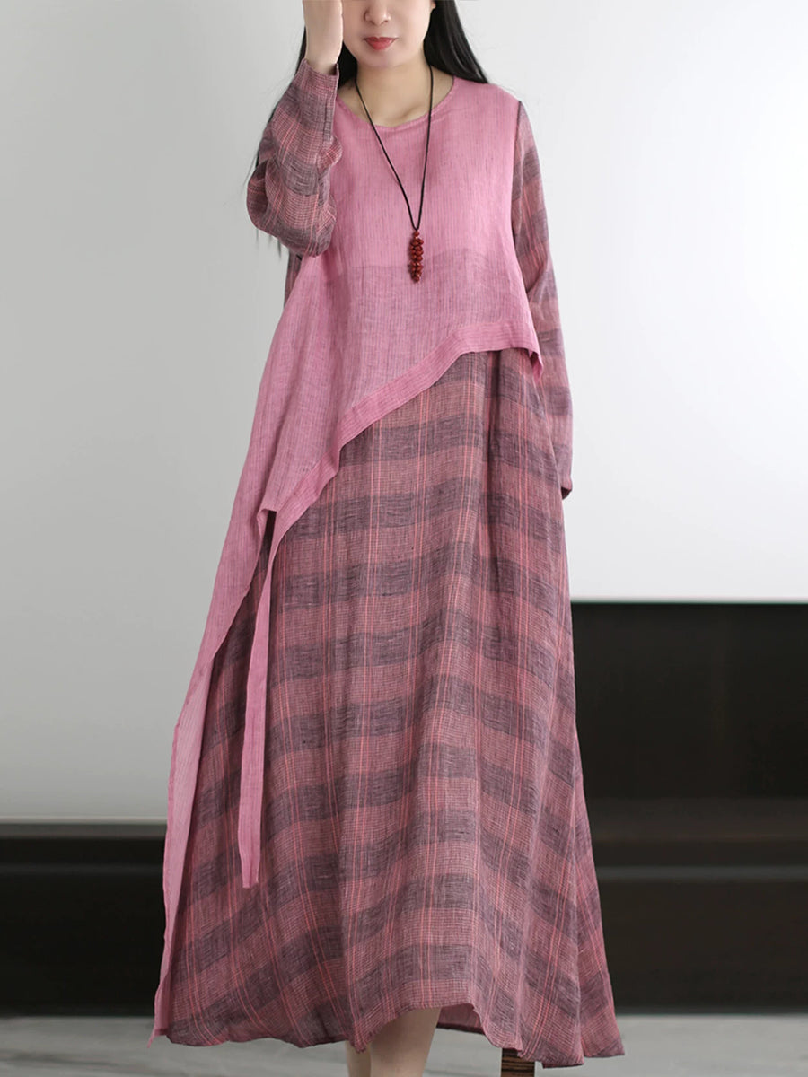 Vestido feminino de linho listrado com decote redondo para o verão.