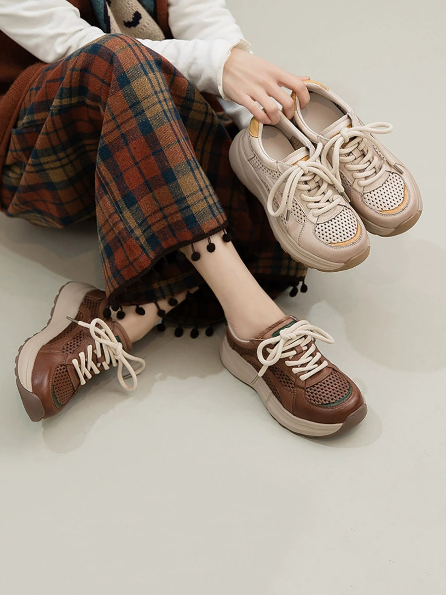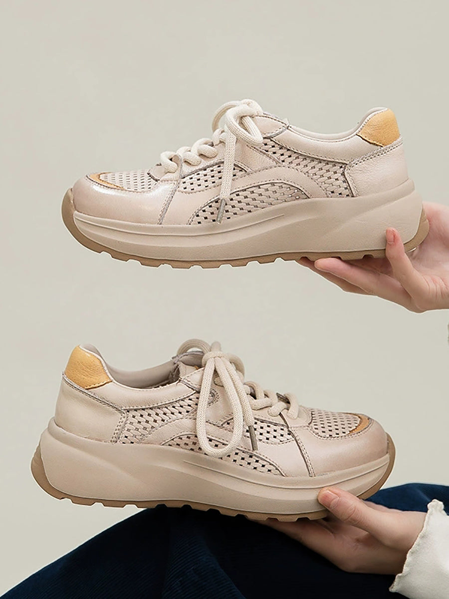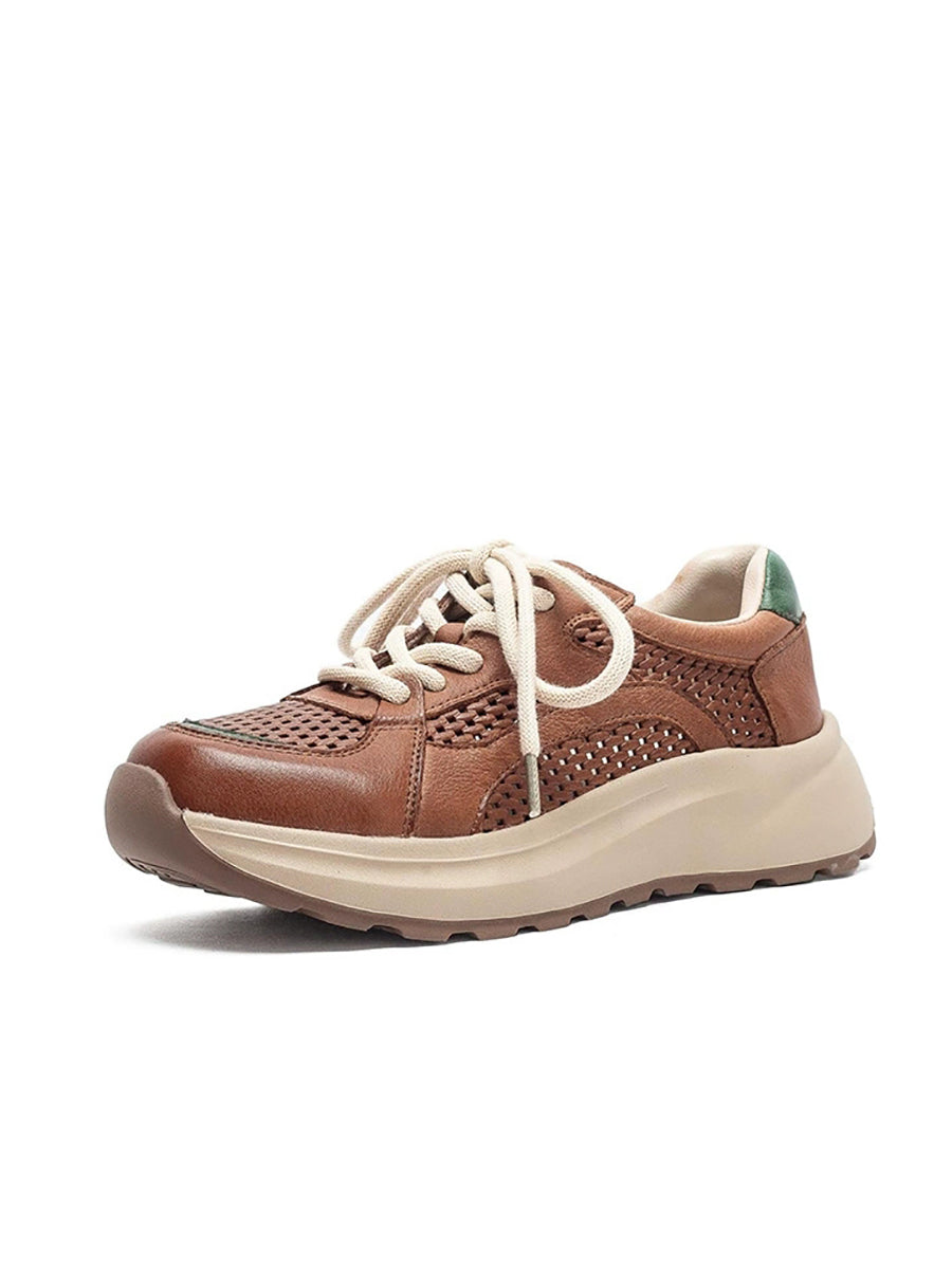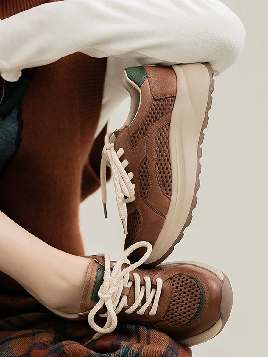 Tênis esportivo feminino de verão em couro e tela