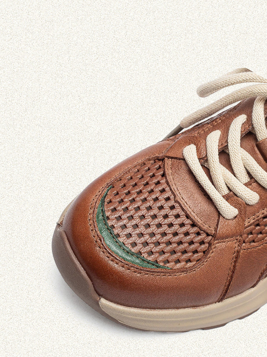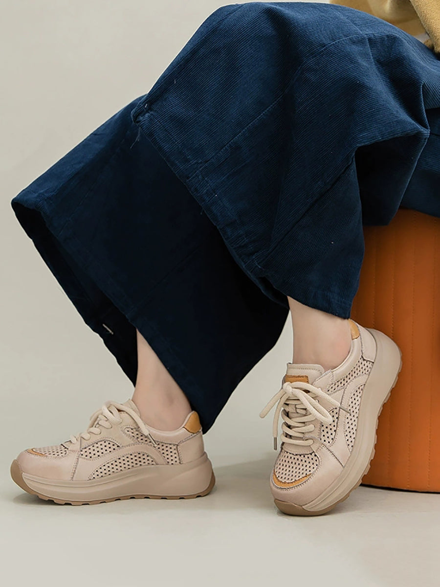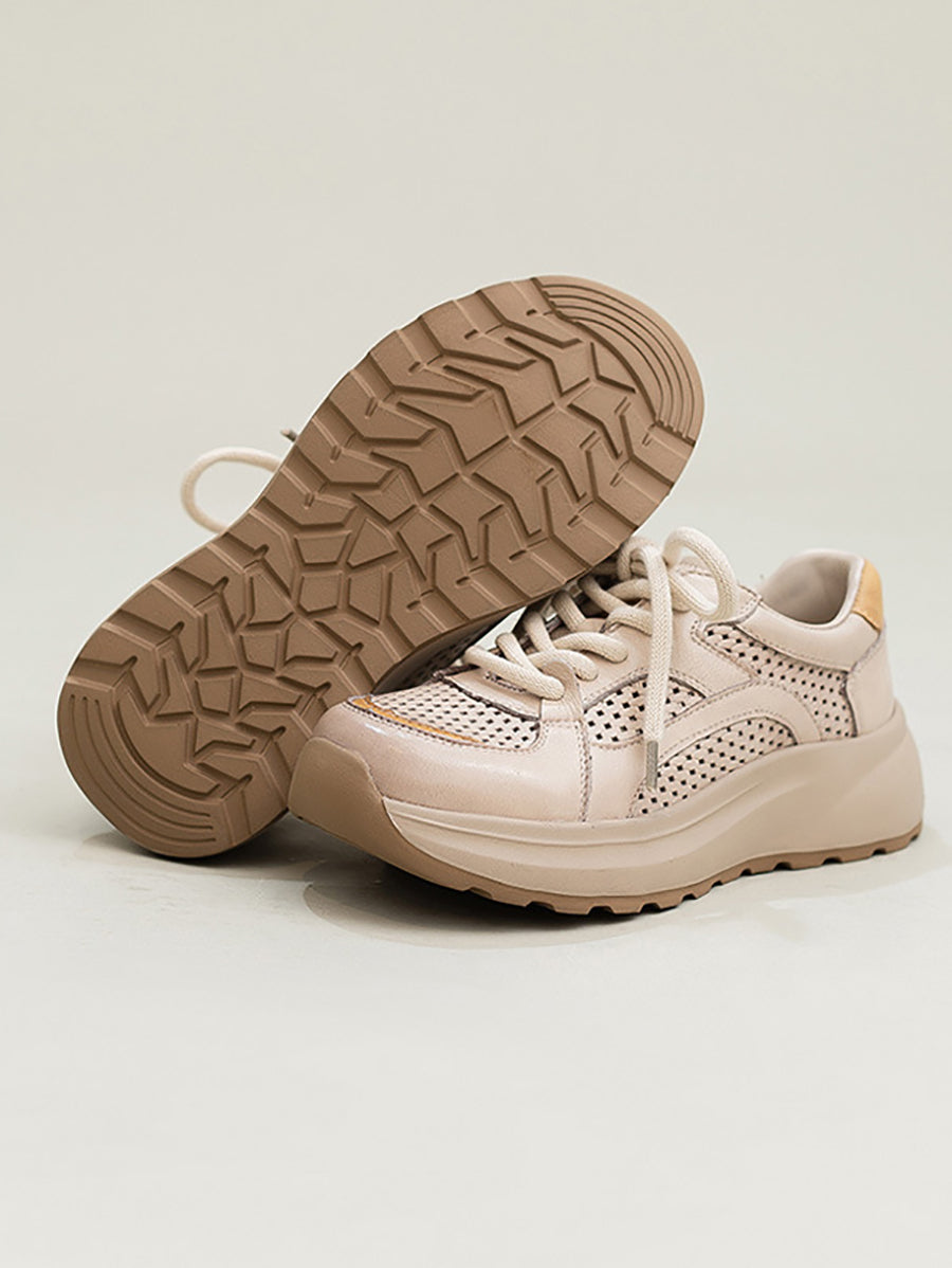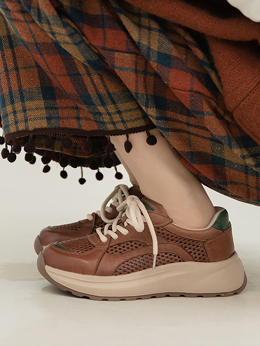 Tênis esportivo feminino de verão em couro e tela