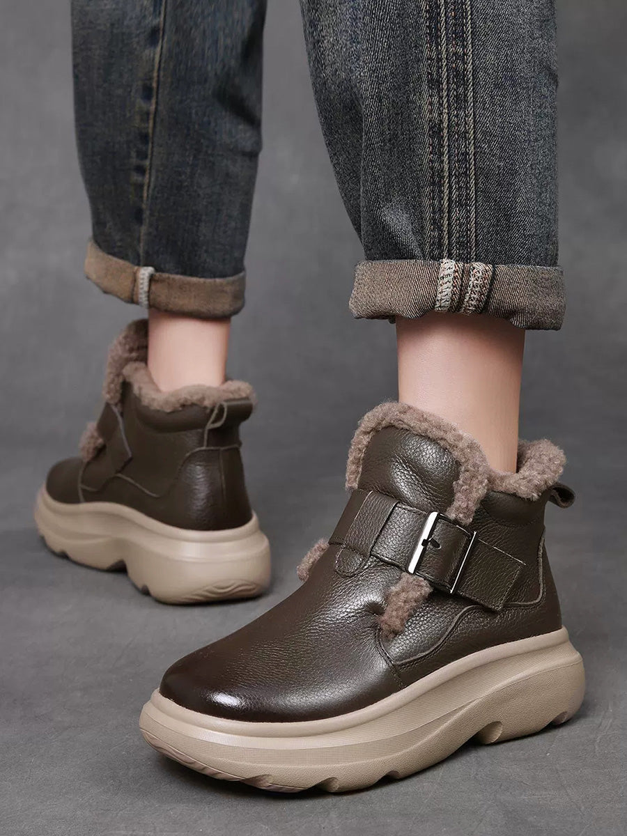 Botas de cano curto femininas de inverno em couro legítimo com forro de lã