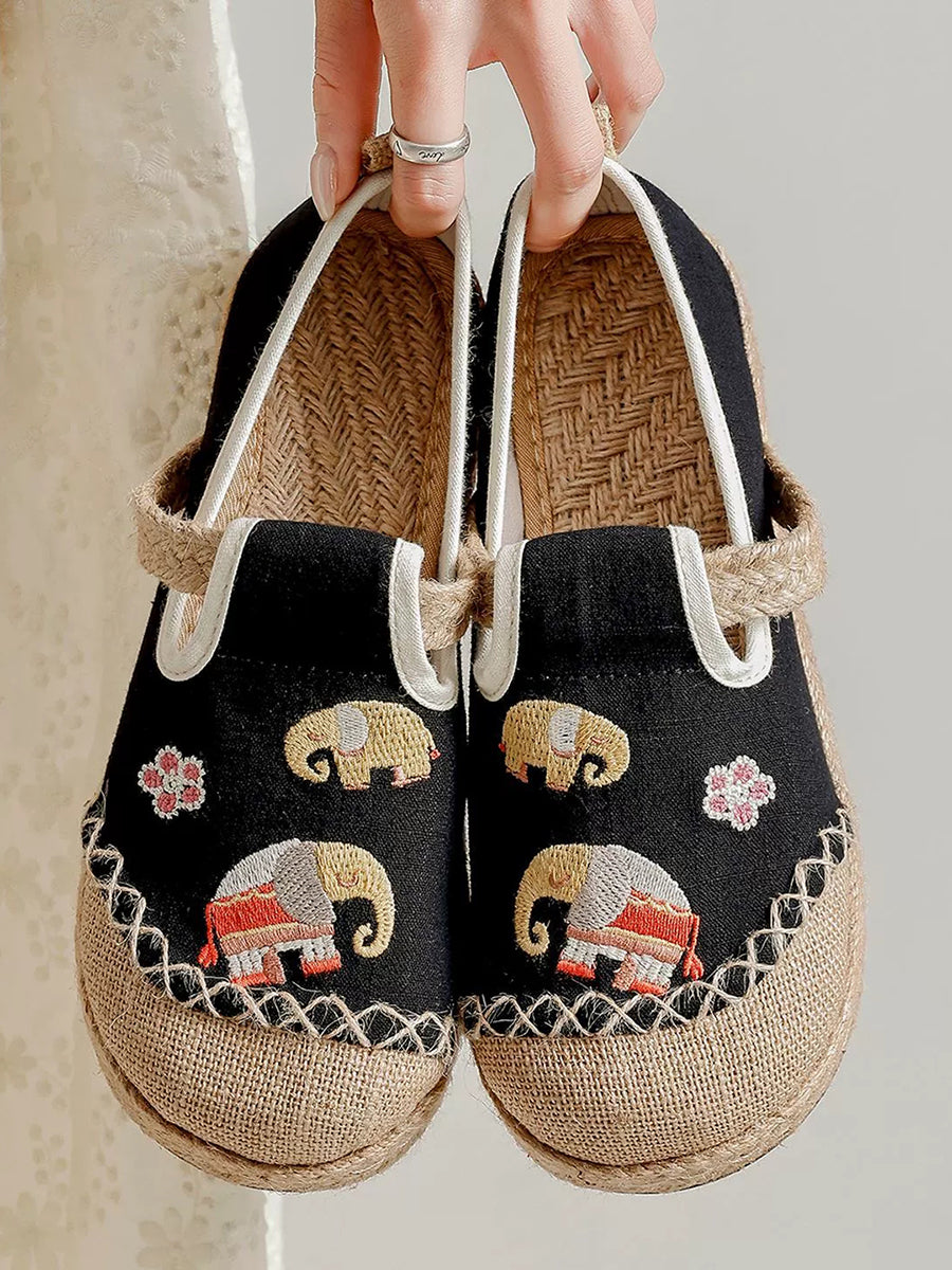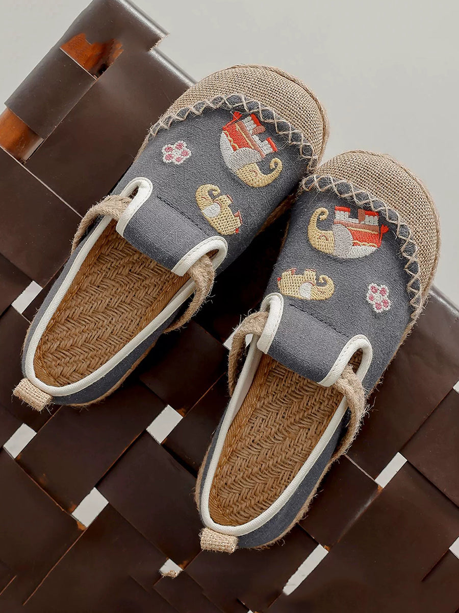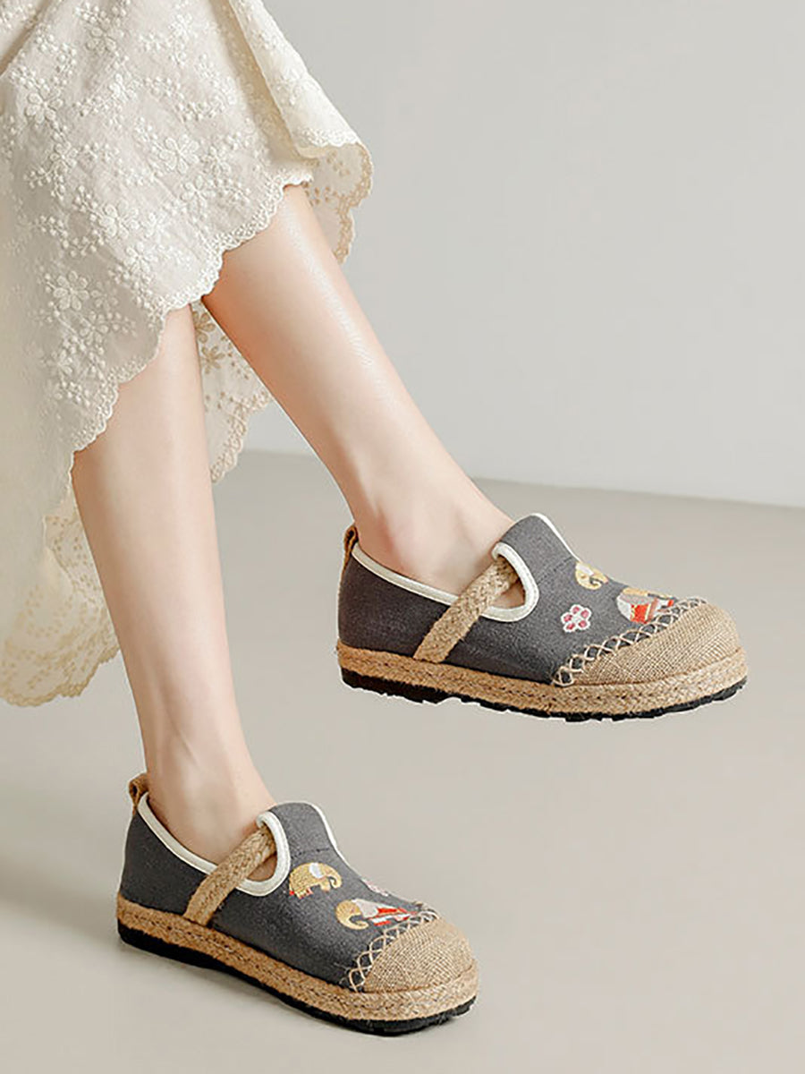 Sapatos de lona com bordado étnico feminino para o verão