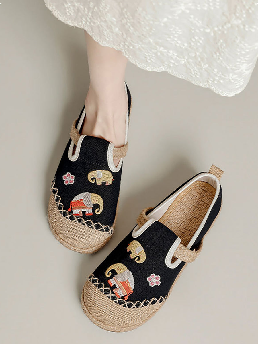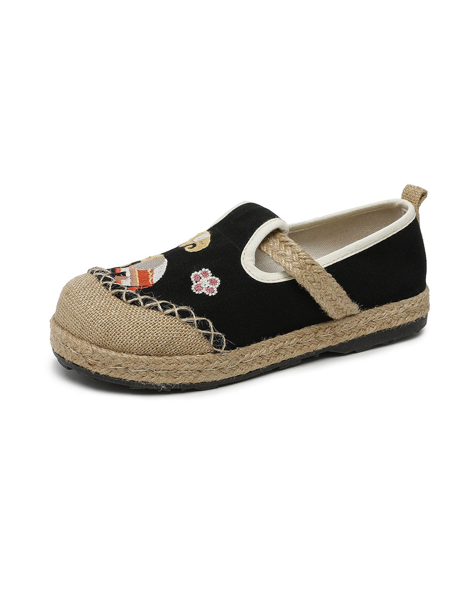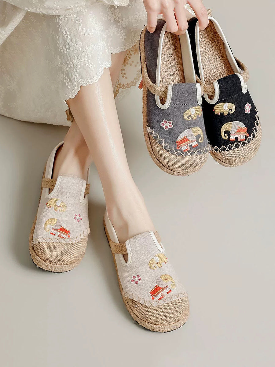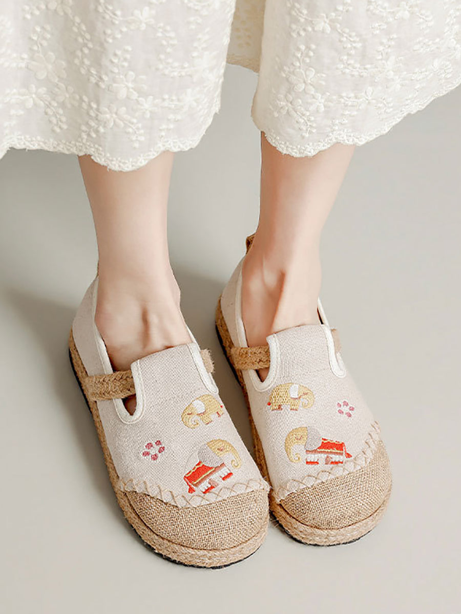Sapatos de lona com bordado étnico feminino para o verão