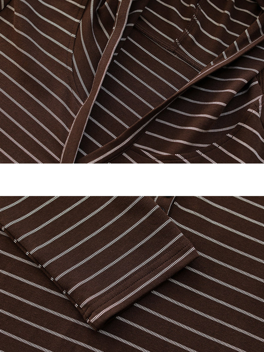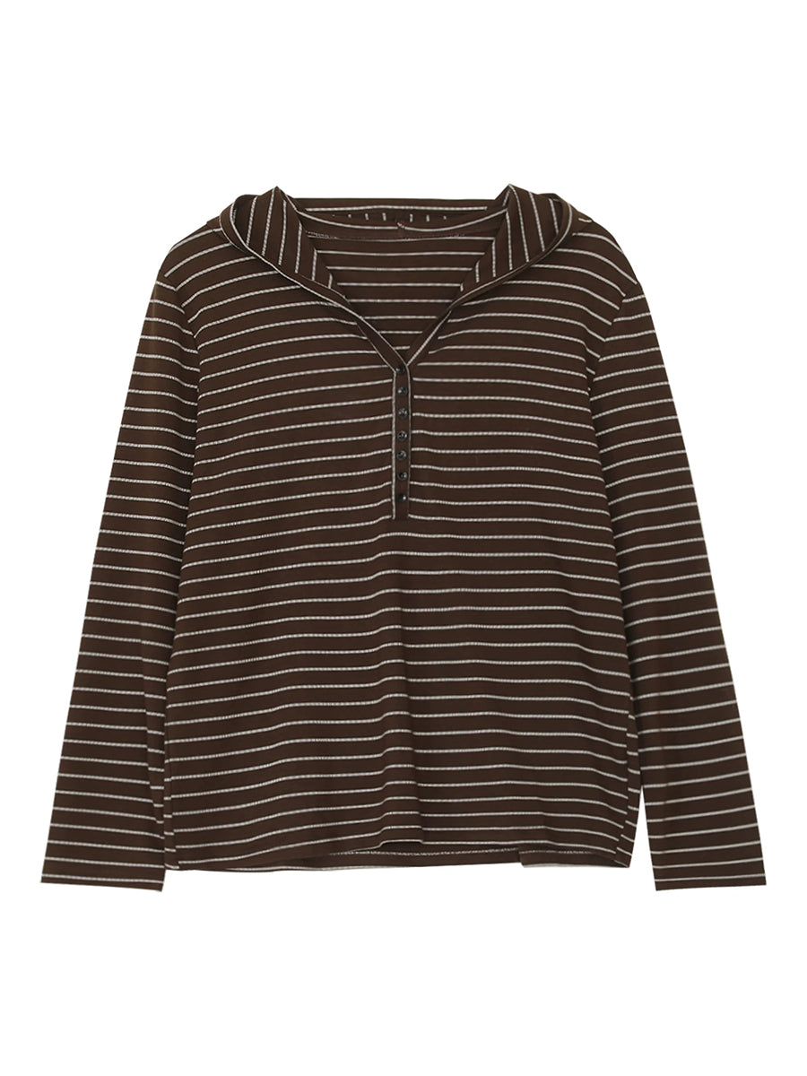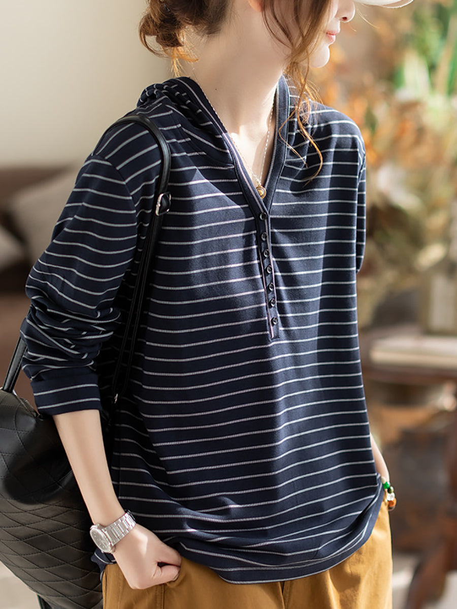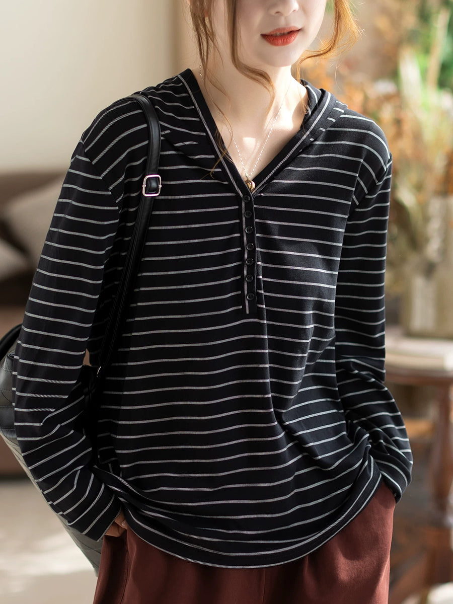 Blusa feminina de algodão com capuz e listras artísticas para a primavera