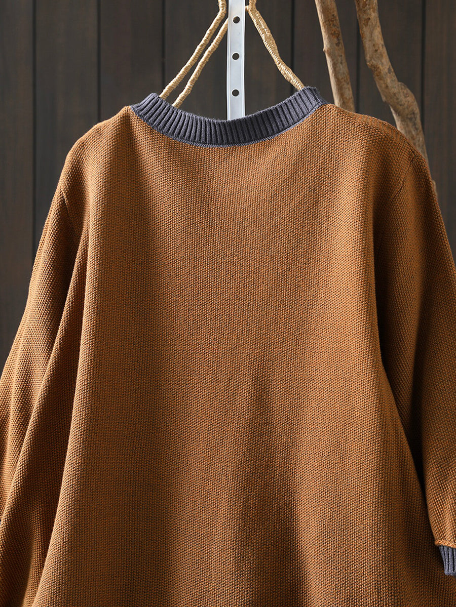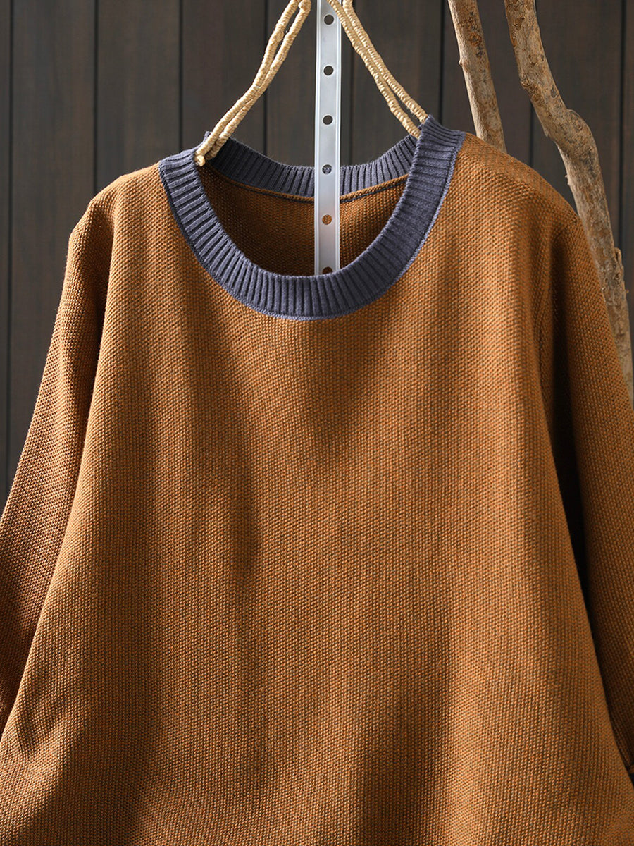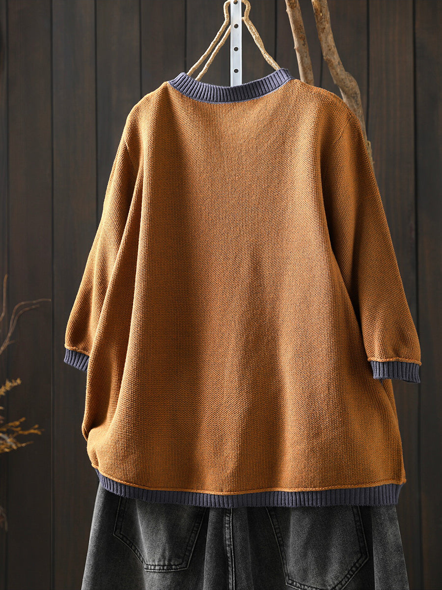 Camisa feminina casual de verão com decote redondo e blocos de cores