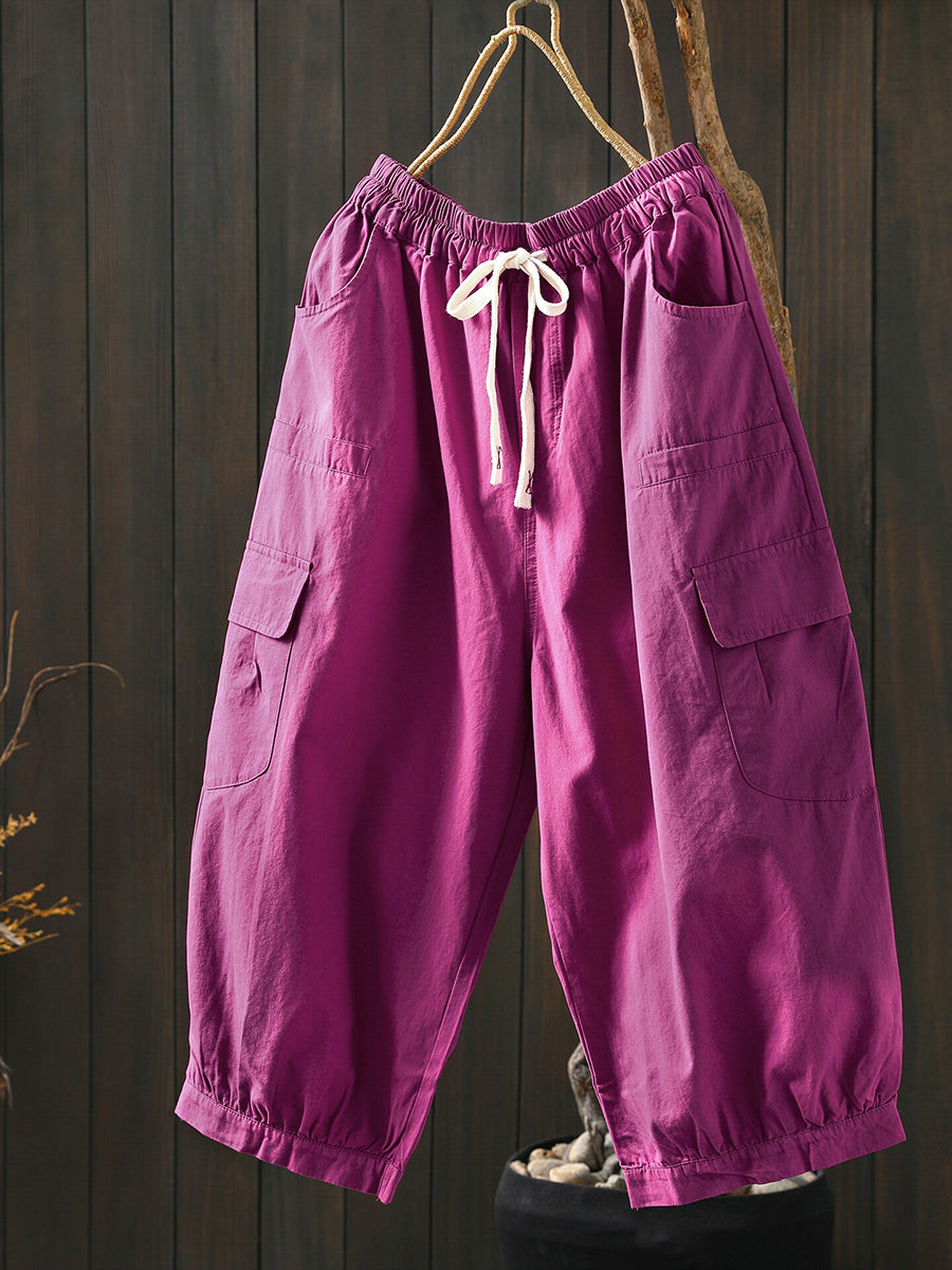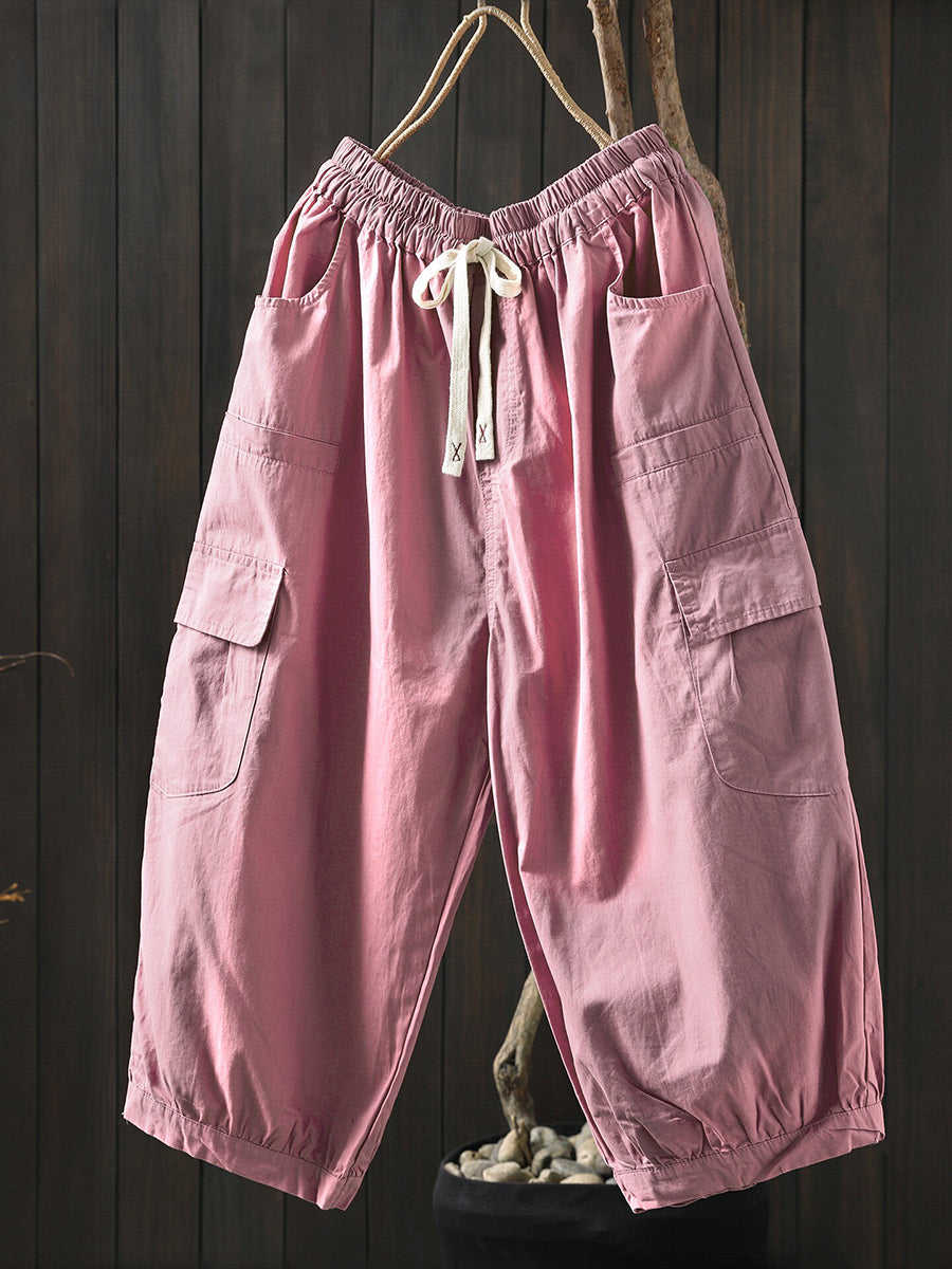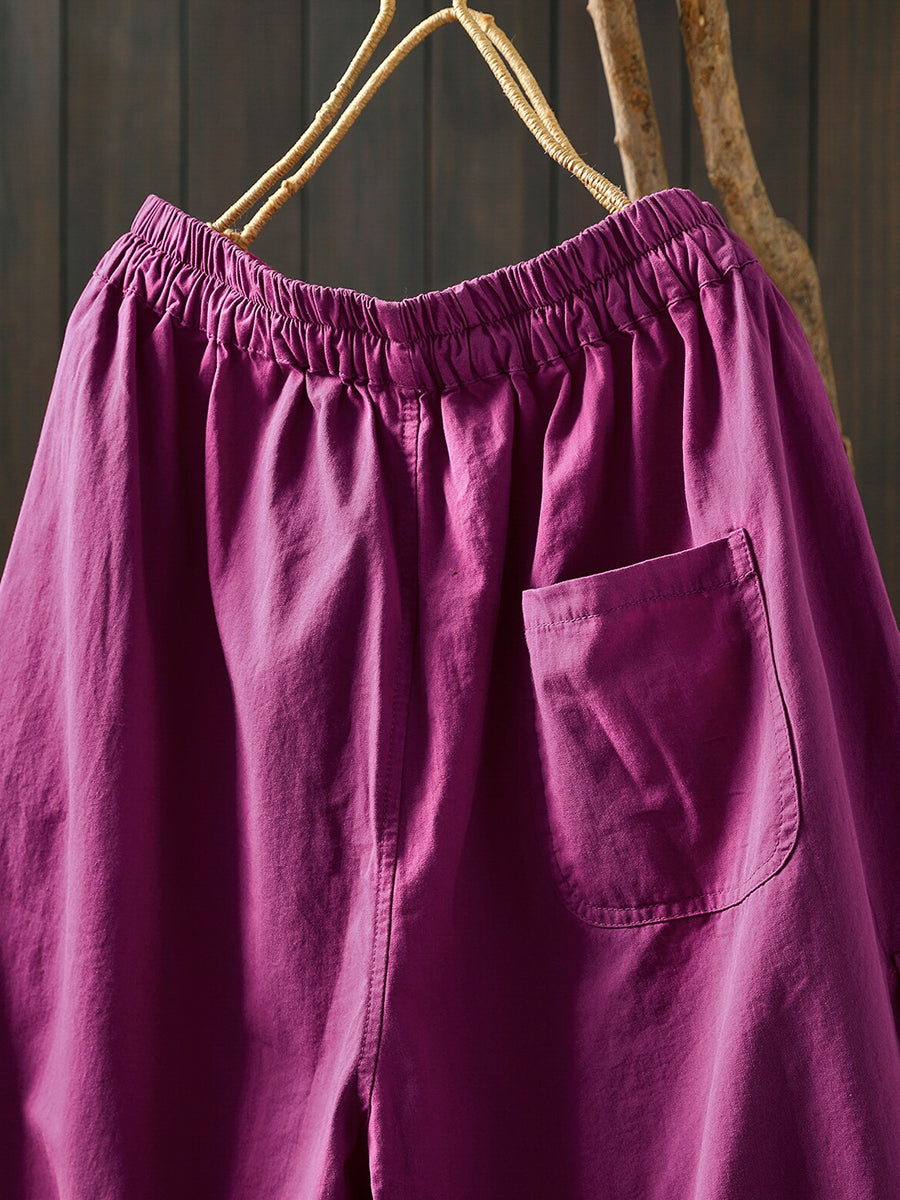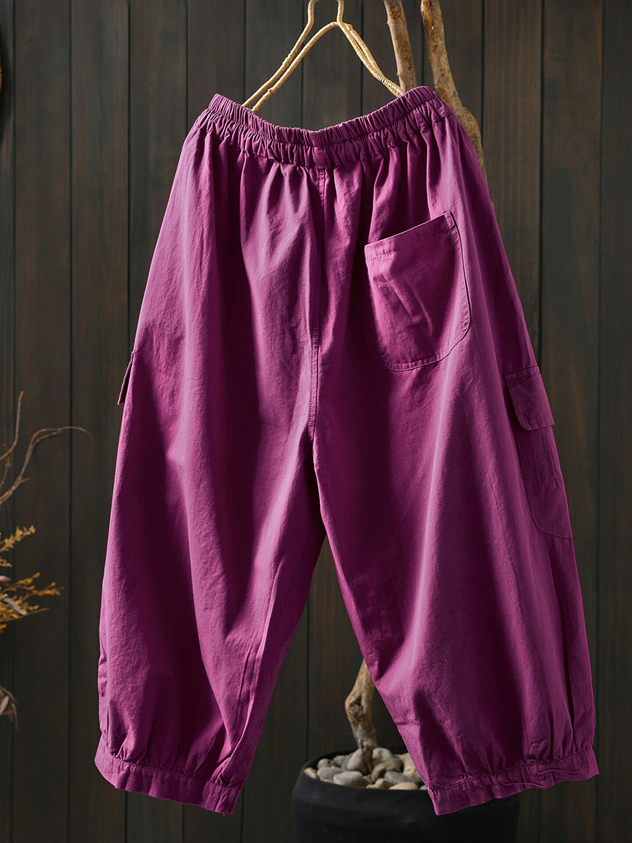 Calça Harem Feminina de Algodão Lisa para o Verão - Casual