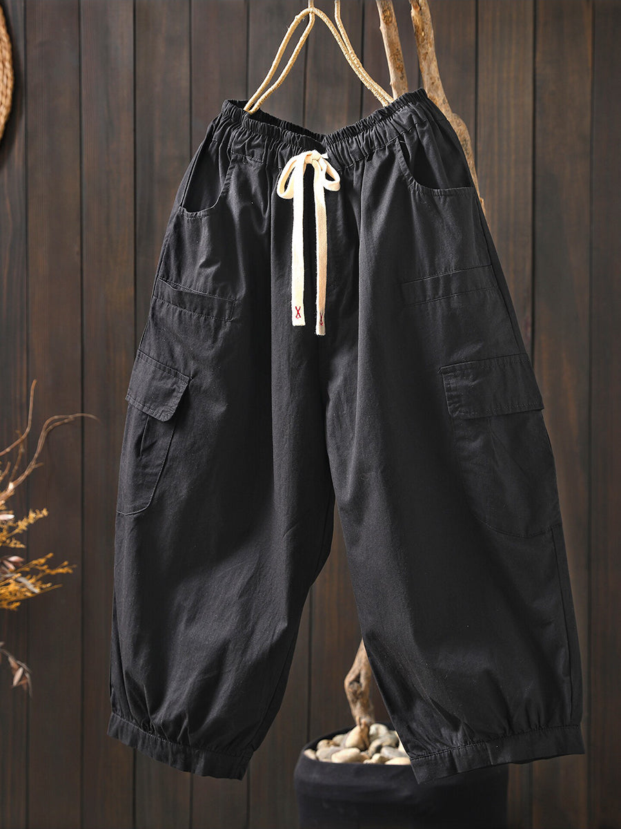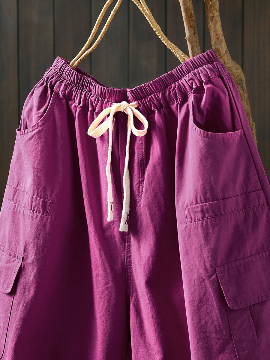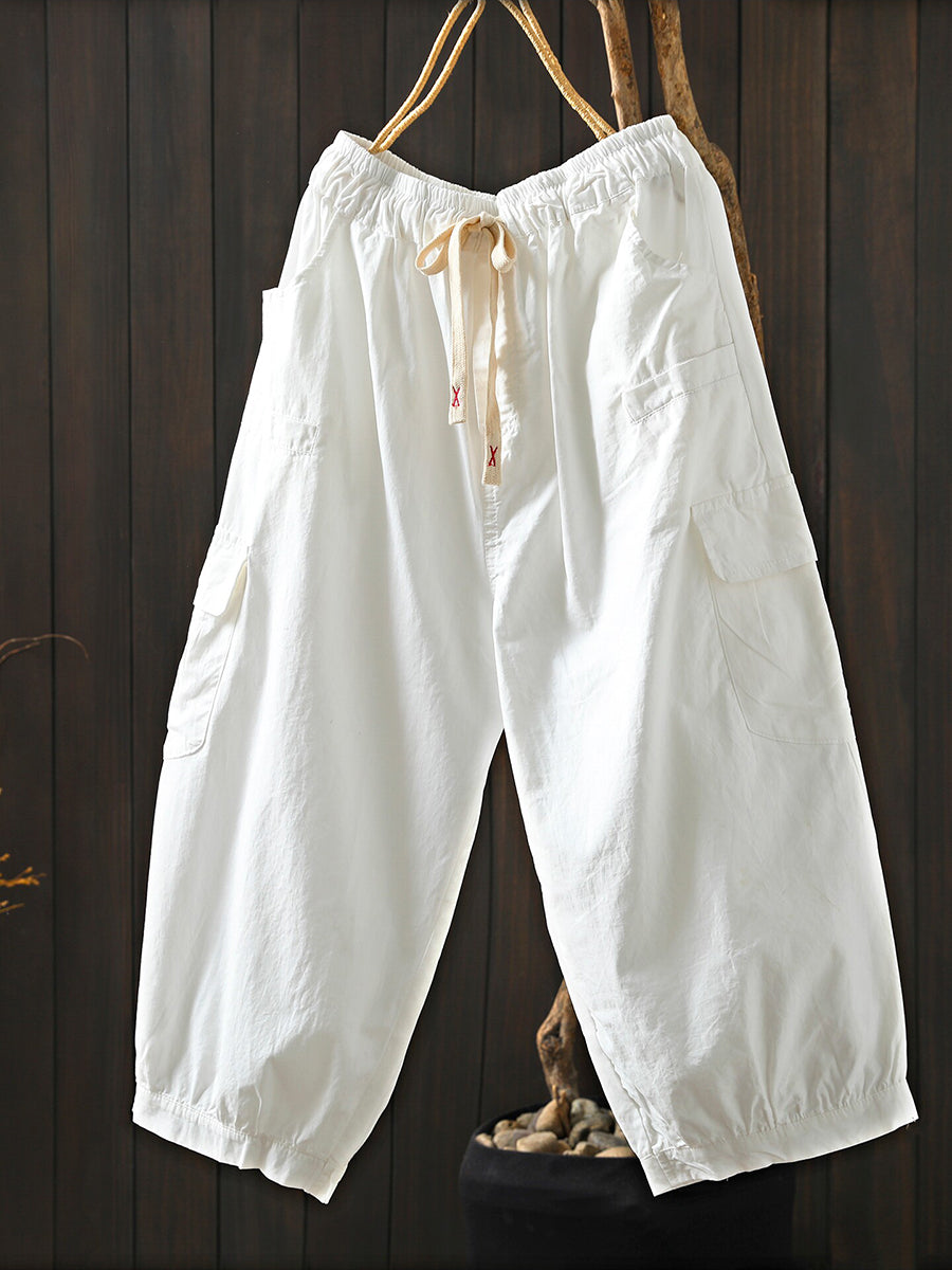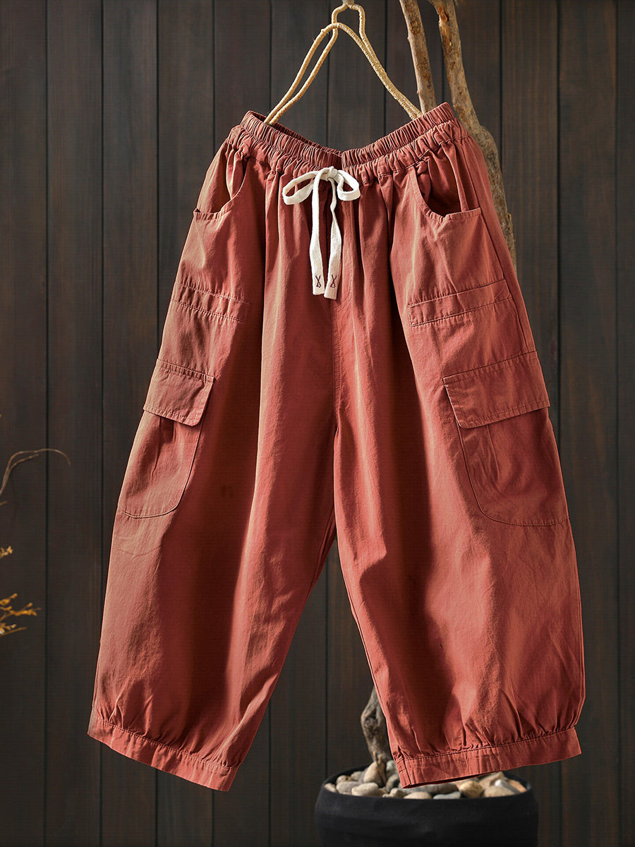 Calça Harem Feminina de Algodão Lisa para o Verão - Casual