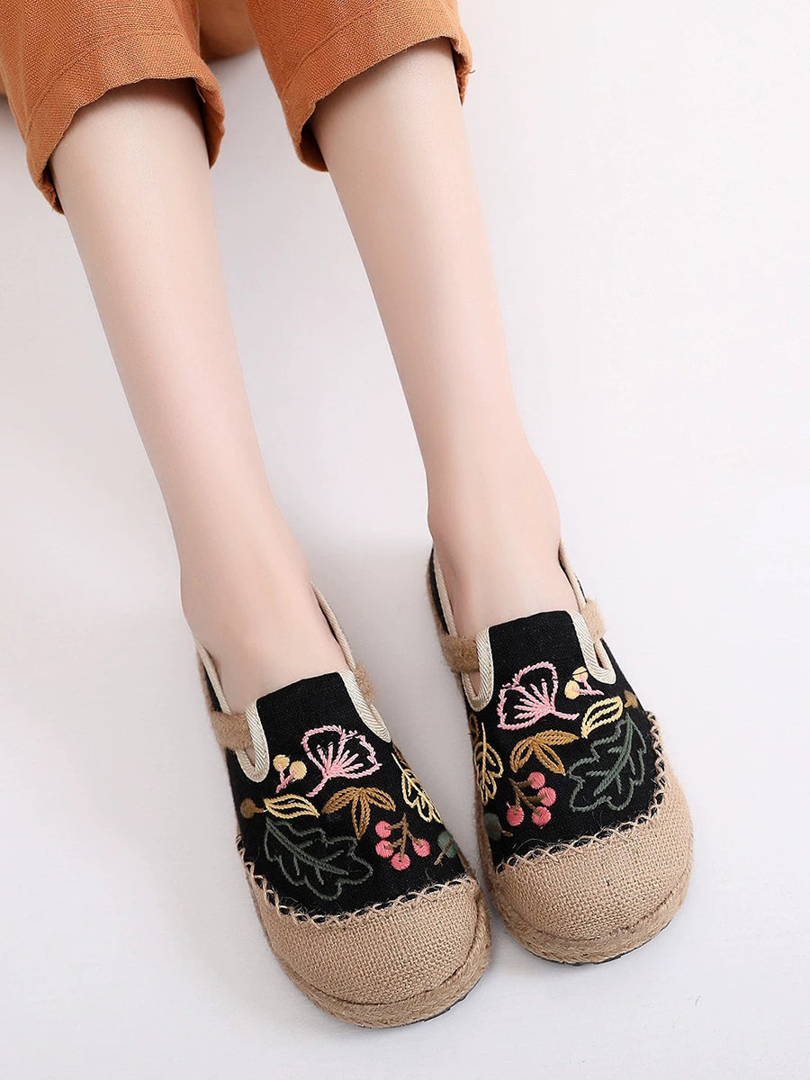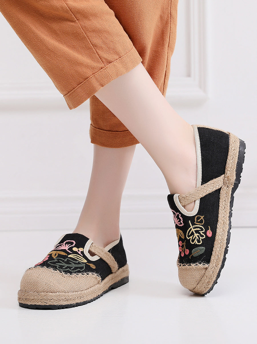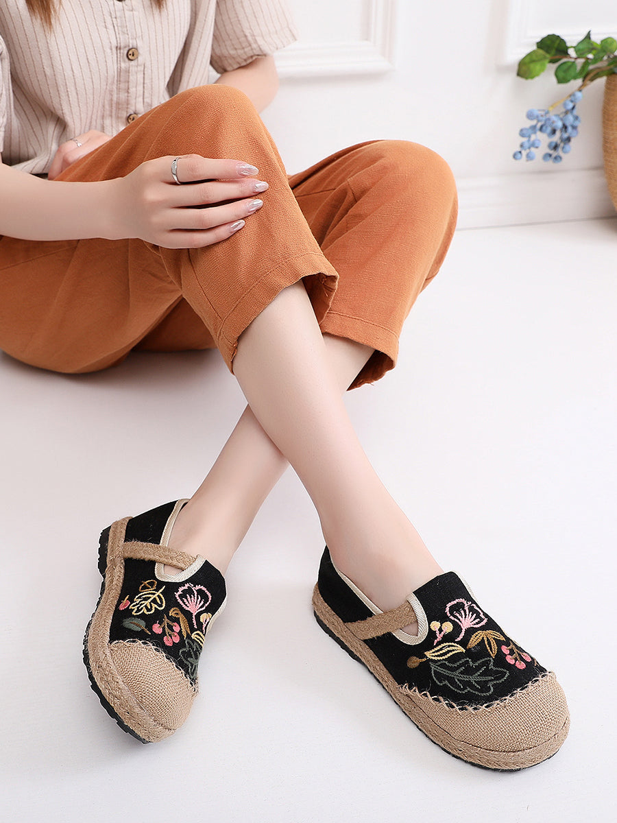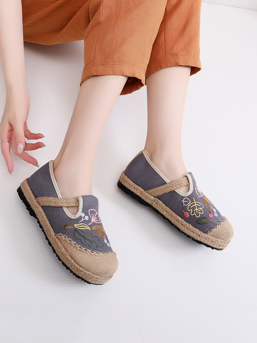 Sapatos de linho bordados com flores para mulheres, ideais para o verão.