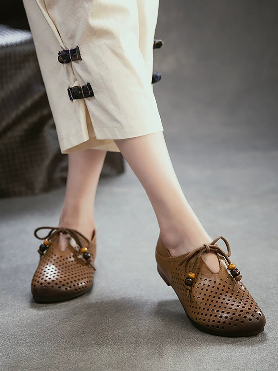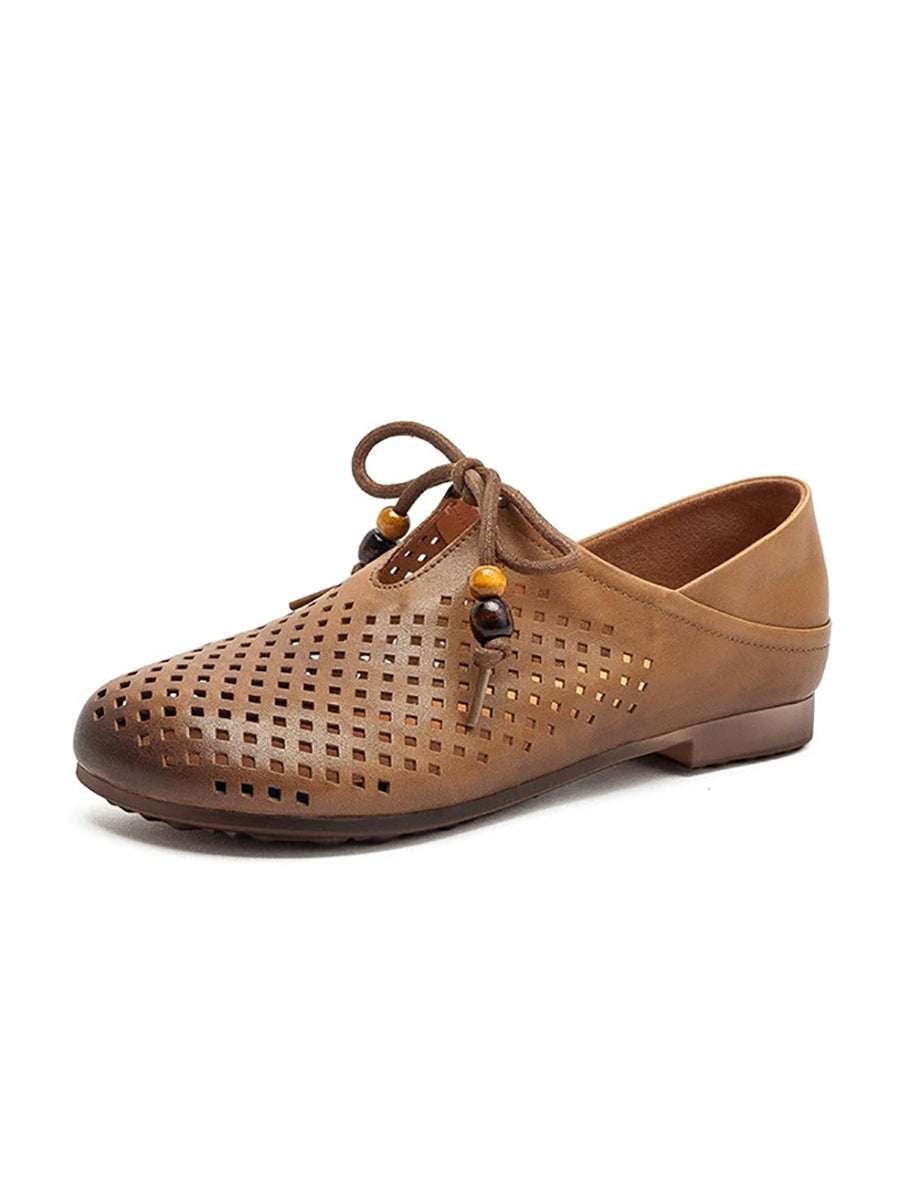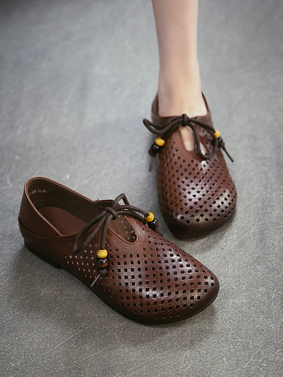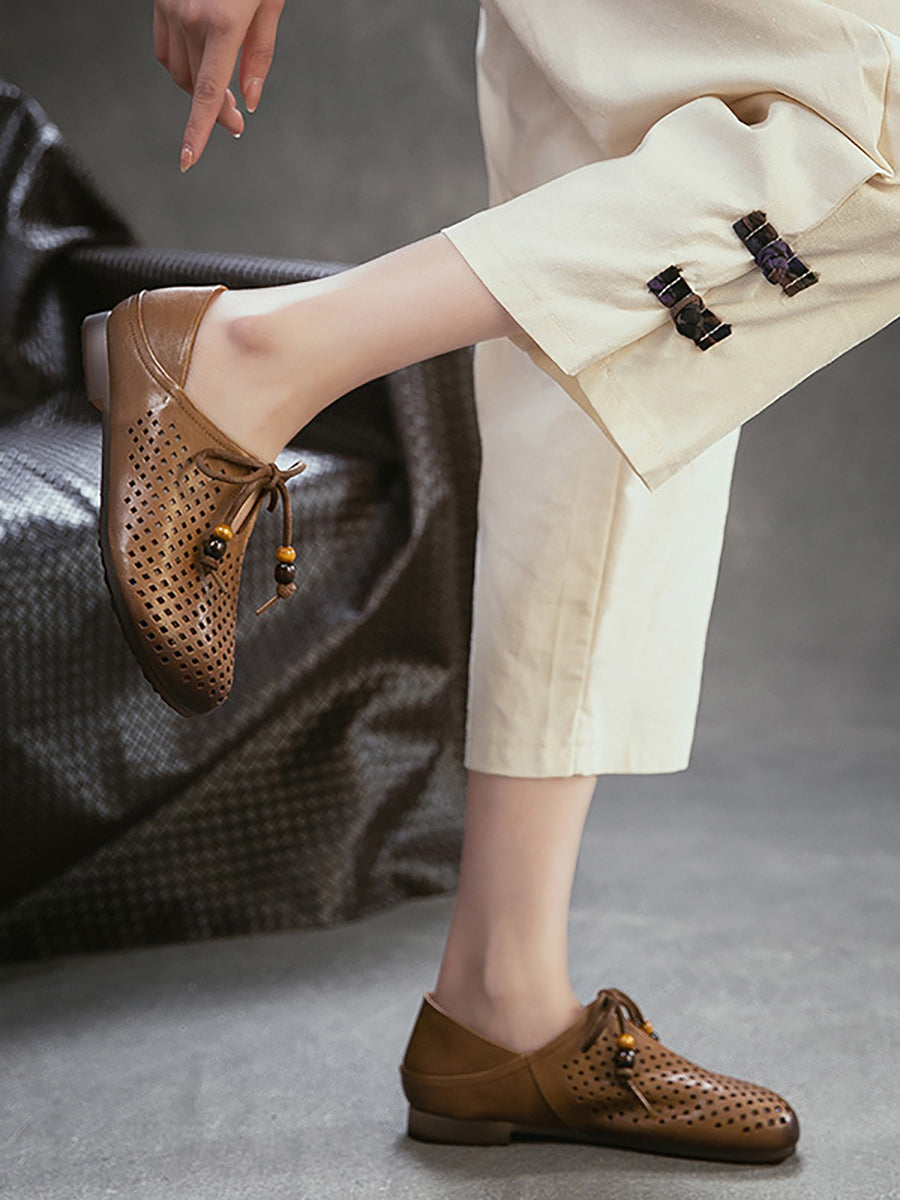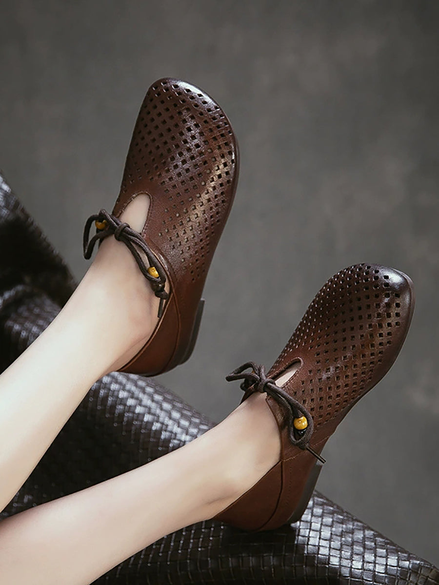 Sapatos femininos de verão em couro legítimo, modelo flat com recortes.