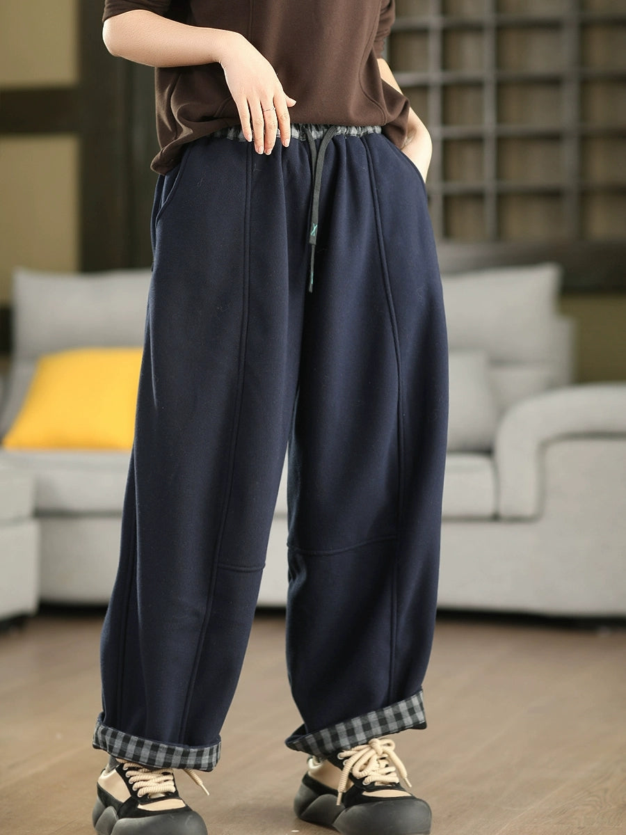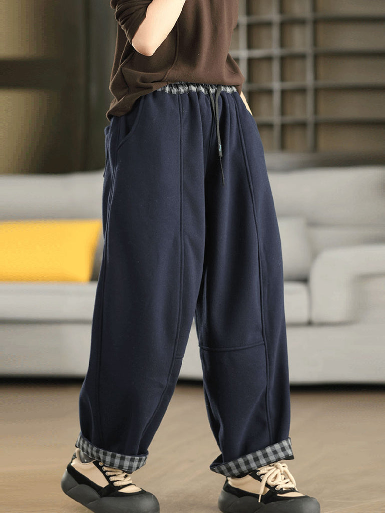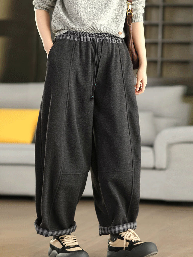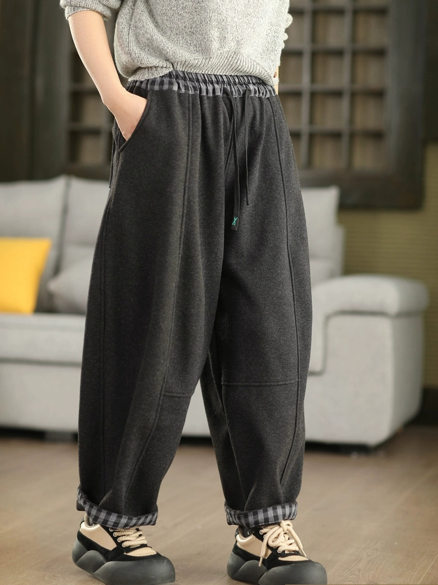 Calça Harem Feminina de Inverno com Estampa Xadrez e Forro de Lã