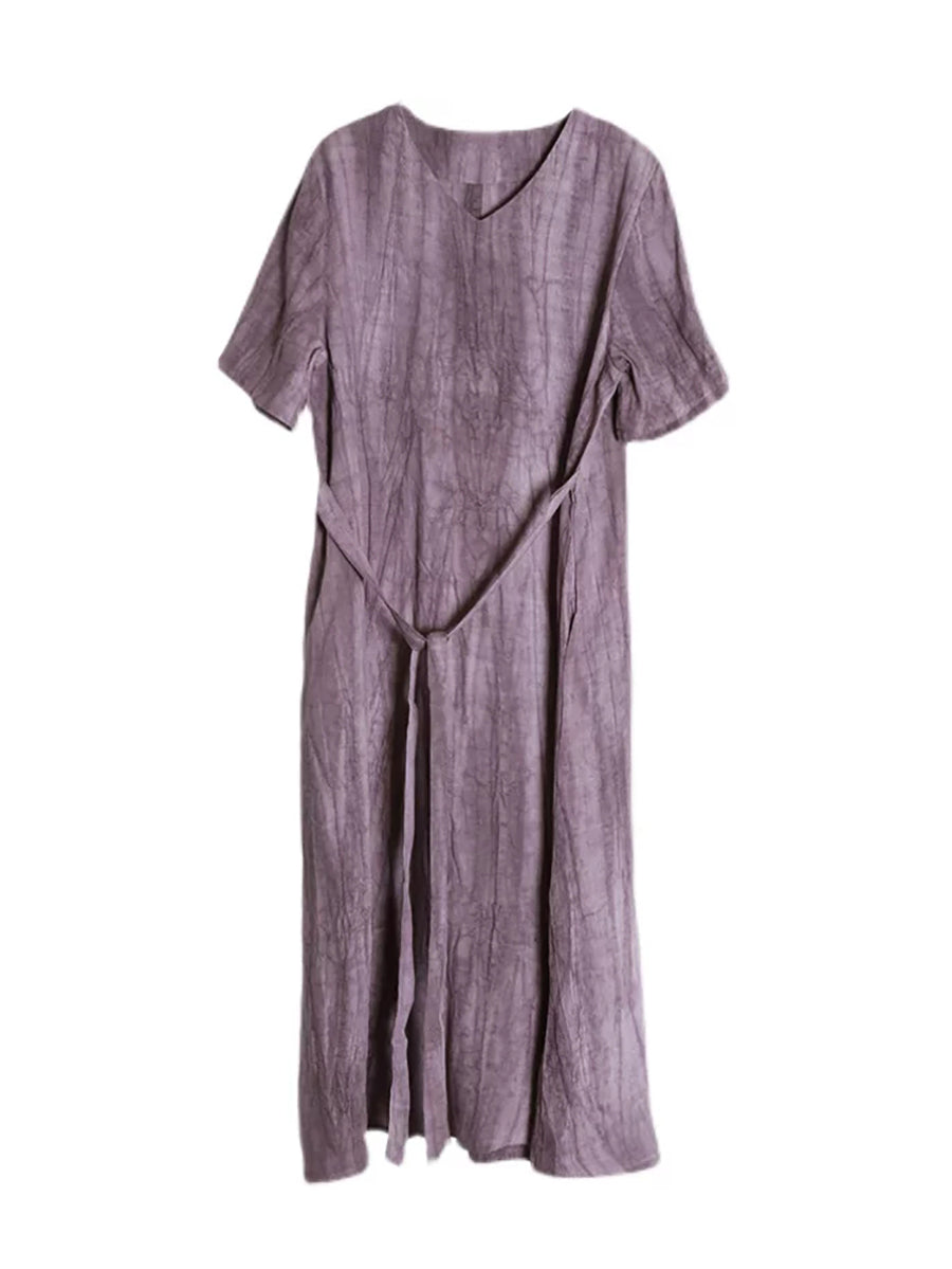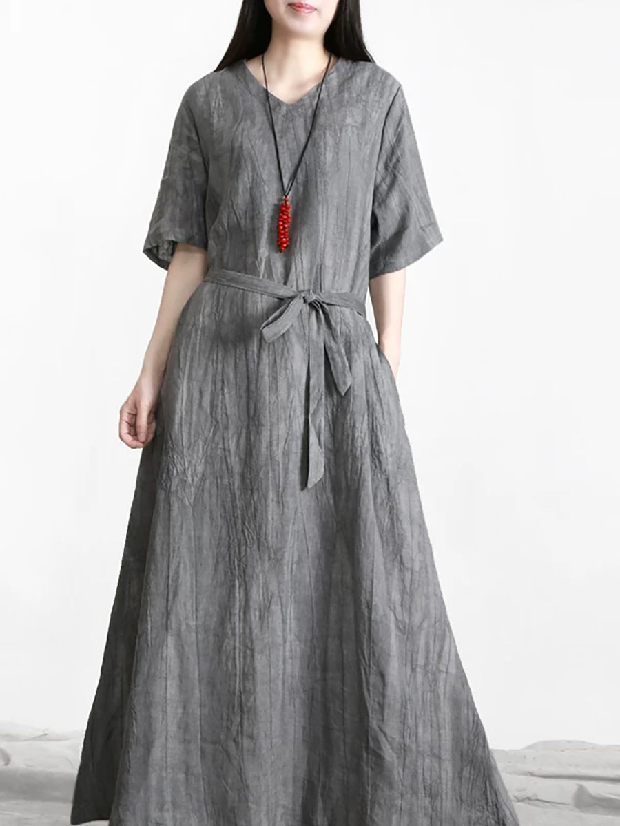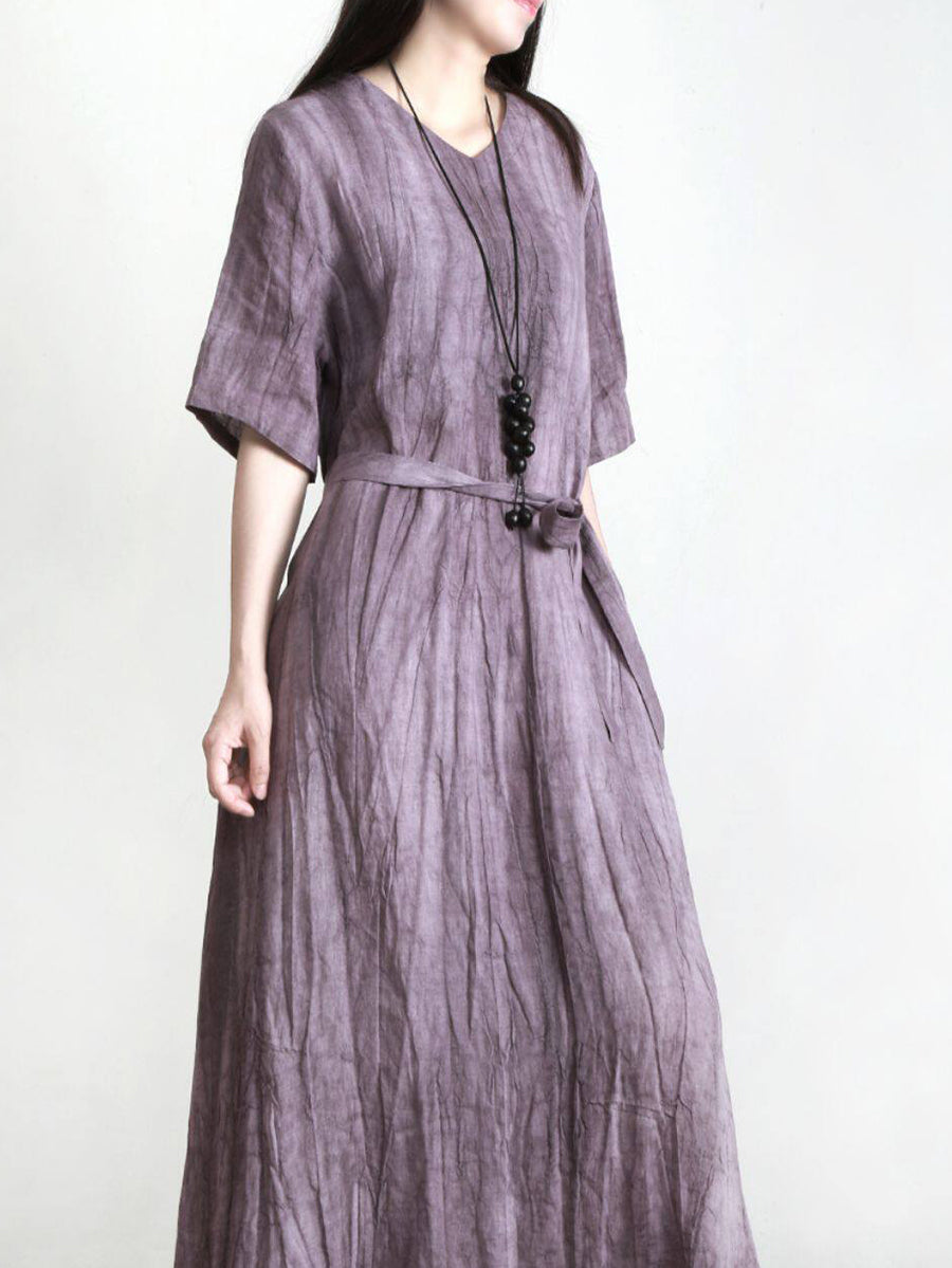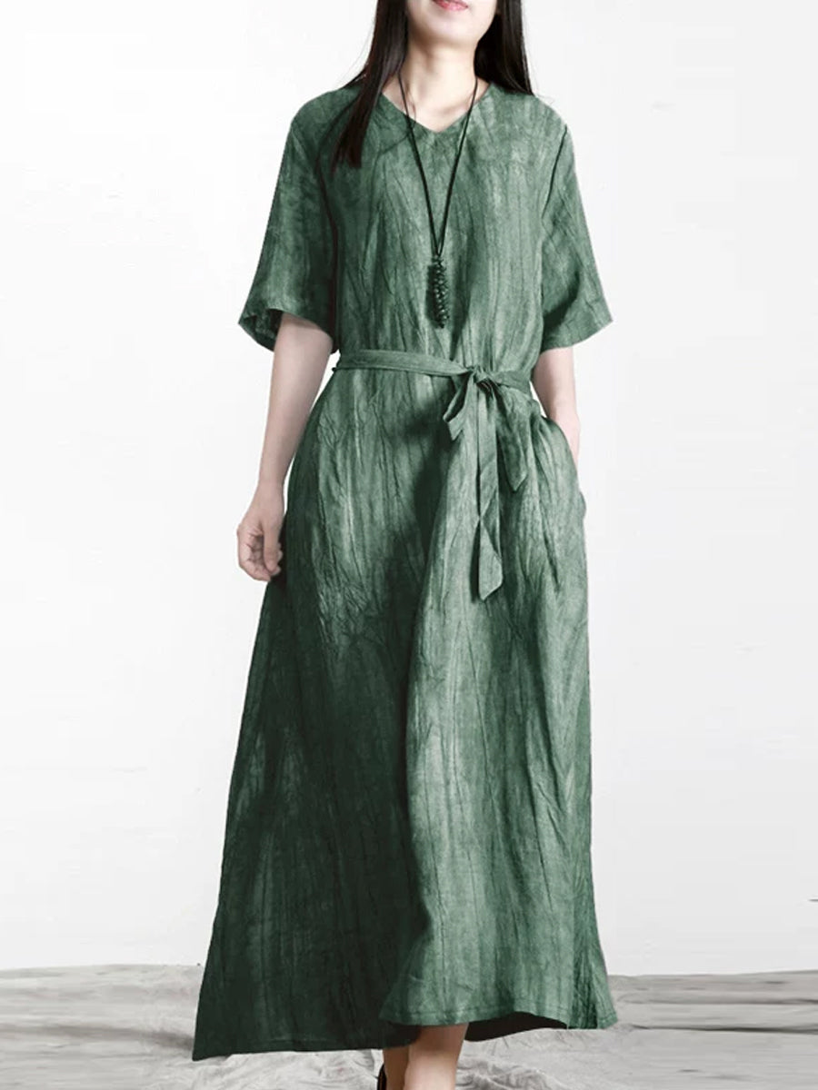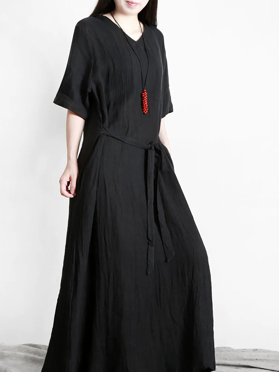 Vestido feminino de verão vintage 100% linho com decote em V