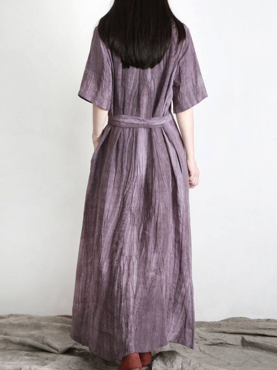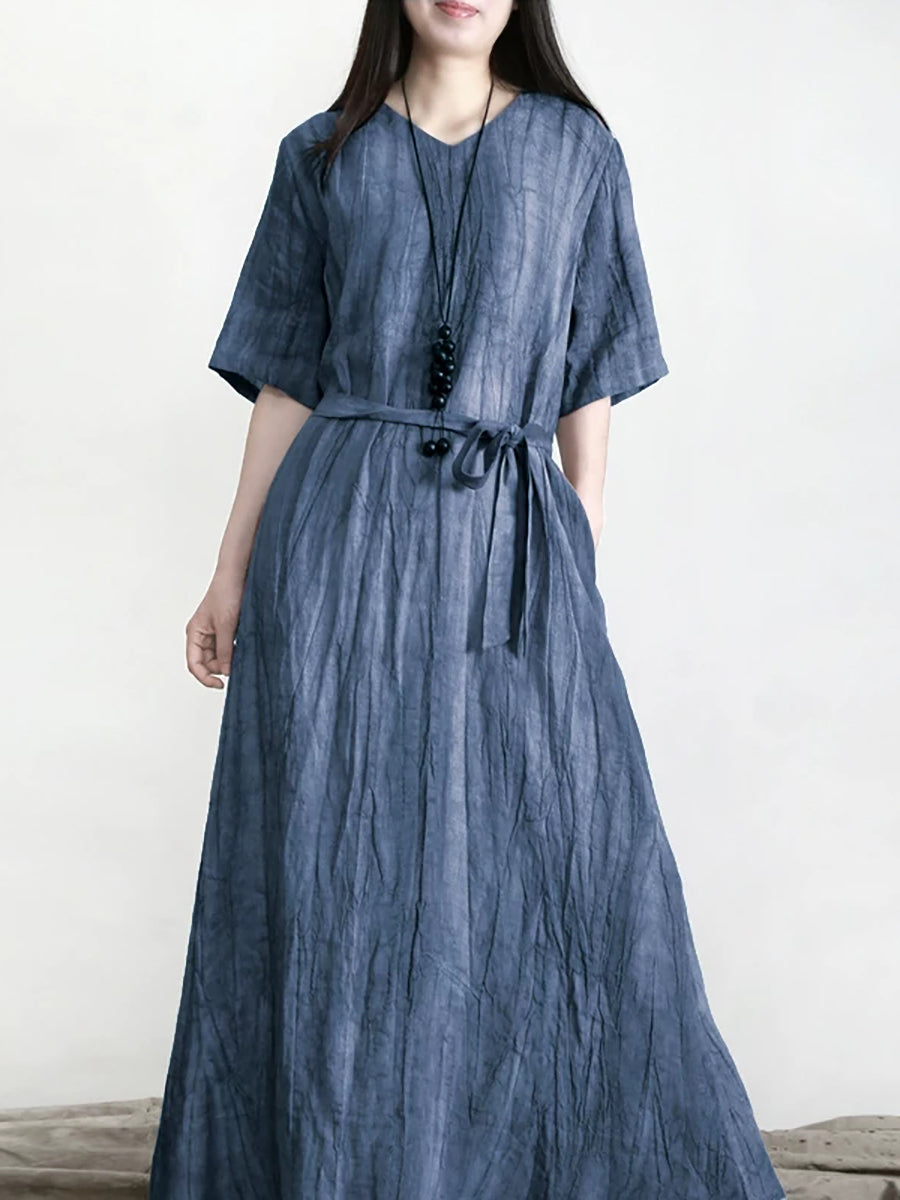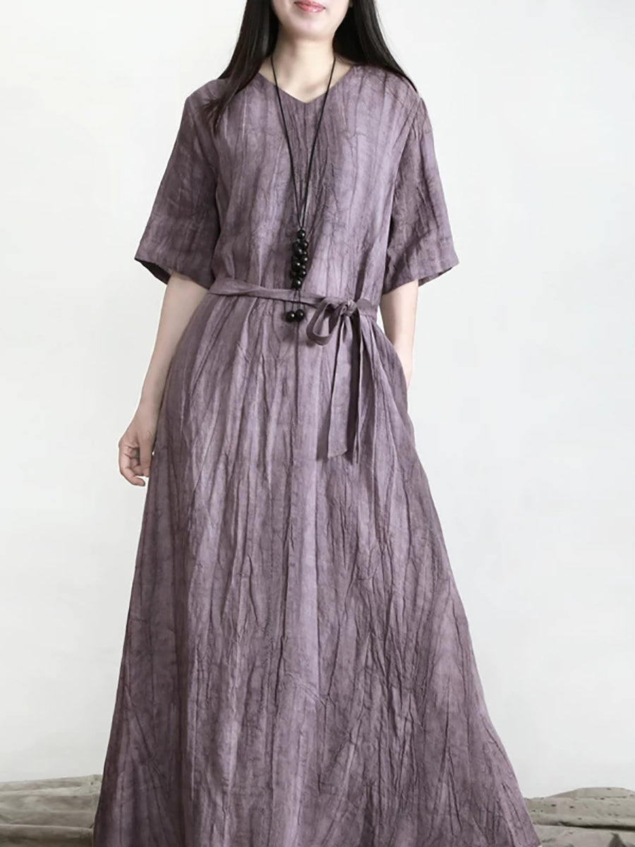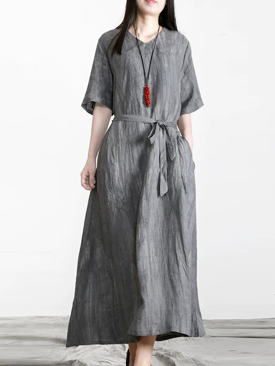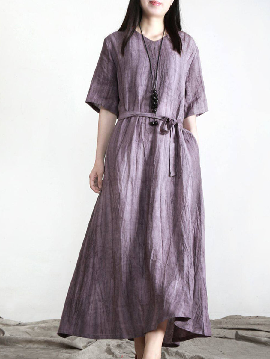 Vestido feminino de verão vintage 100% linho com decote em V