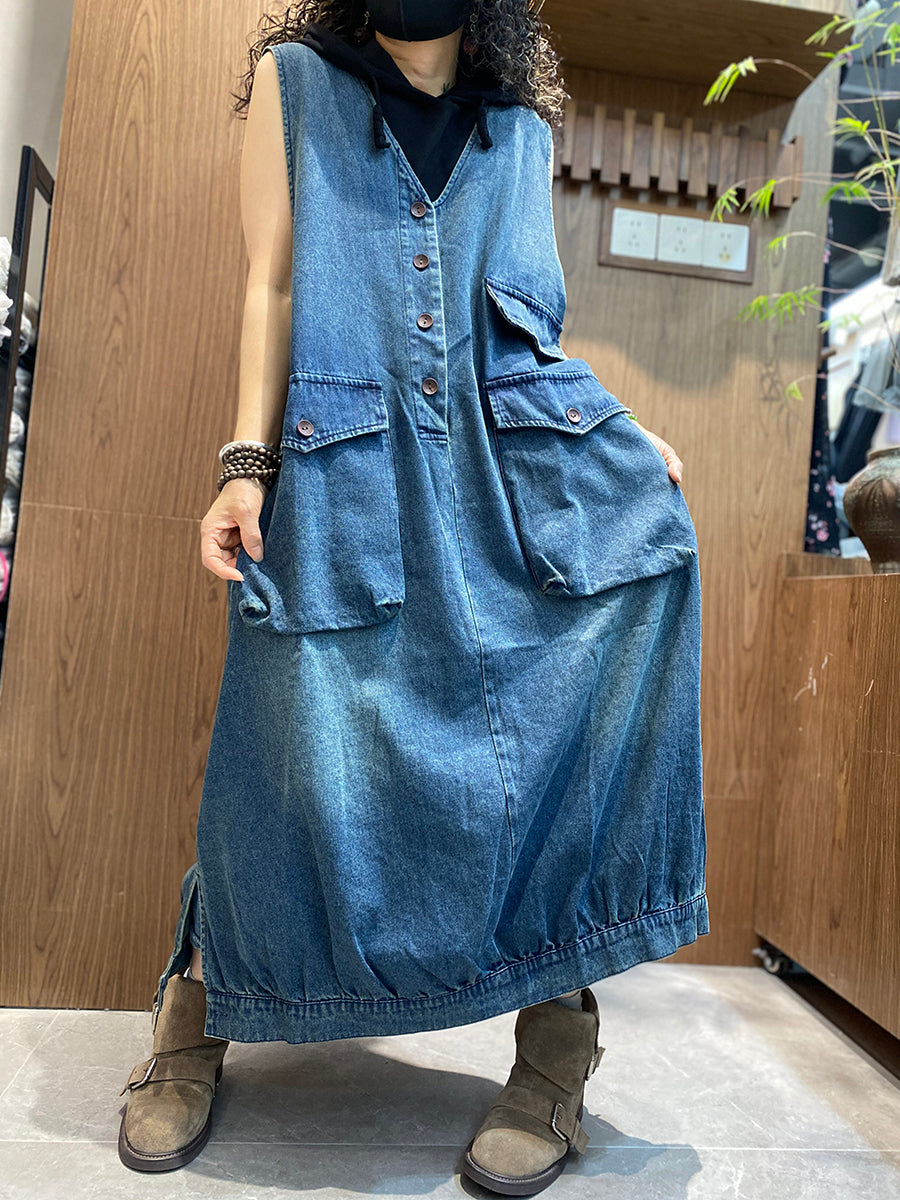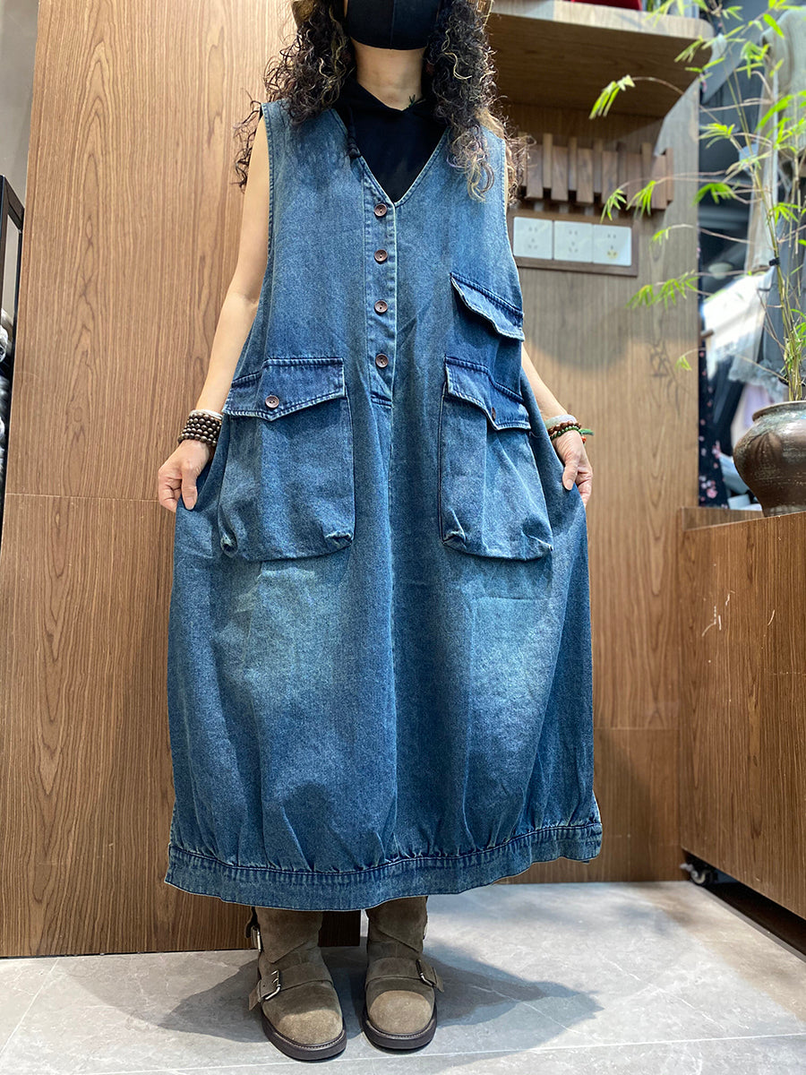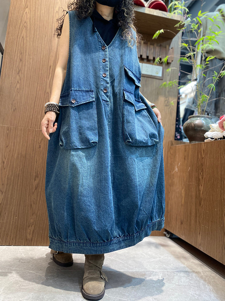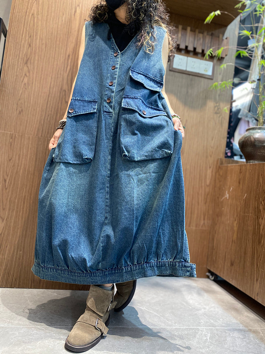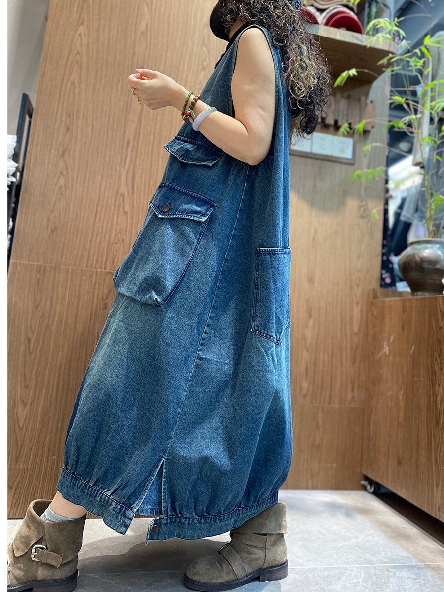 Vestido colete jeans vintage feminino para o verão