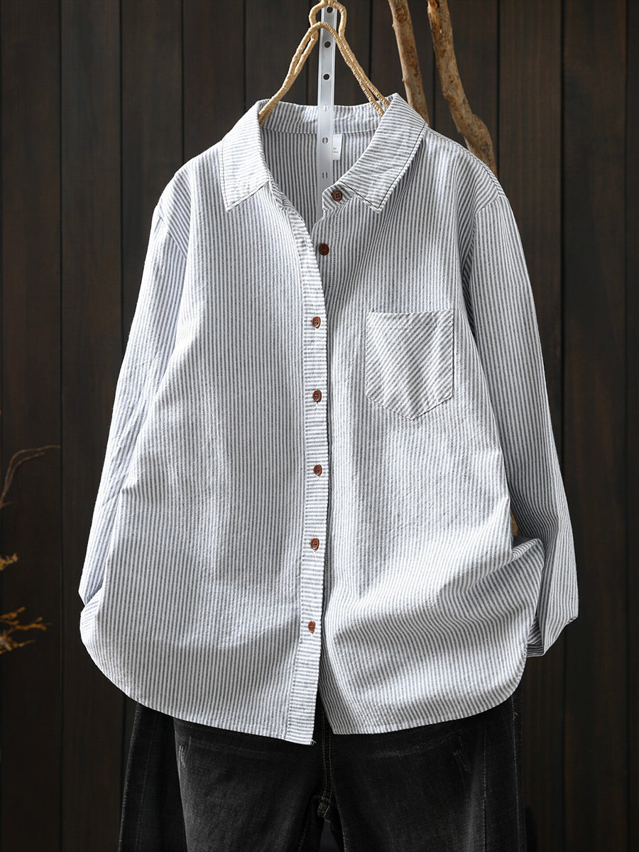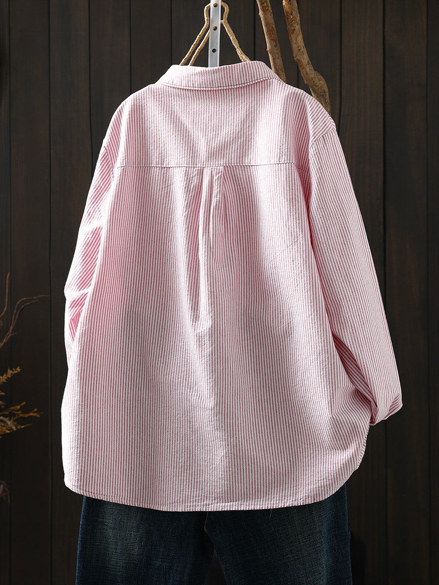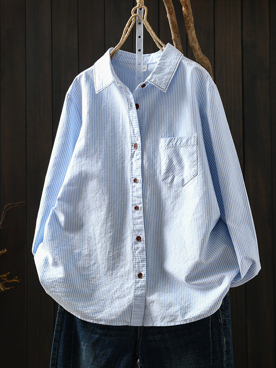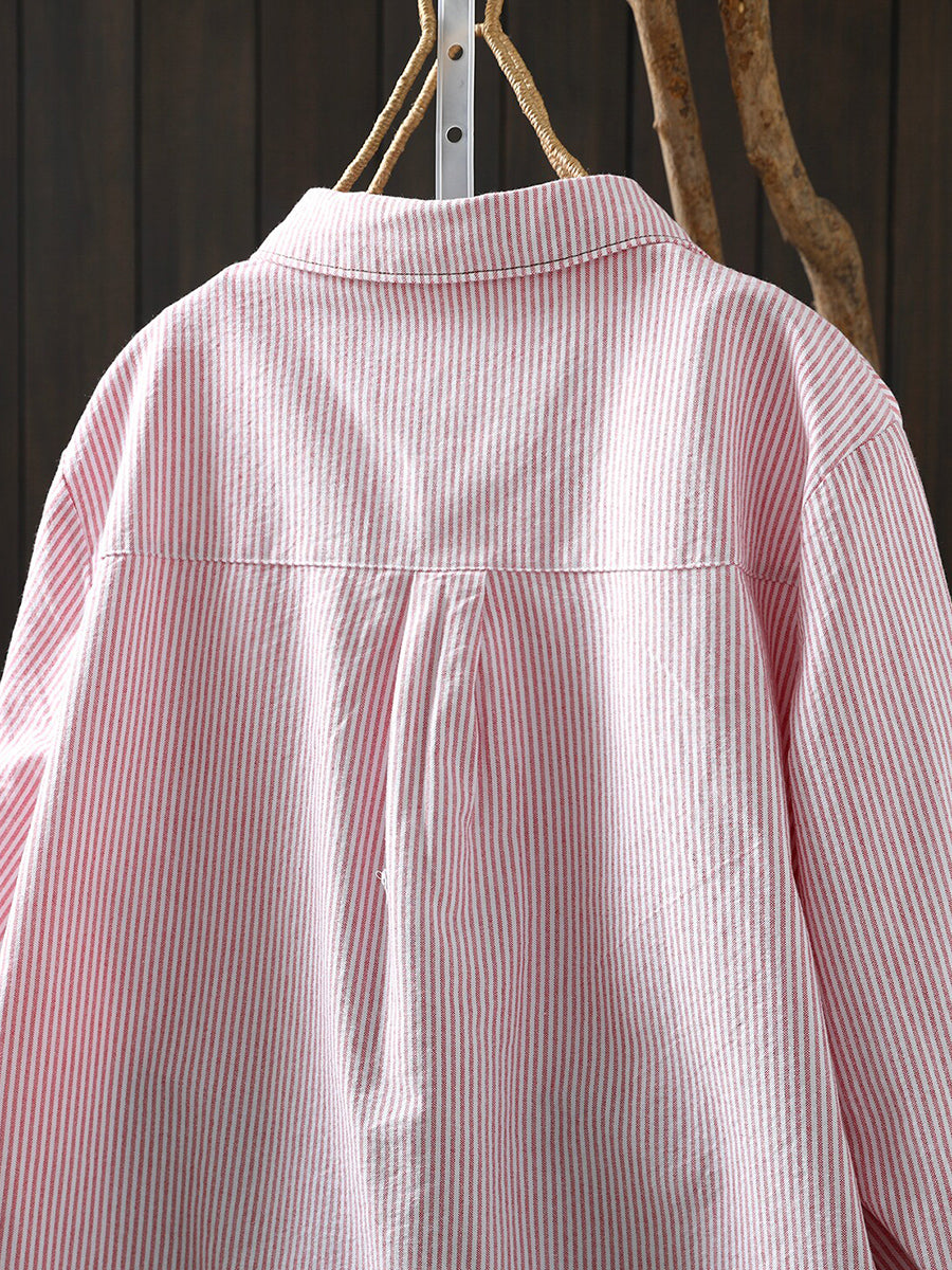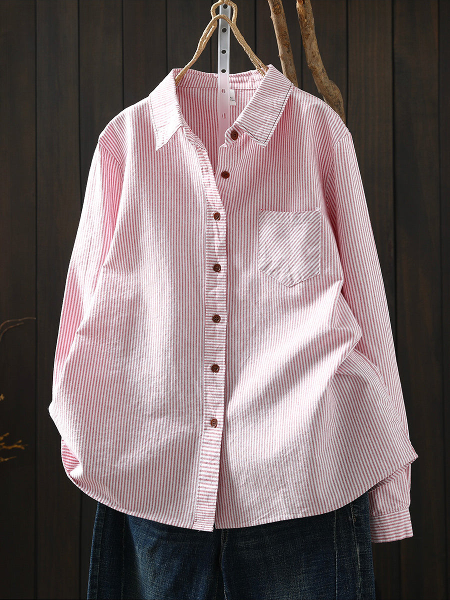 Camisa feminina listrada artística de primavera, 100% algodão.