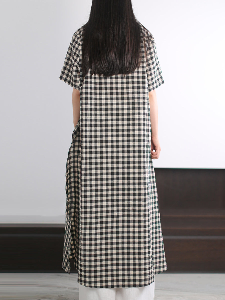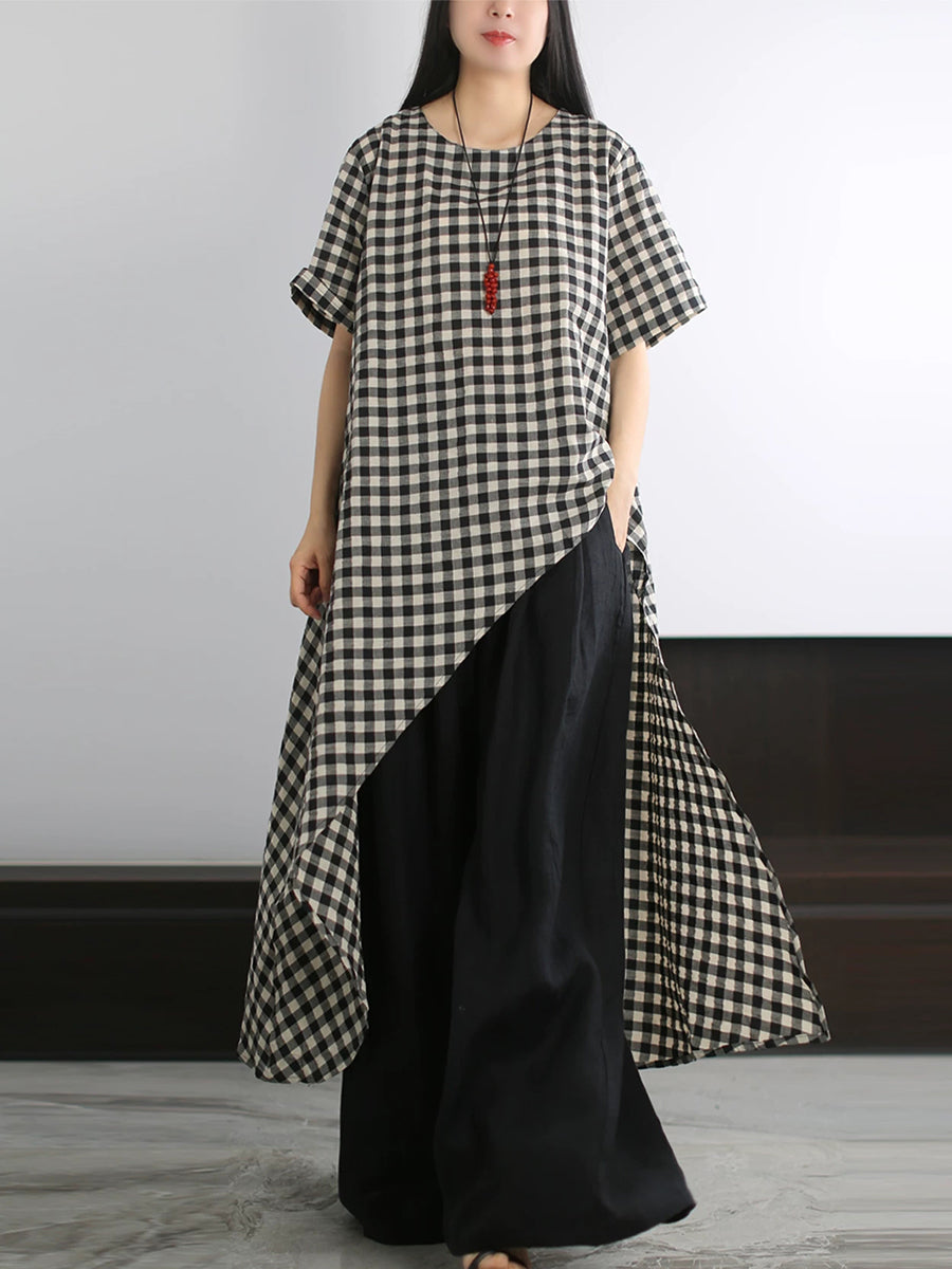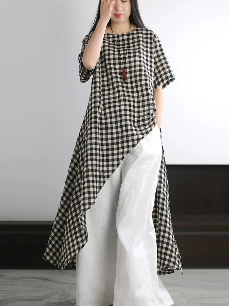 Camiseta feminina de verão com estampa xadrez artística, 100% algodão.