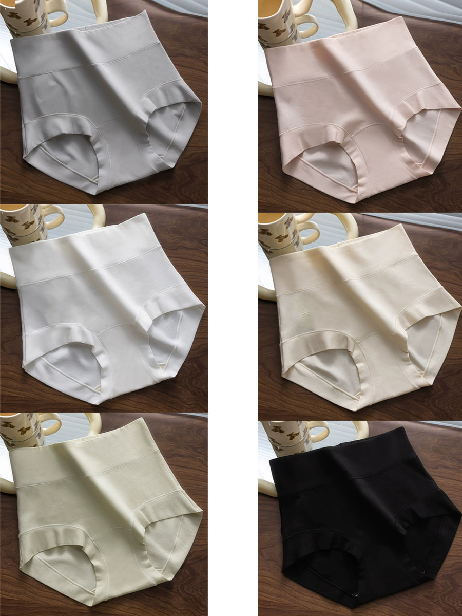 Conjunto de 6 peças de calcinhas femininas casuais de cintura alta em cores lisas.