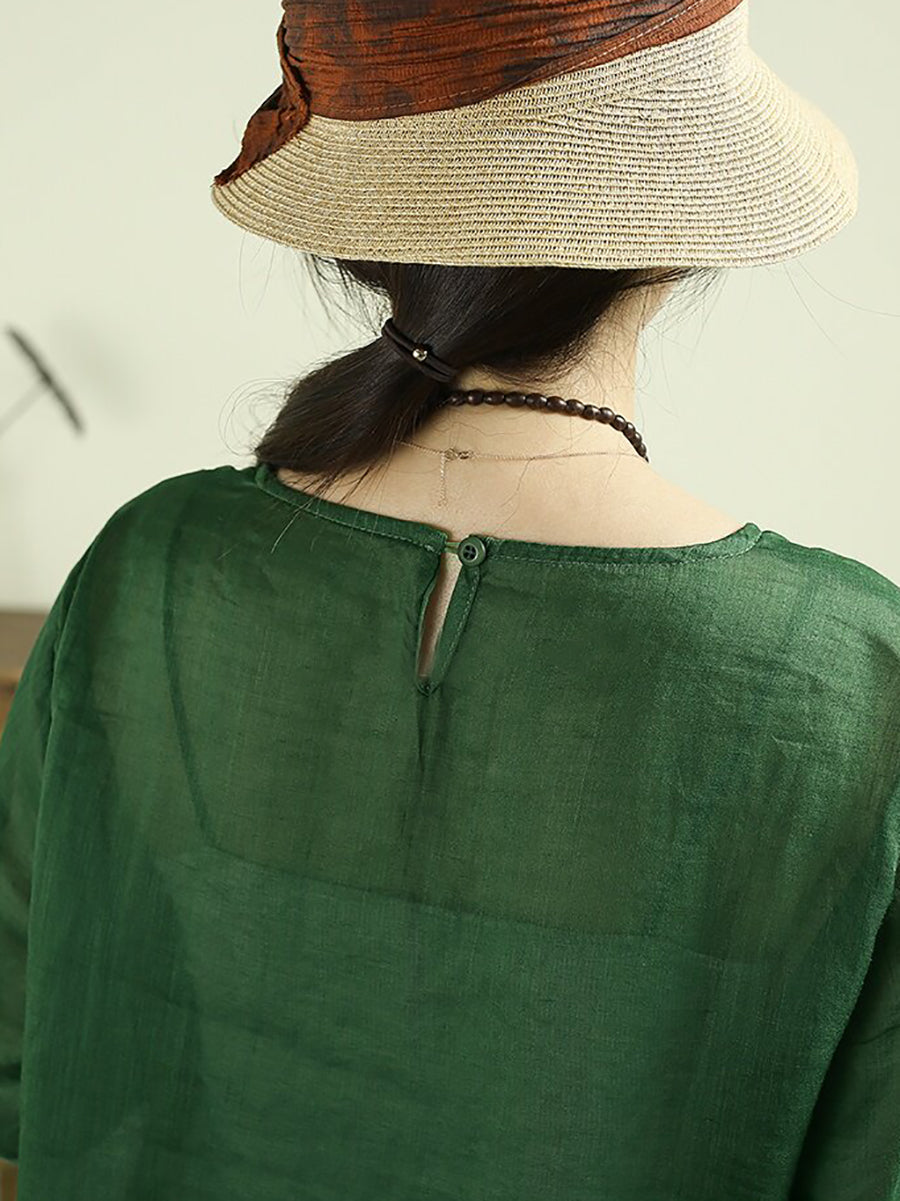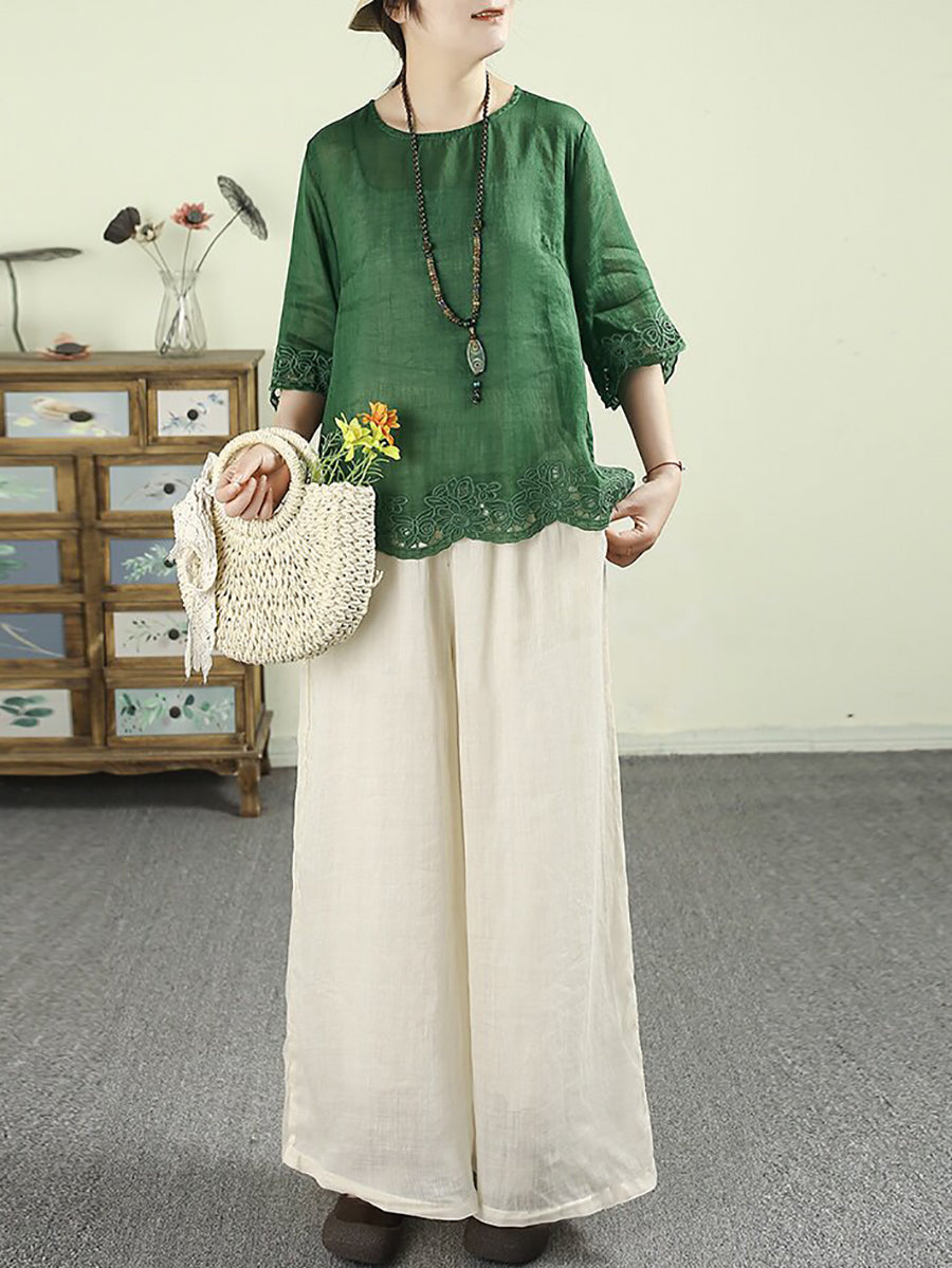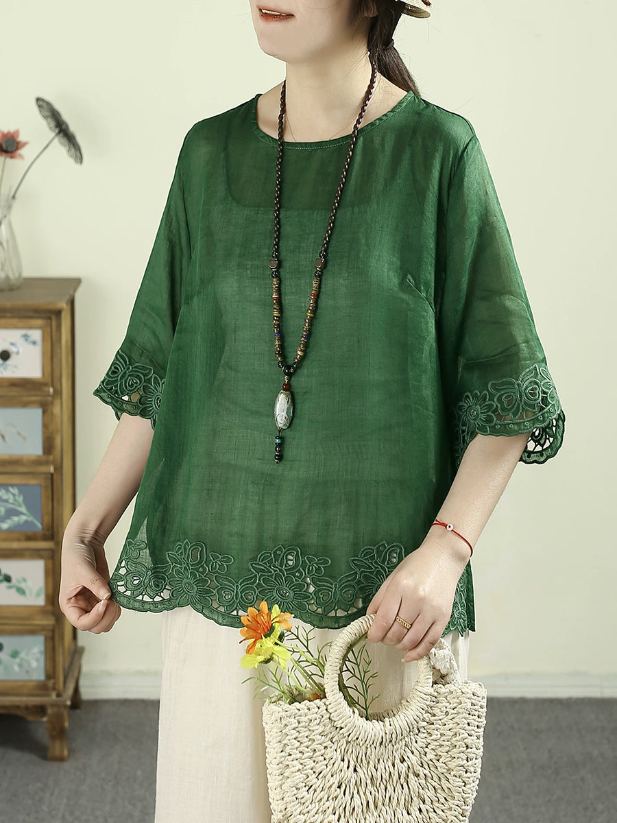 Blusa feminina de verão com bordado artístico, 100% rami.