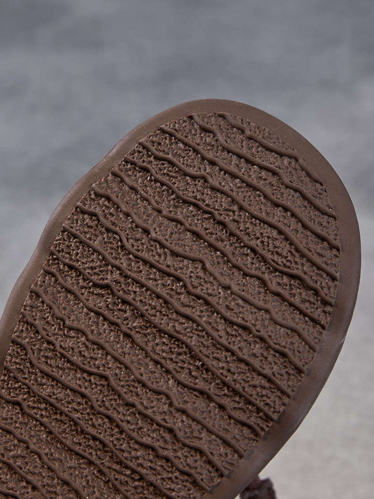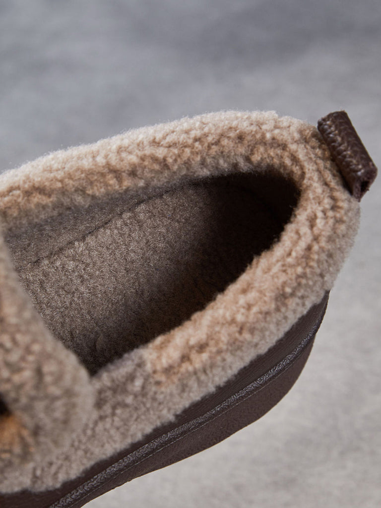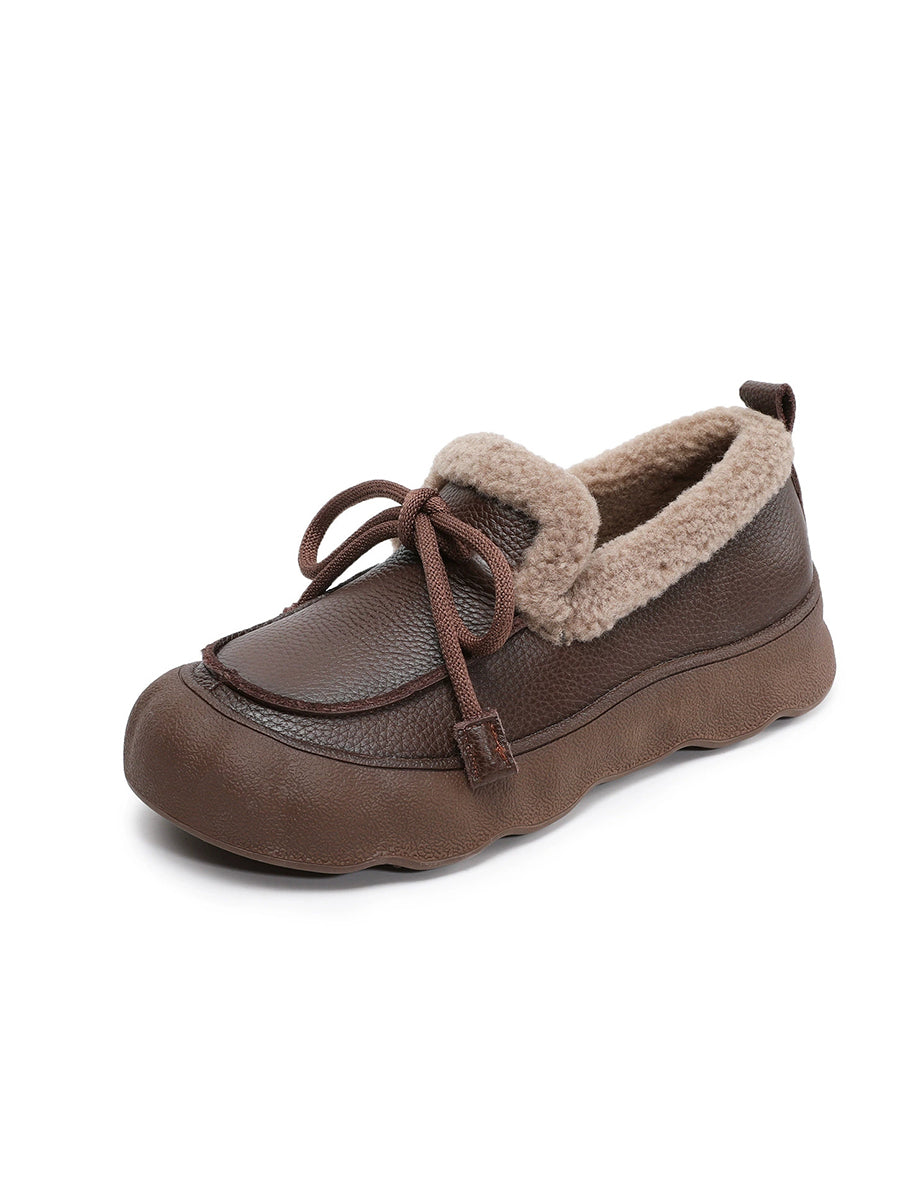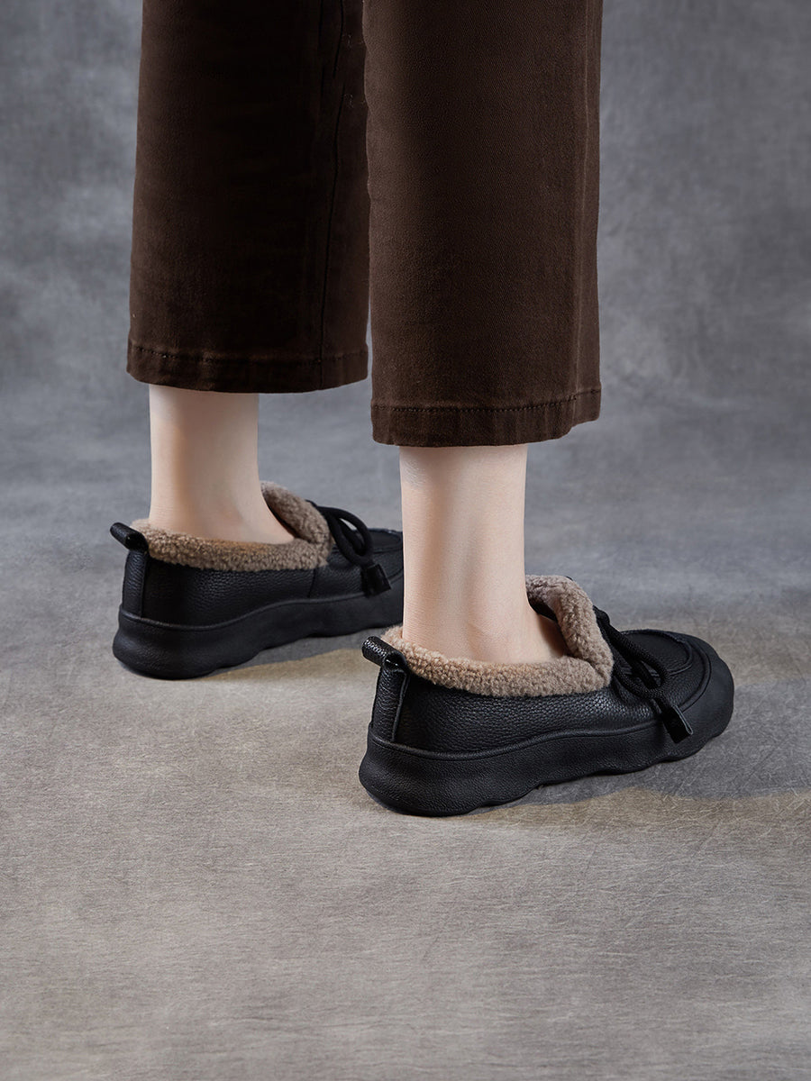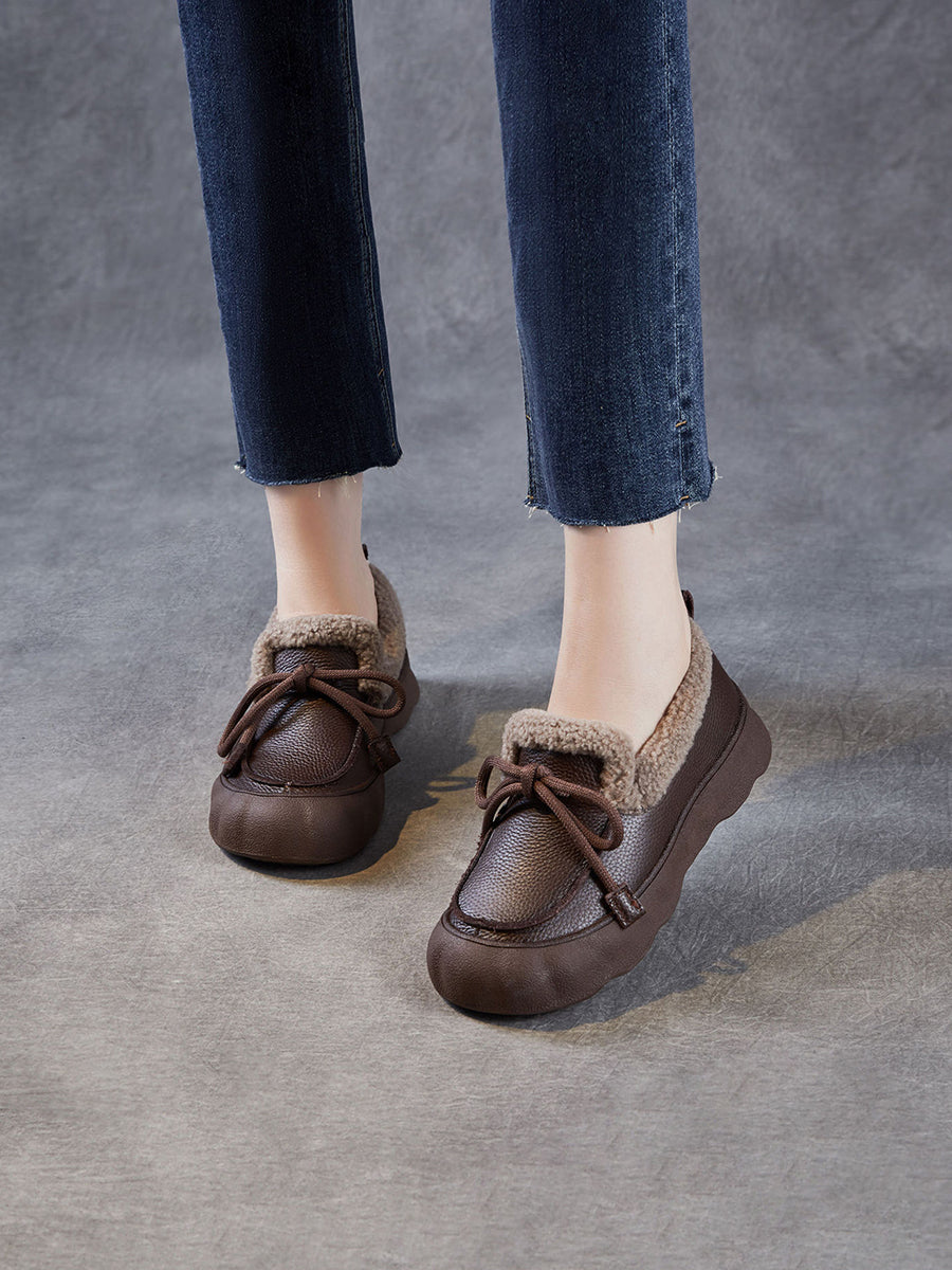 Sapatos femininos de inverno vintage em couro com forro de lã